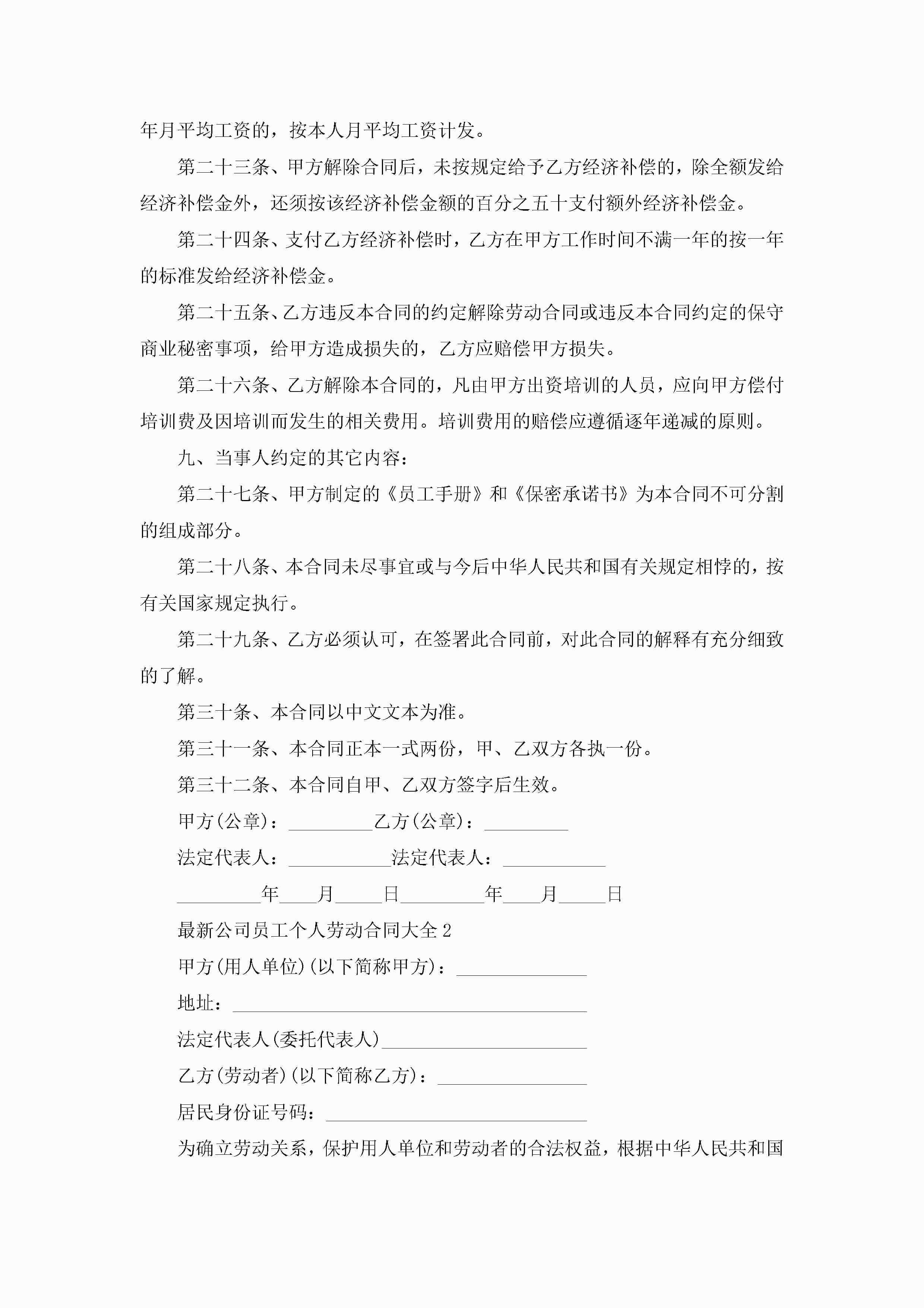 最新公司员工个人劳动合同大全5篇jugei3月23日 01:46发布关注192 最新公司员工个人劳动合同大全5篇此内容为付费资源,请付费后查看¥10.9 单篇文档限时特惠¥15个人会员开通企业会员开通立即下载无需登陆!可直接快捷下载单个模板付费资源© 版权声明THE ENDWord模板# 实用文档# 实用模板# 合同模板# 劳动合同 如有问题,可点击最底部“联系我们”联系客服 分享QQ空间微博QQ好友海报分享复制链接收藏