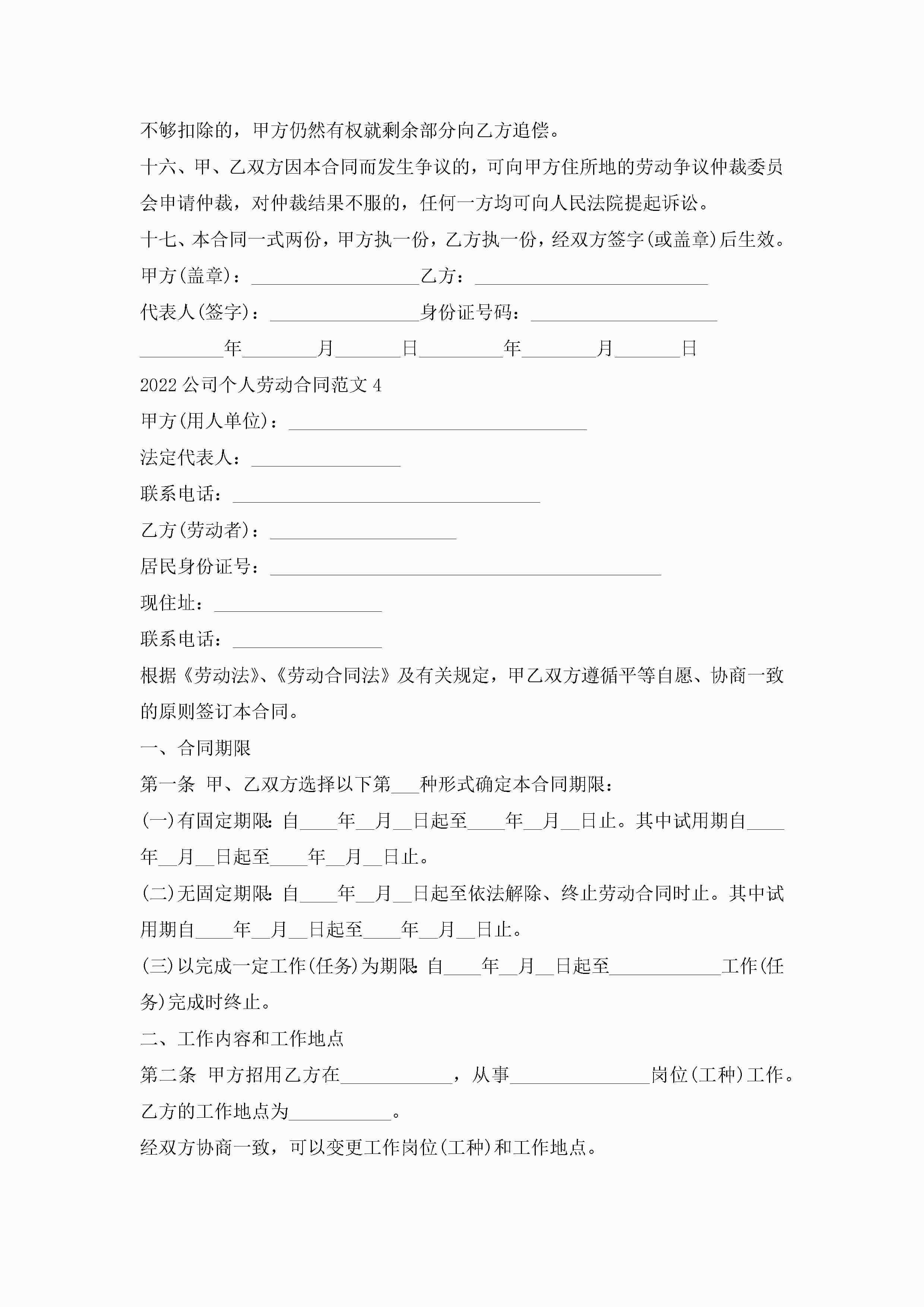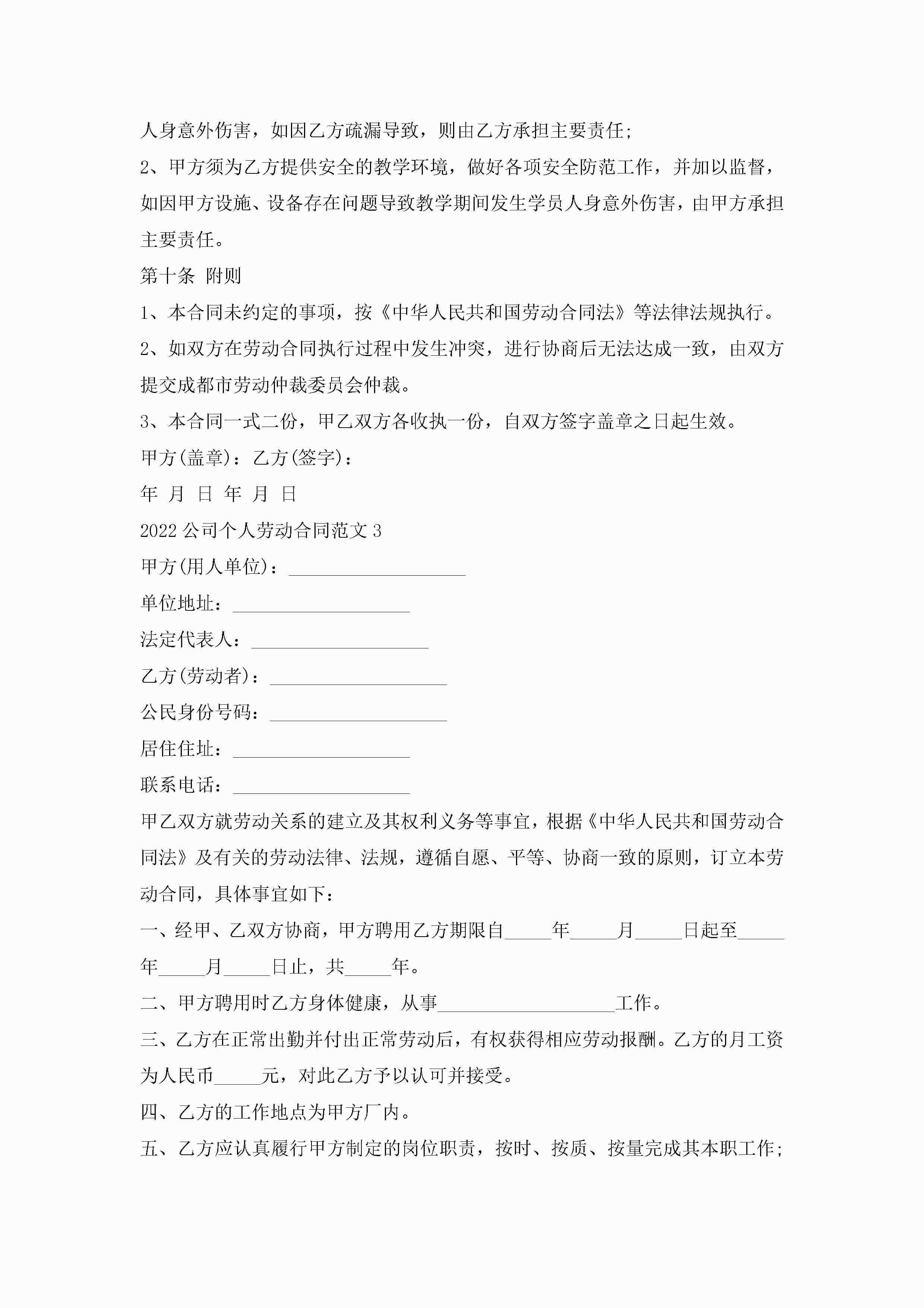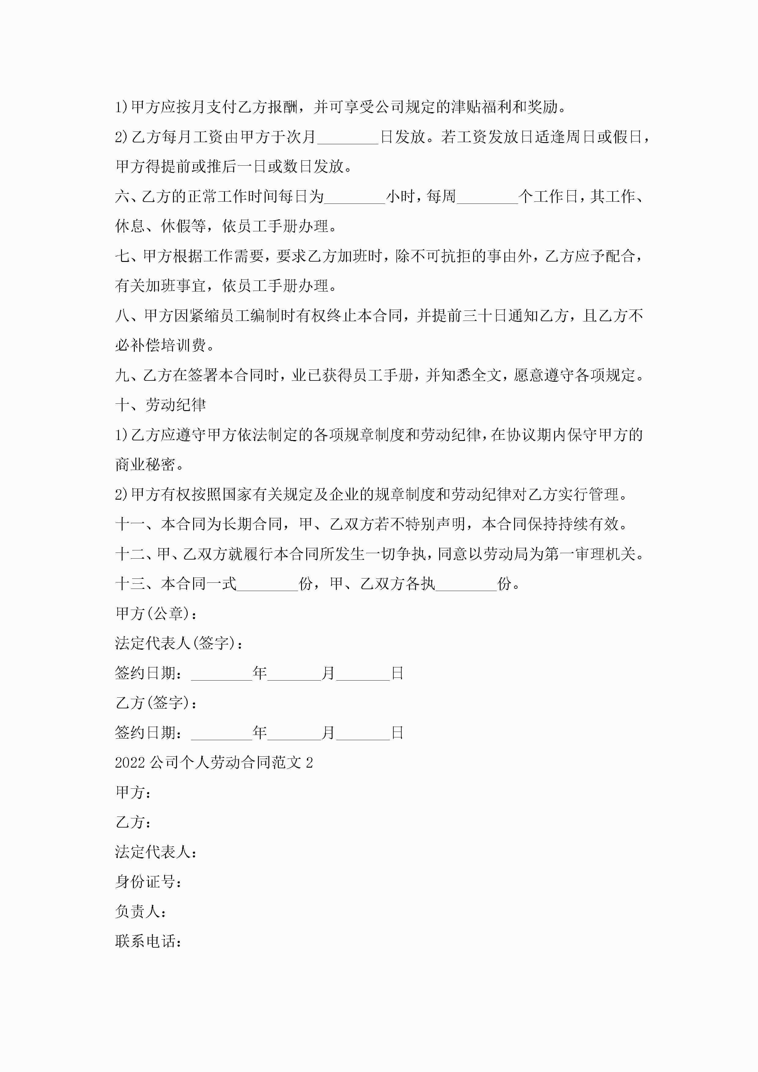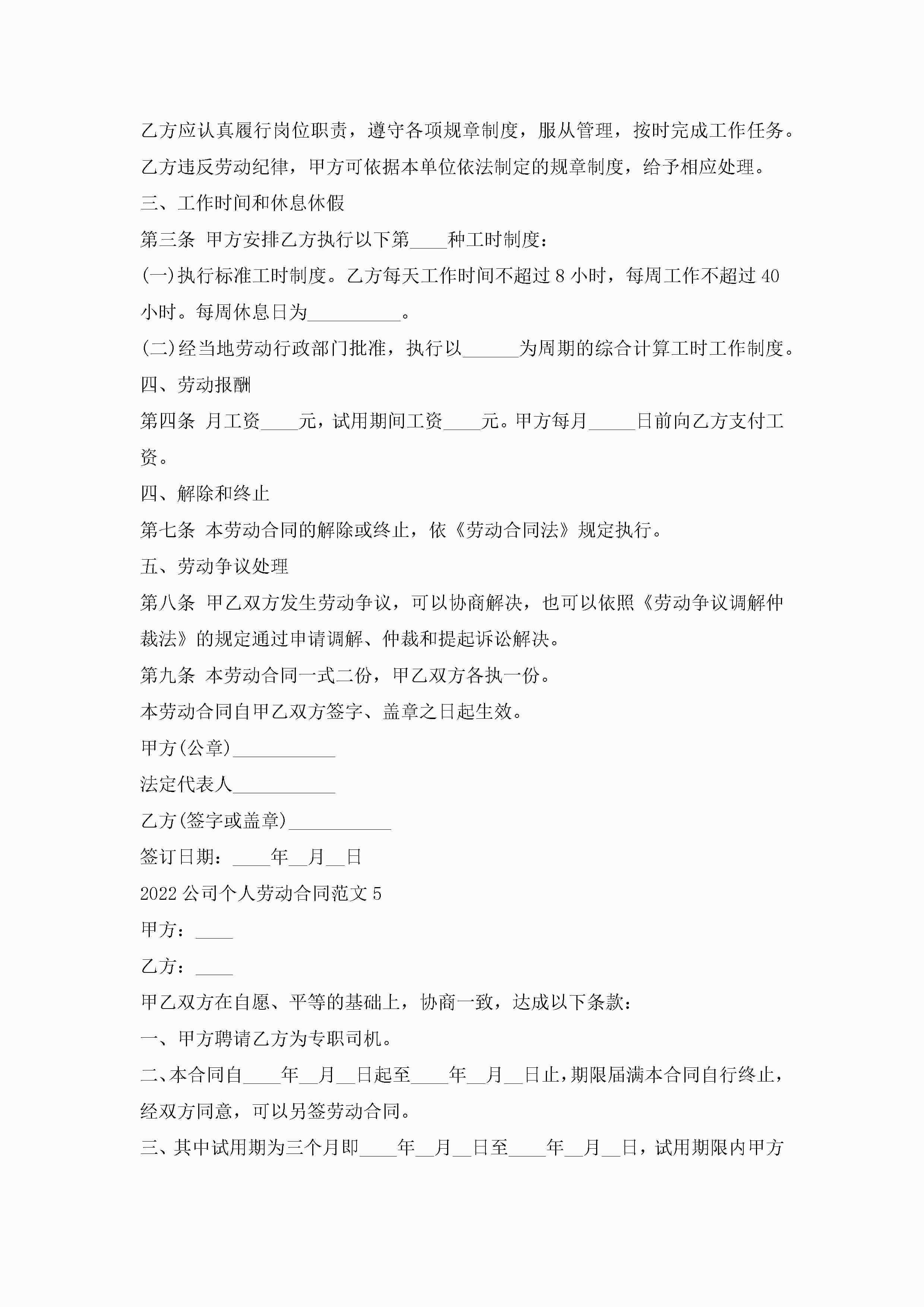 2022公司个人劳动合同范文5篇怎么写jugei3月23日 01:46发布关注208 2022公司个人劳动合同范文5篇怎么写此内容为付费资源,请付费后查看¥10.9 单篇文档限时特惠¥15个人会员开通企业会员开通立即下载无需登陆!可直接快捷下载单个模板付费资源© 版权声明THE ENDWord模板# 实用文档# 实用模板# 合同模板# 劳动合同 如有问题,可点击最底部“联系我们”联系客服 分享QQ空间微博QQ好友海报分享复制链接收藏