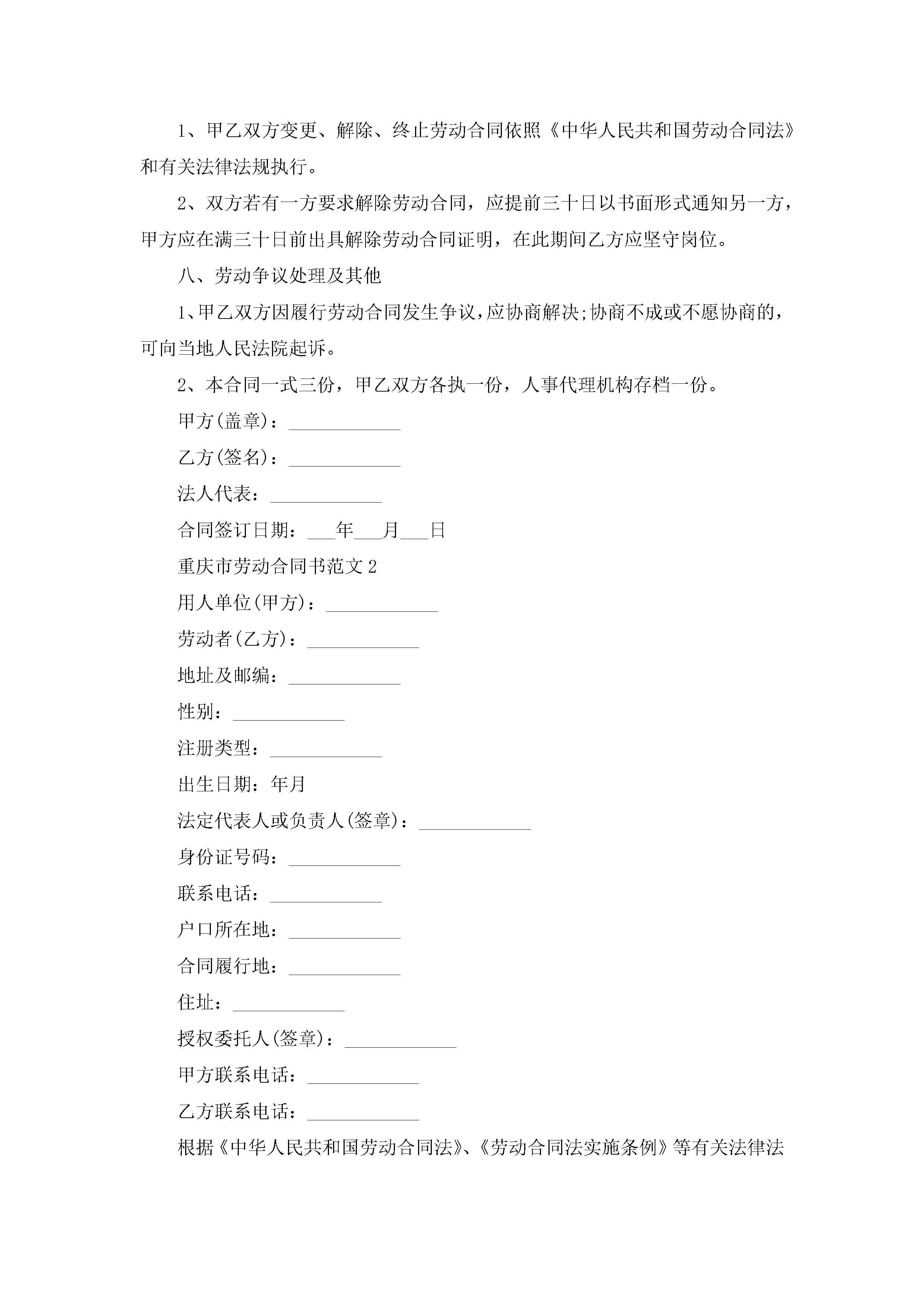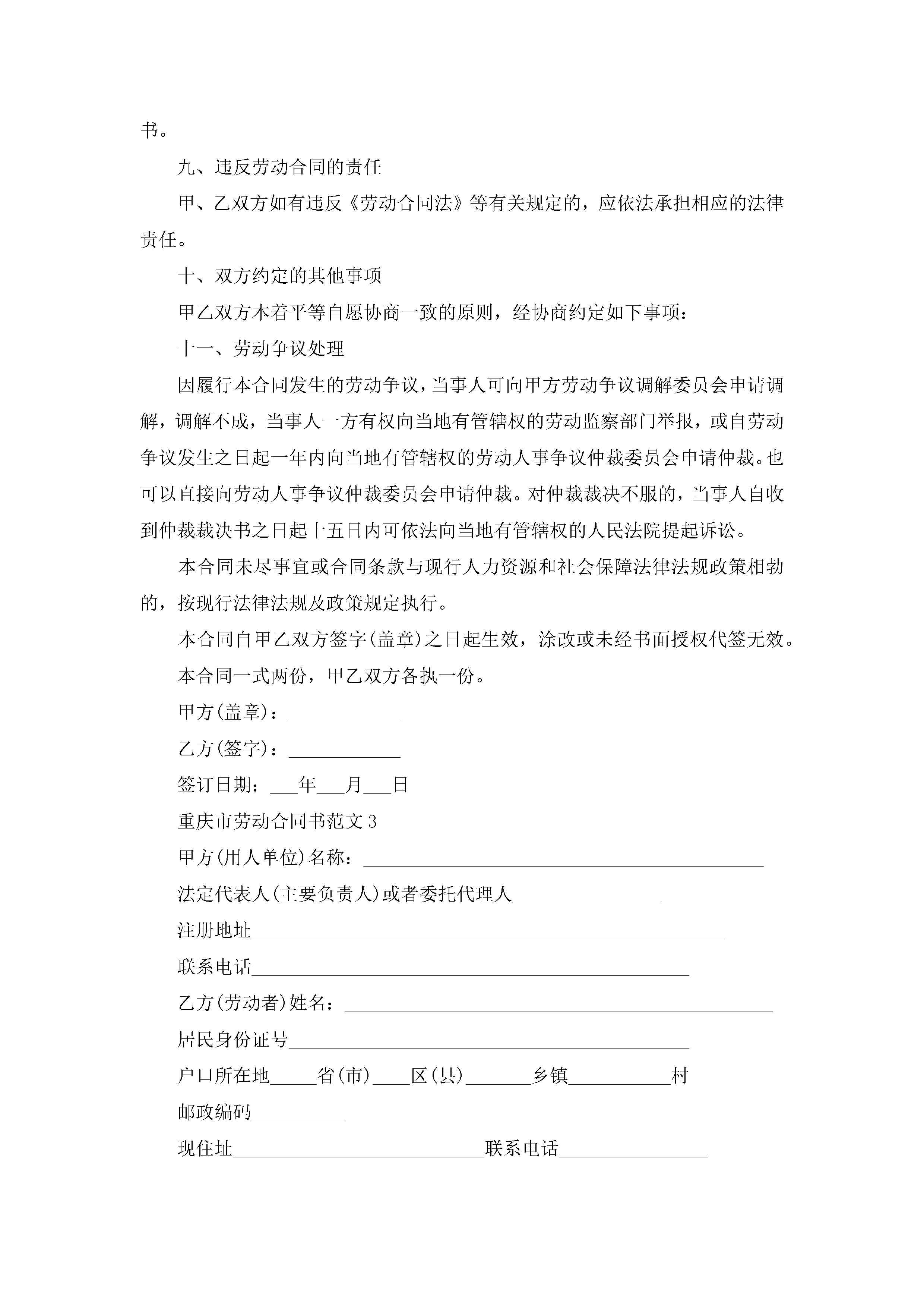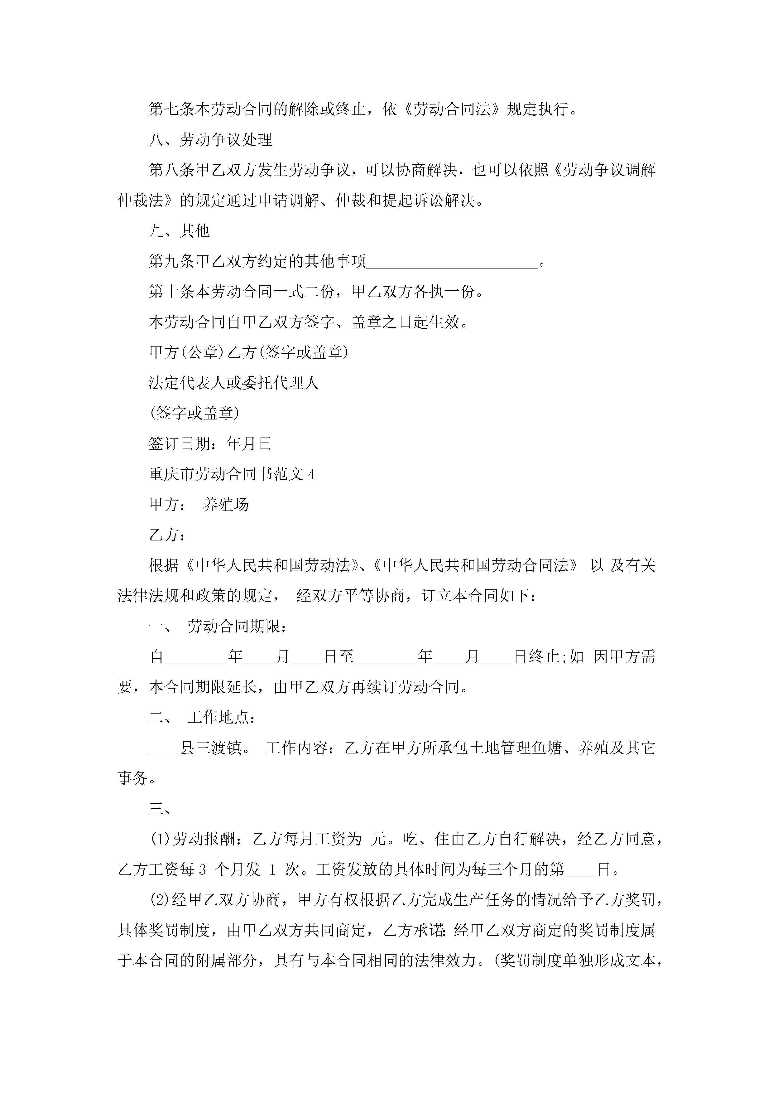 重庆市劳动合同书范文5篇jugei3月23日 01:46发布关注190 重庆市劳动合同书范文5篇此内容为付费资源,请付费后查看¥10.9 单篇文档限时特惠¥15个人会员开通企业会员开通立即下载无需登陆!可直接快捷下载单个模板付费资源© 版权声明THE ENDWord模板# 实用文档# 实用模板# 合同模板# 劳动合同 如有问题,可点击最底部“联系我们”联系客服 分享QQ空间微博QQ好友海报分享复制链接收藏