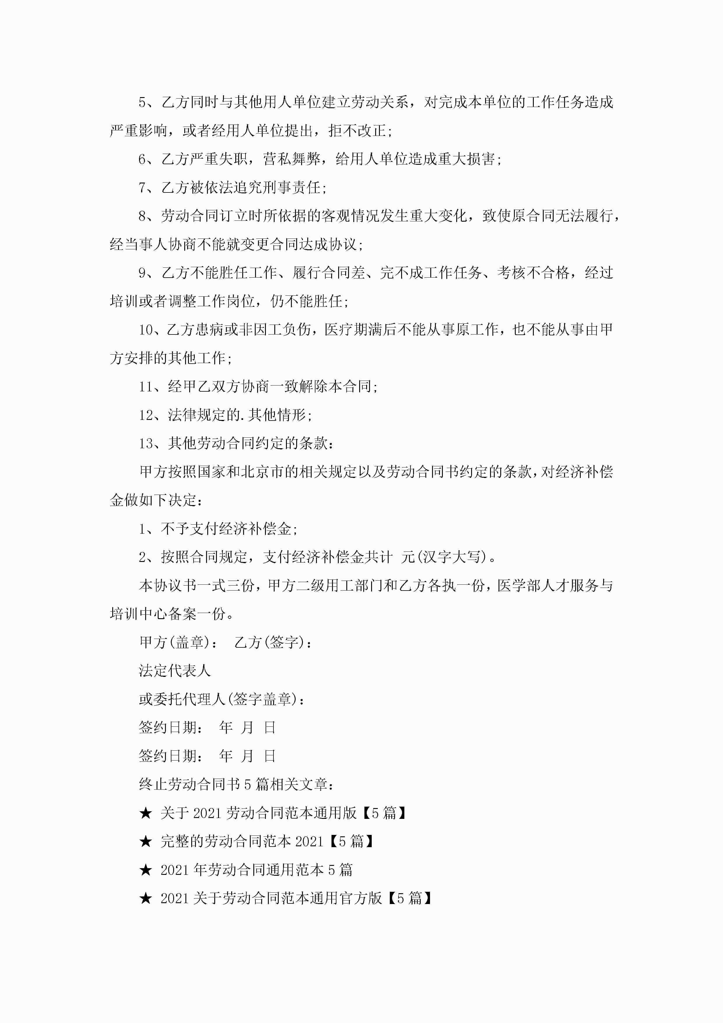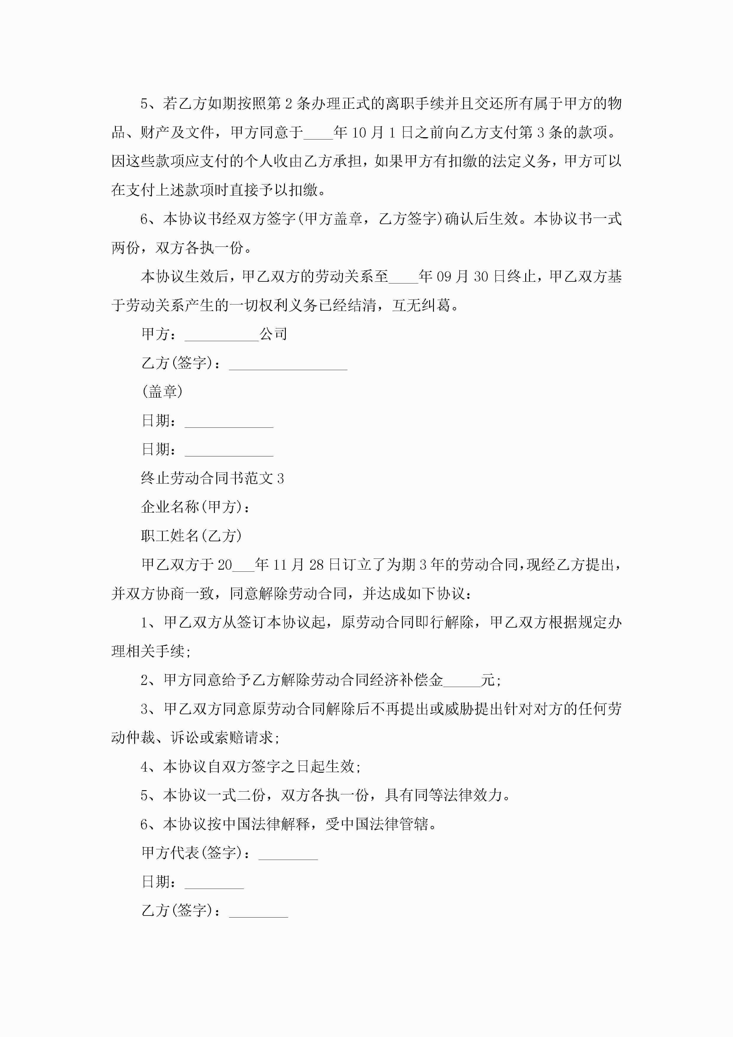 终止劳动合同书范文5篇jugei3月23日 01:46发布关注185 终止劳动合同书范文5篇此内容为付费资源,请付费后查看¥10.9 单篇文档限时特惠¥15个人会员开通企业会员开通立即下载无需登陆!可直接快捷下载单个模板付费资源© 版权声明THE ENDWord模板# 实用文档# 实用模板# 合同模板# 劳动合同 如有问题,可点击最底部“联系我们”联系客服 分享QQ空间微博QQ好友海报分享复制链接收藏