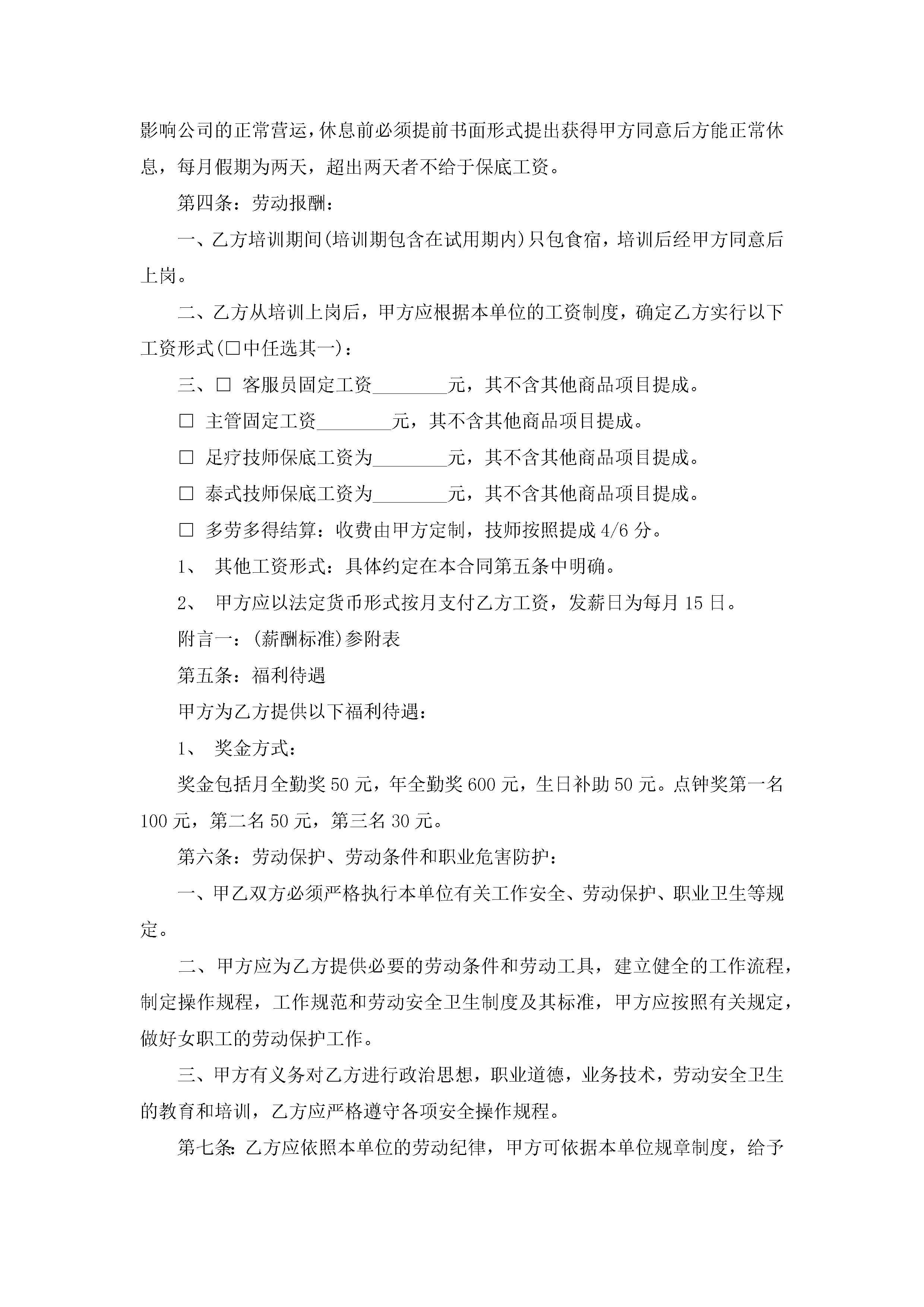 足疗店劳动合同书范文5篇jugei3月23日 01:46发布关注284 足疗店劳动合同书范文5篇此内容为付费资源,请付费后查看¥10.9 单篇文档限时特惠¥15个人会员开通企业会员开通立即下载无需登陆!可直接快捷下载单个模板付费资源© 版权声明THE ENDWord模板# 实用文档# 实用模板# 合同模板# 劳动合同 如有问题,可点击最底部“联系我们”联系客服 分享QQ空间微博QQ好友海报分享复制链接收藏