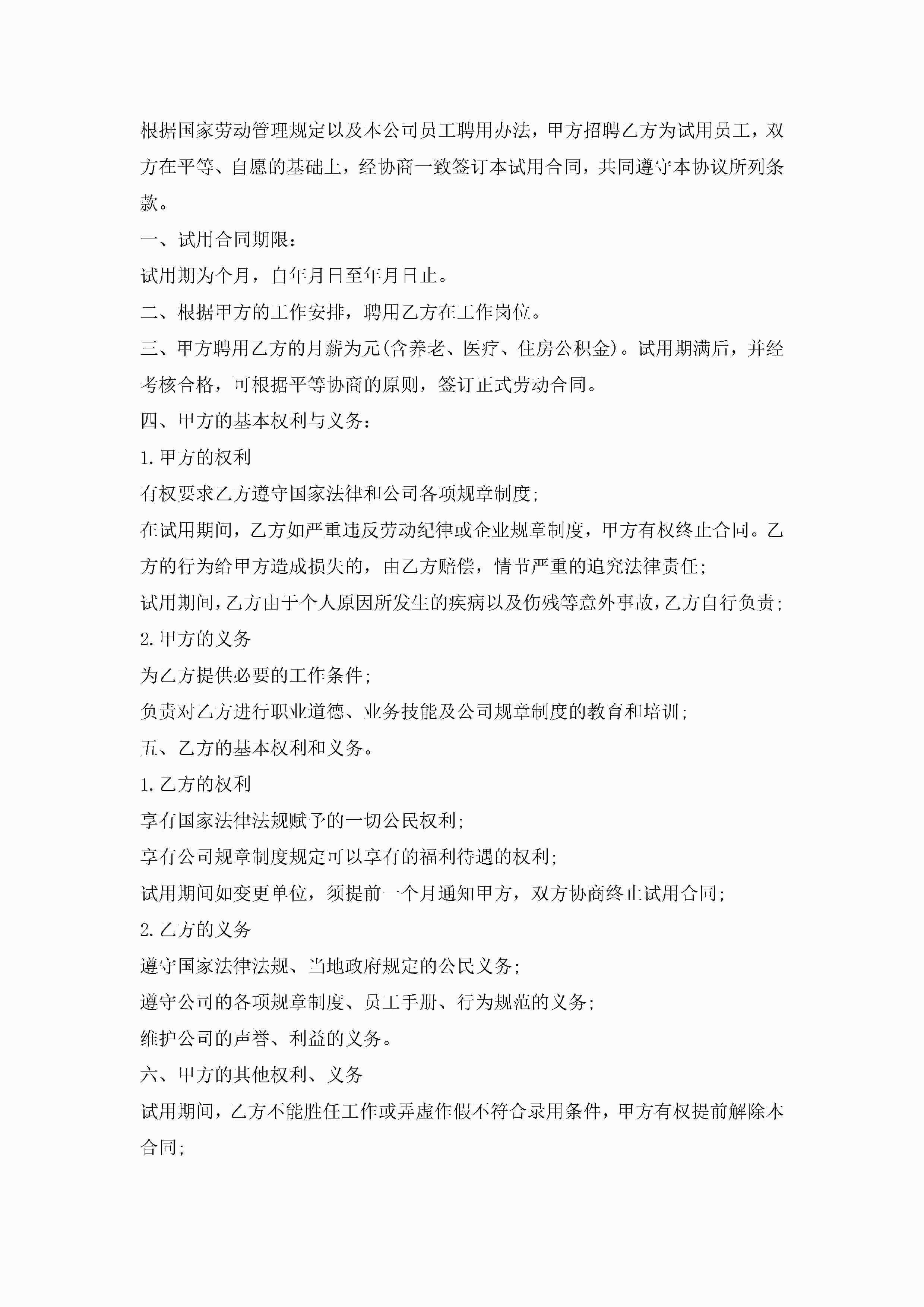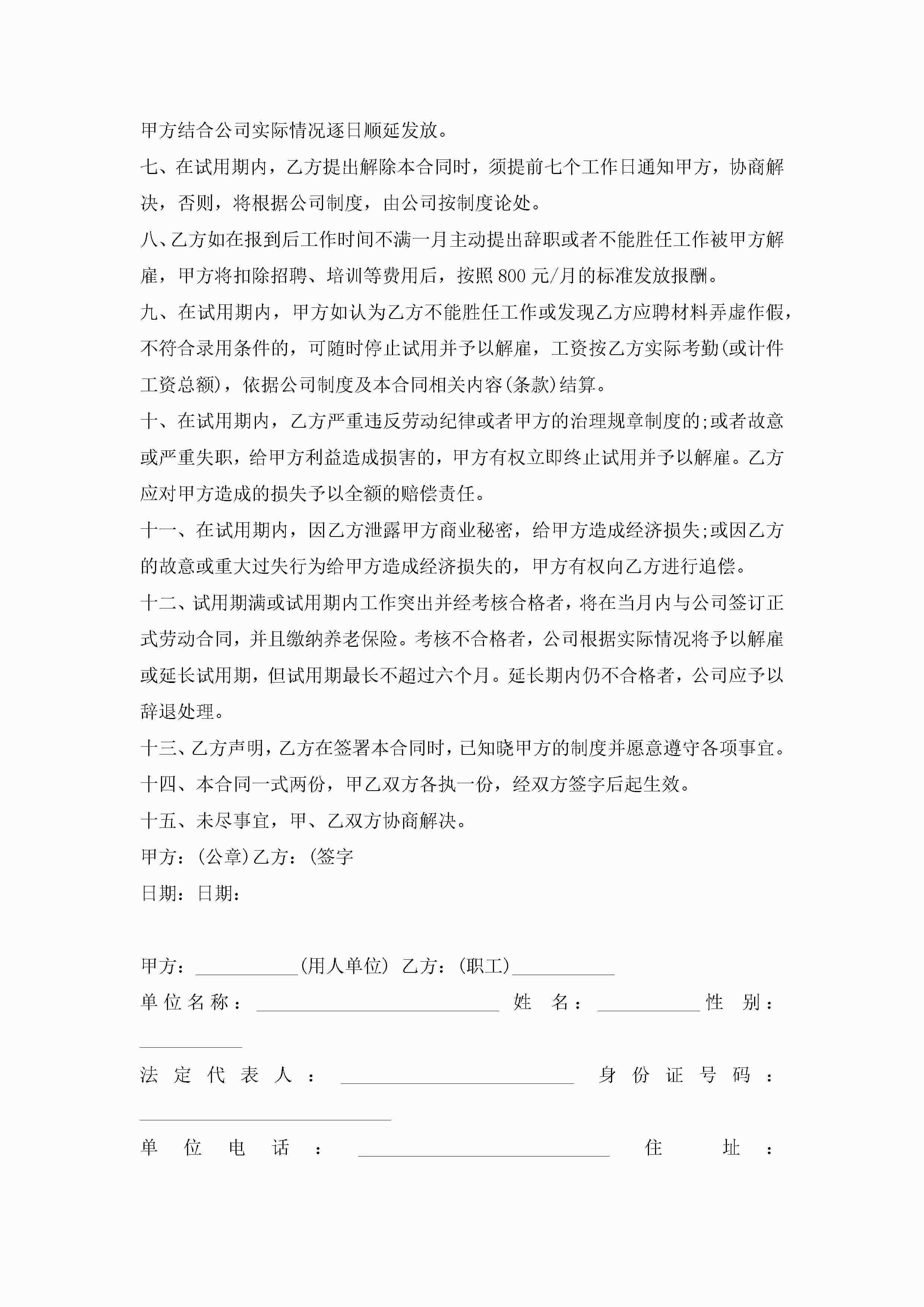 2022年员工试用期劳动合同5篇jugei3月23日 01:46发布关注227 2022年员工试用期劳动合同5篇此内容为付费资源,请付费后查看¥10.9 单篇文档限时特惠¥15个人会员开通企业会员开通立即下载无需登陆!可直接快捷下载单个模板付费资源© 版权声明THE ENDWord模板# 实用文档# 实用模板# 合同模板# 劳动合同 如有问题,可点击最底部“联系我们”联系客服 分享QQ空间微博QQ好友海报分享复制链接收藏