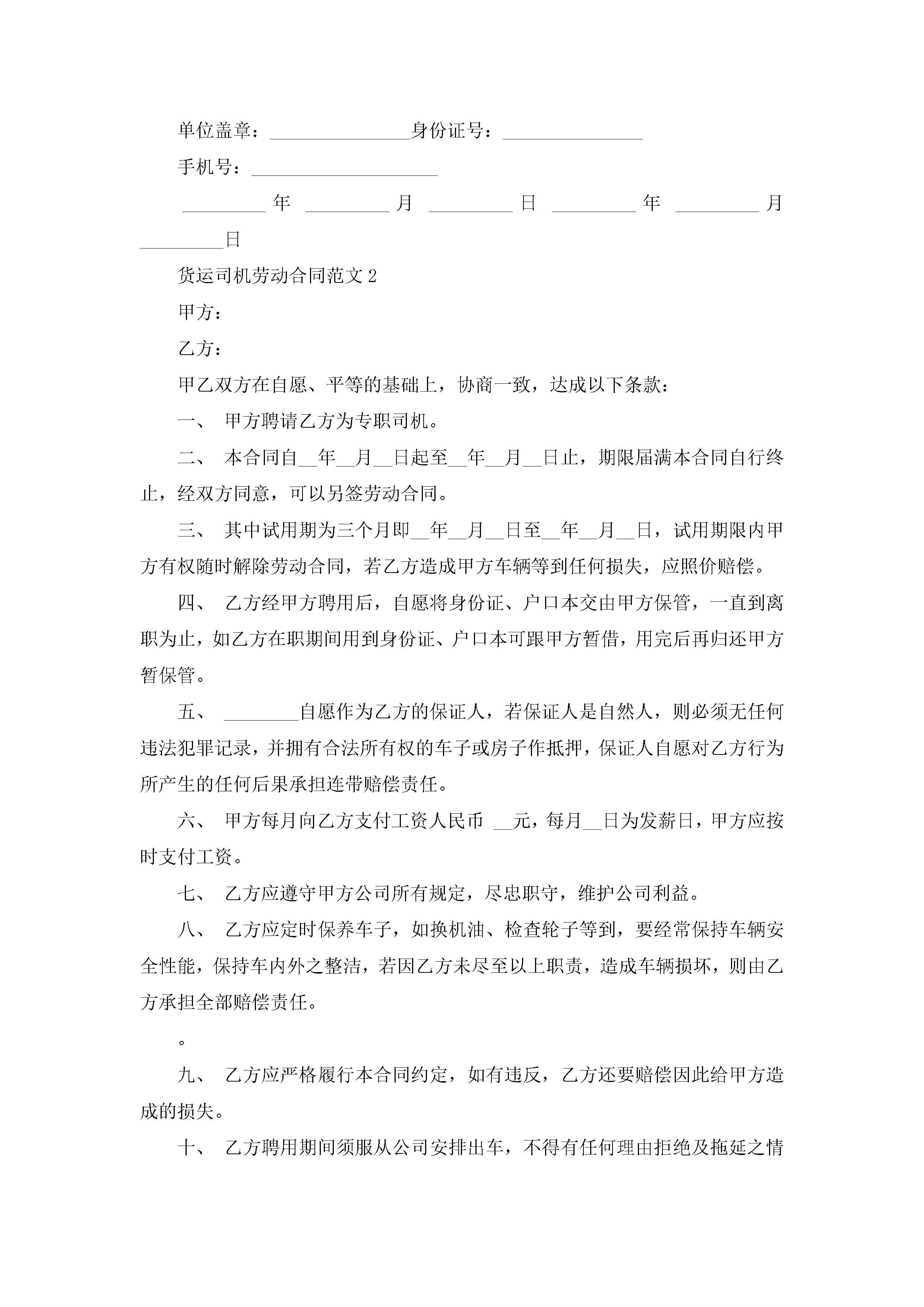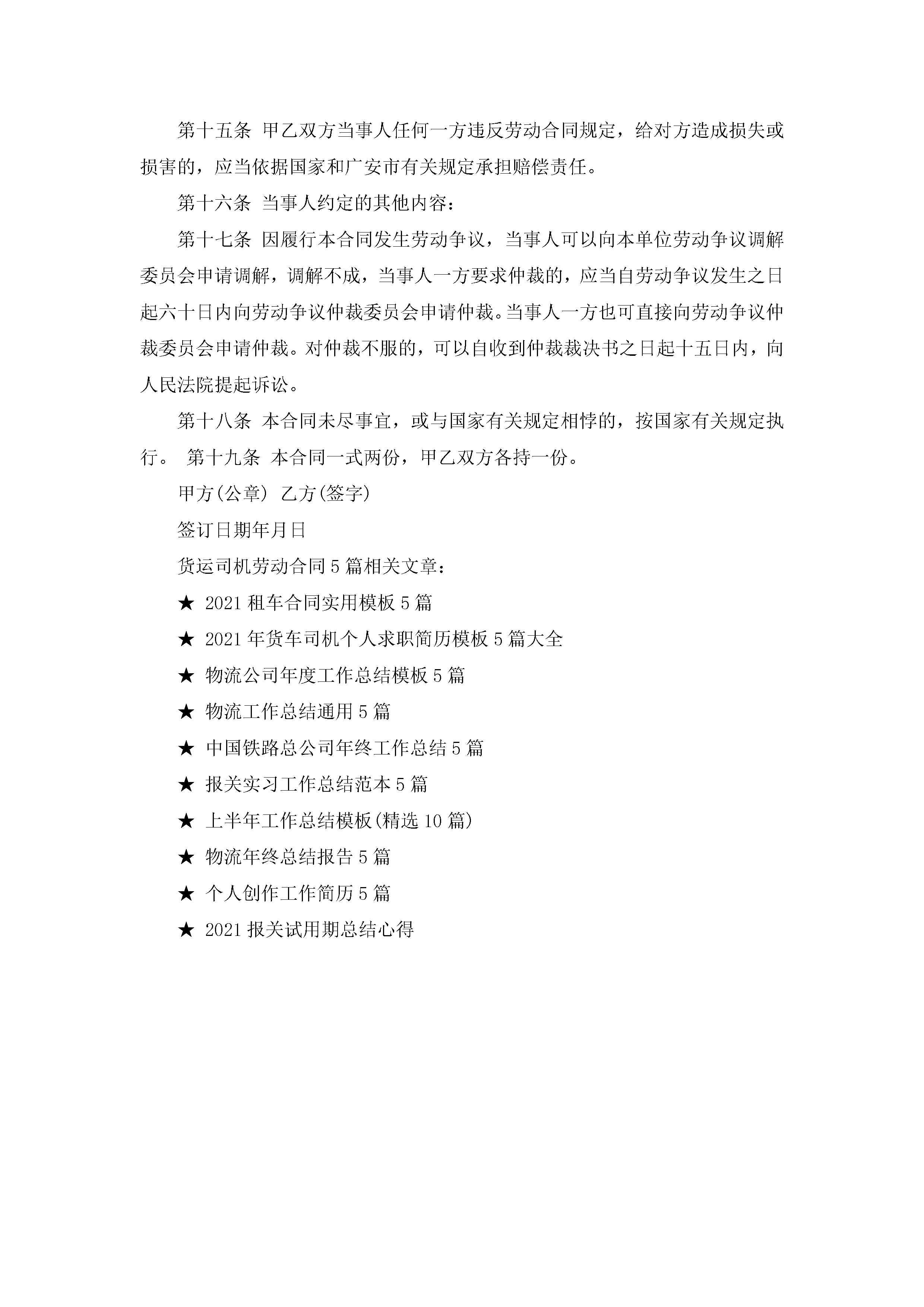 货运司机劳动合同范文5篇jugei3月23日 01:46发布关注188 货运司机劳动合同范文5篇此内容为付费资源,请付费后查看¥10.9 单篇文档限时特惠¥15个人会员开通企业会员开通立即下载无需登陆!可直接快捷下载单个模板付费资源© 版权声明THE ENDWord模板# 实用文档# 实用模板# 合同模板# 劳动合同 如有问题,可点击最底部“联系我们”联系客服 分享QQ空间微博QQ好友海报分享复制链接收藏