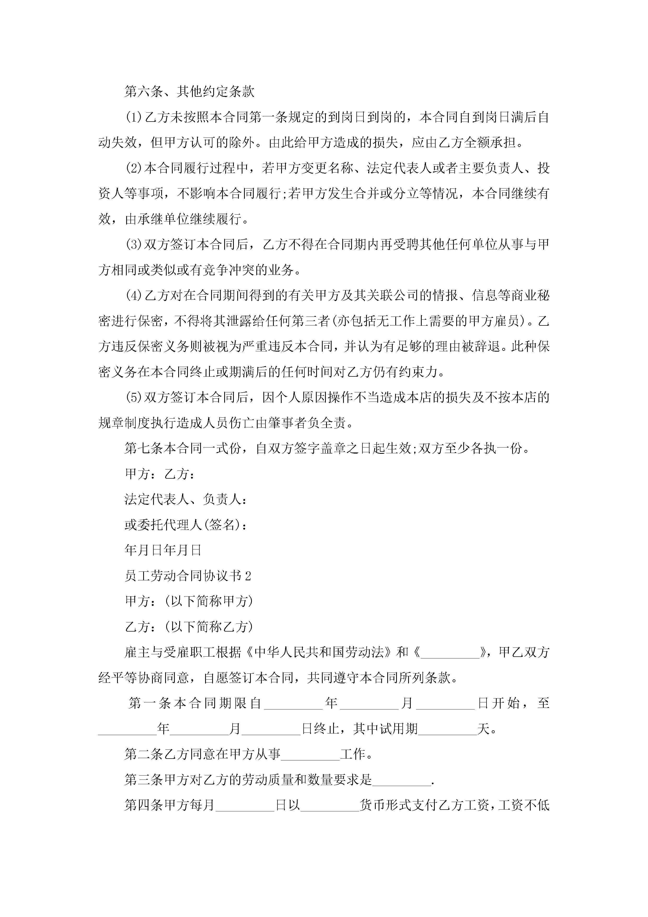 2022员工劳动合同协议书7篇jugei3月23日 01:46发布关注216 2022员工劳动合同协议书7篇此内容为付费资源,请付费后查看¥10.9 单篇文档限时特惠¥15个人会员开通企业会员开通立即下载无需登陆!可直接快捷下载单个模板付费资源© 版权声明THE ENDWord模板# 实用文档# 实用模板# 合同模板# 劳动合同 如有问题,可点击最底部“联系我们”联系客服 分享QQ空间微博QQ好友海报分享复制链接收藏