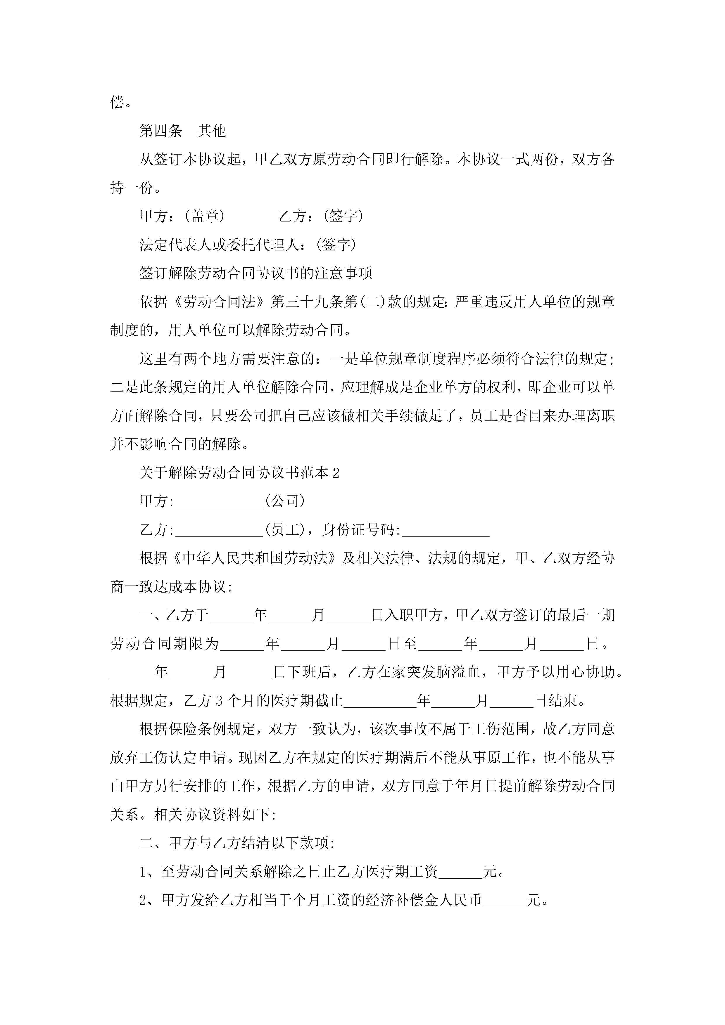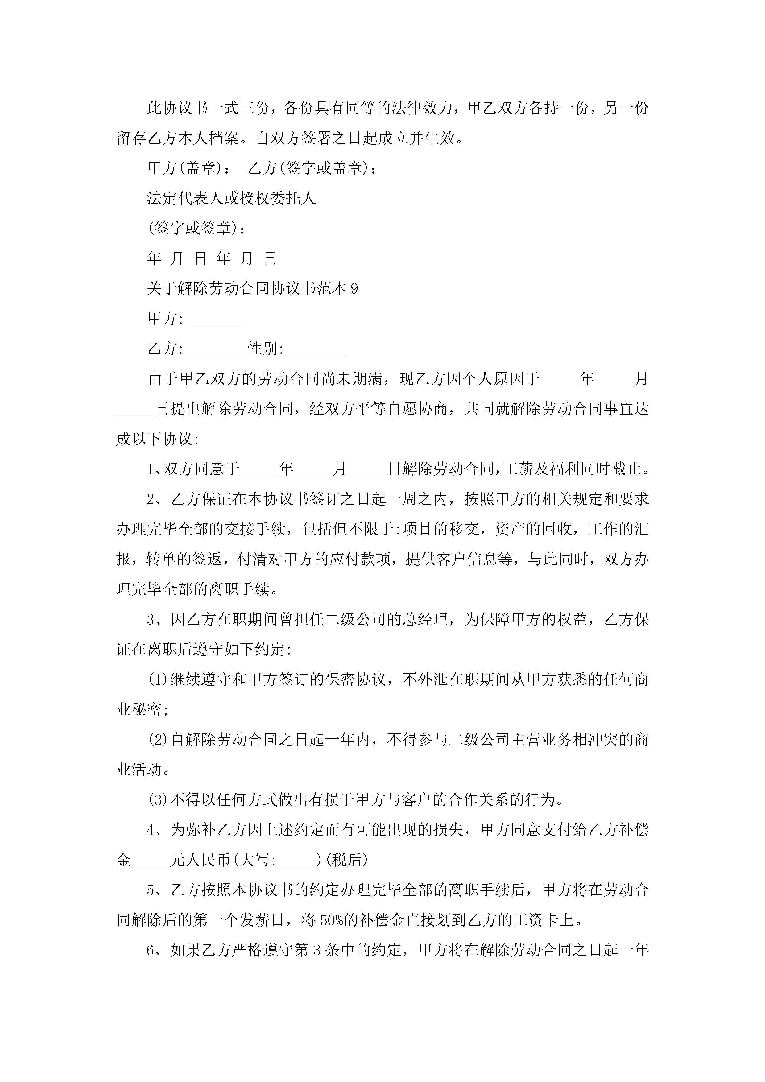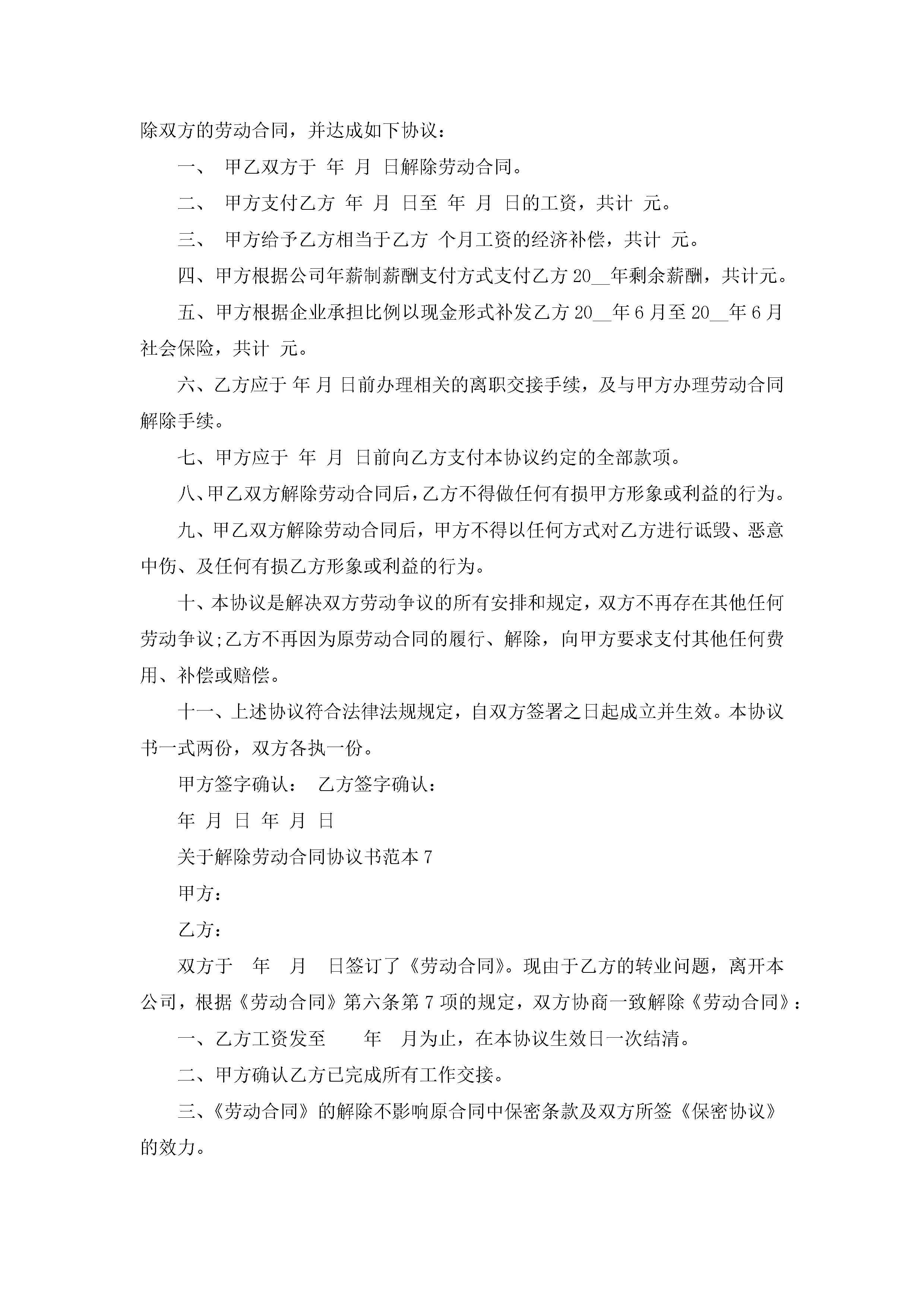 关于解除劳动合同协议书精选范本10篇(实用)jugei3月23日 01:46发布关注185 关于解除劳动合同协议书精选范本10篇(实用)此内容为付费资源,请付费后查看¥10.9 单篇文档限时特惠¥15个人会员开通企业会员开通立即下载无需登陆!可直接快捷下载单个模板付费资源© 版权声明THE ENDWord模板# 实用文档# 实用模板# 合同模板# 劳动合同 如有问题,可点击最底部“联系我们”联系客服 分享QQ空间微博QQ好友海报分享复制链接收藏