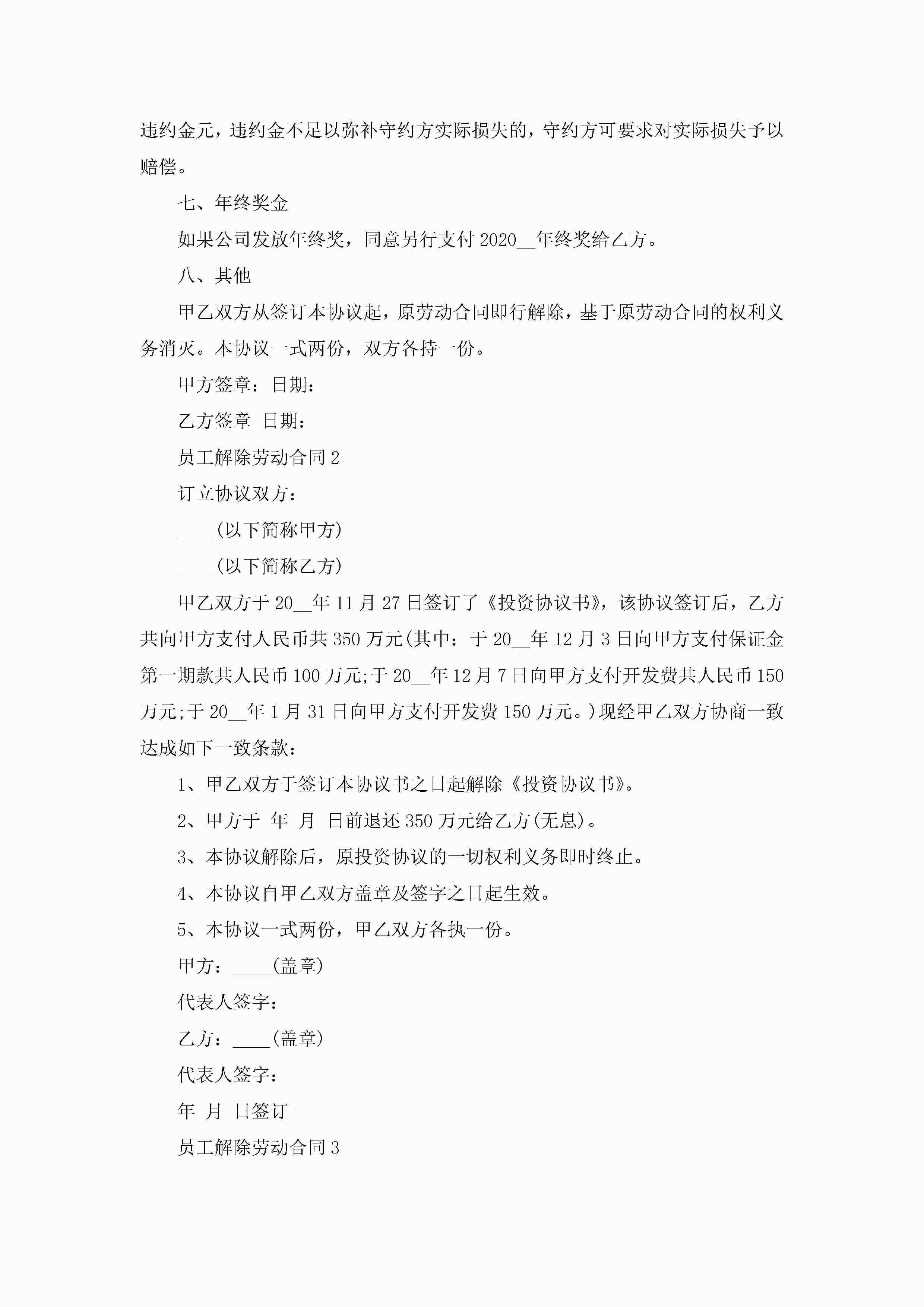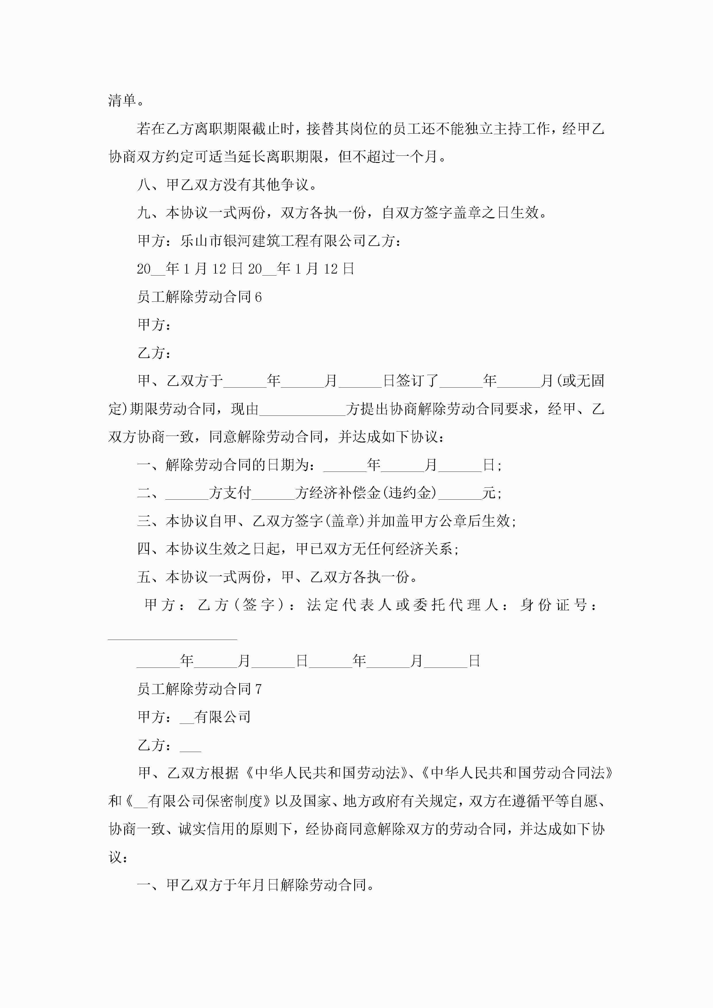 员工解除劳动合同范本10篇(实用)jugei3月23日 01:46发布关注187 员工解除劳动合同范本10篇(实用)此内容为付费资源,请付费后查看¥10.9 单篇文档限时特惠¥15个人会员开通企业会员开通立即下载无需登陆!可直接快捷下载单个模板付费资源© 版权声明THE ENDWord模板# 实用文档# 实用模板# 合同模板# 劳动合同 如有问题,可点击最底部“联系我们”联系客服 分享QQ空间微博QQ好友海报分享复制链接收藏
