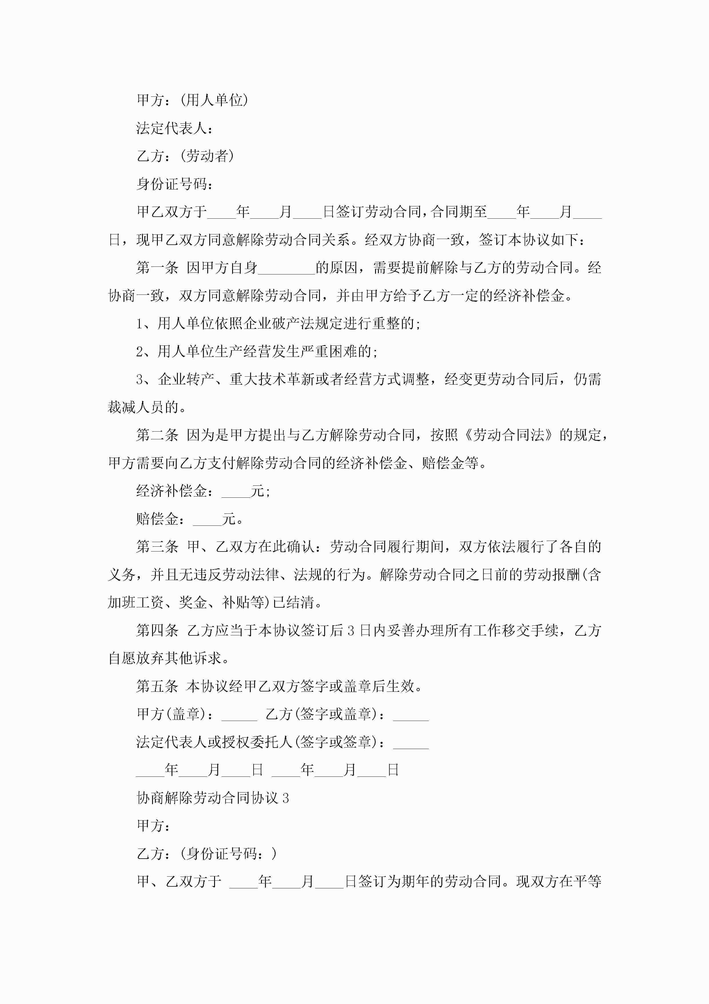 协商解除劳动合同协议模板jugei3月23日 01:46发布关注194 协商解除劳动合同协议模板此内容为付费资源,请付费后查看¥10.9 单篇文档限时特惠¥15个人会员开通企业会员开通立即下载无需登陆!可直接快捷下载单个模板付费资源© 版权声明THE ENDWord模板# 实用文档# 实用模板# 合同模板# 劳动合同 如有问题,可点击最底部“联系我们”联系客服 分享QQ空间微博QQ好友海报分享复制链接收藏