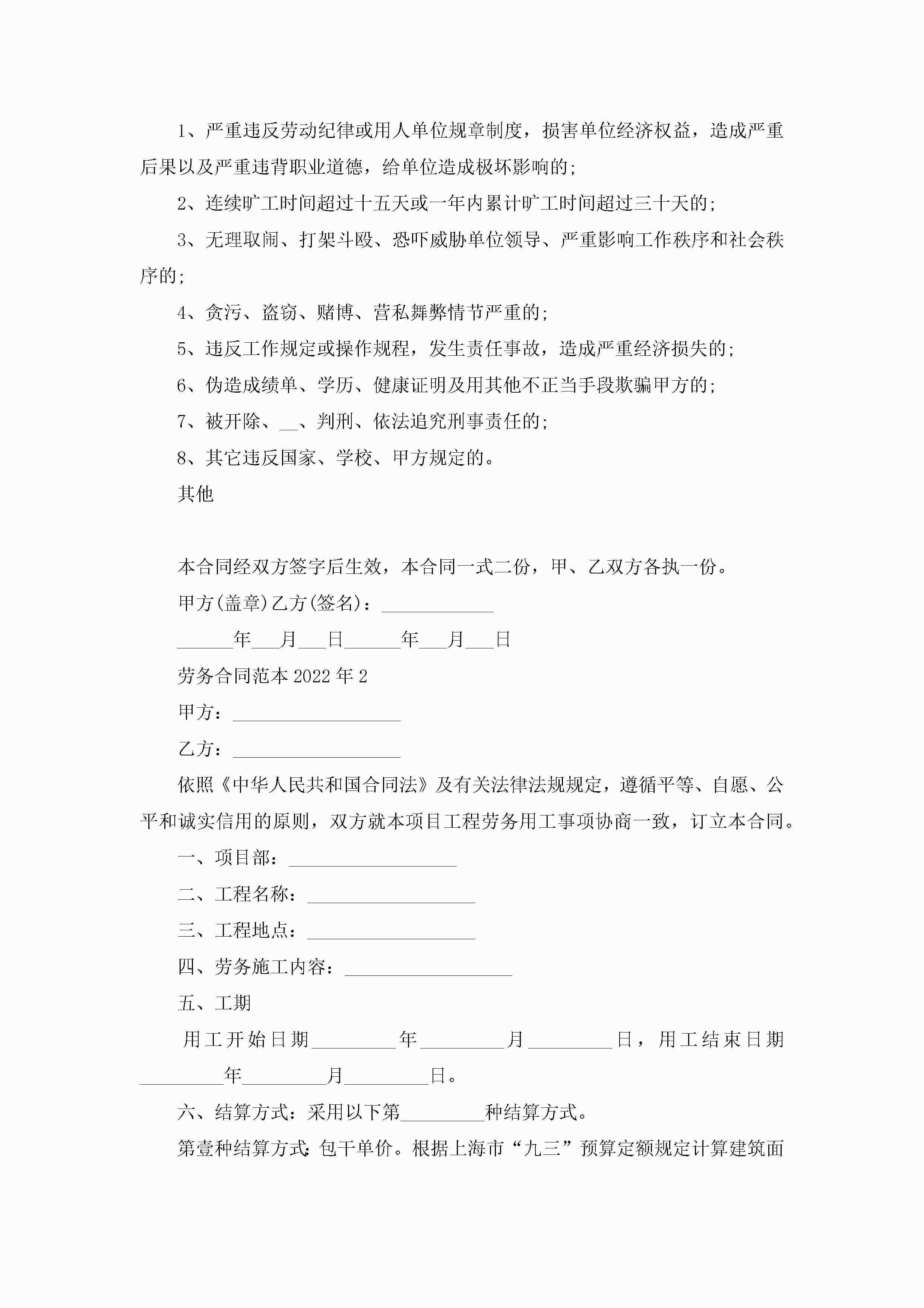 劳务合同最新范本2022年jugei3月23日 01:46发布关注185 劳务合同最新范本2022年此内容为付费资源,请付费后查看¥10.9 单篇文档限时特惠¥15个人会员开通企业会员开通立即下载无需登陆!可直接快捷下载单个模板付费资源© 版权声明THE ENDWord模板# 实用文档# 实用模板# 合同模板# 劳动合同 如有问题,可点击最底部“联系我们”联系客服 分享QQ空间微博QQ好友海报分享复制链接收藏