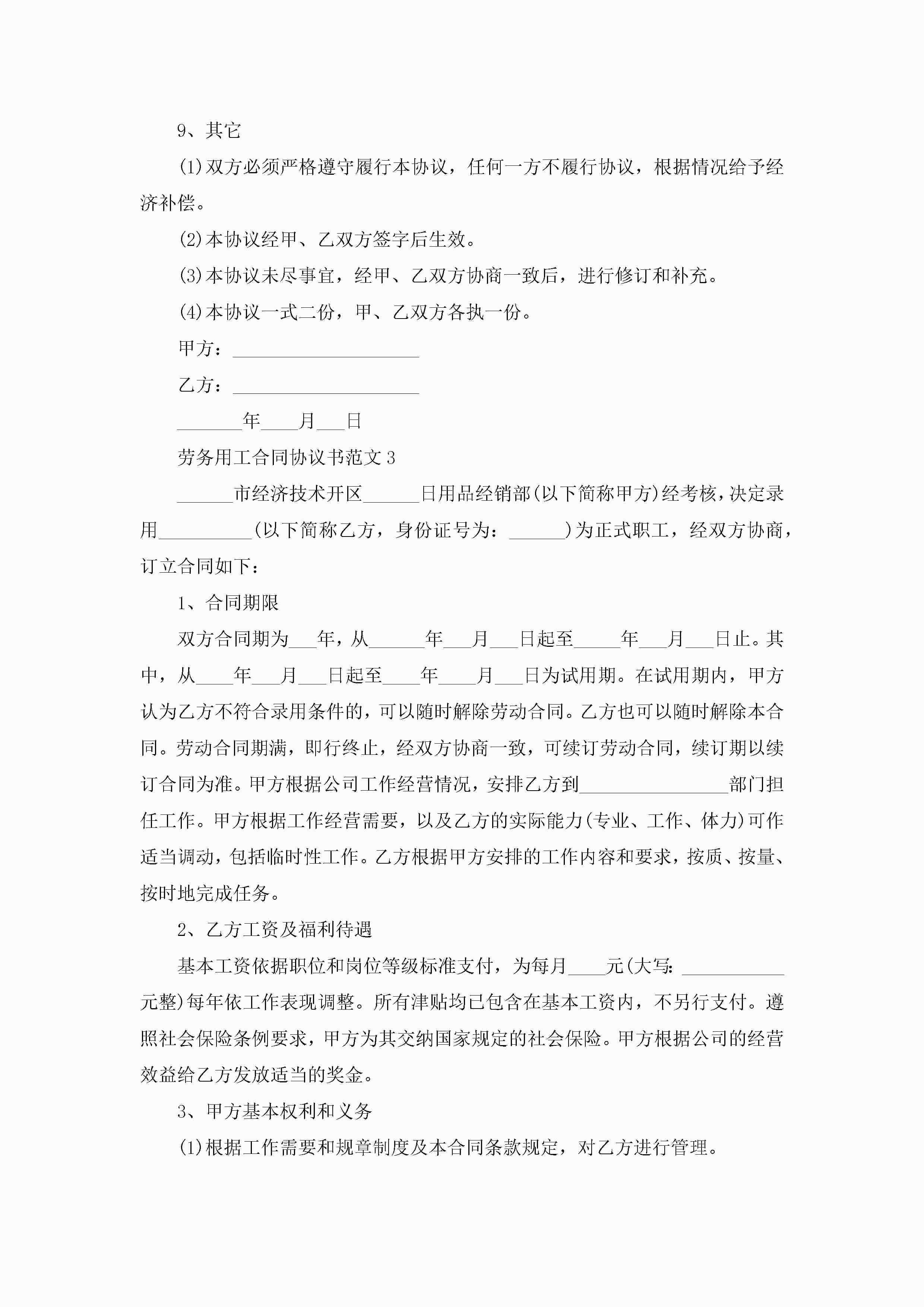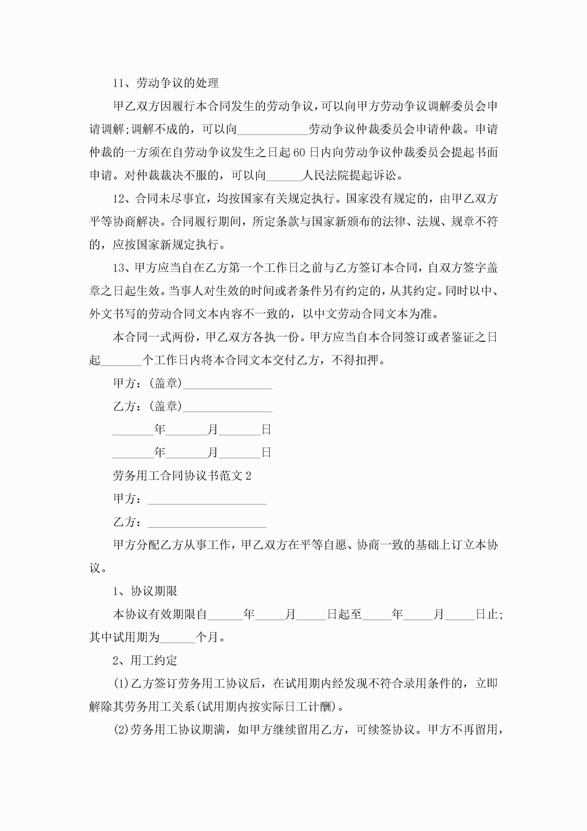 劳务用工合同协议书最新范文jugei3月23日 01:46发布关注206 劳务用工合同协议书最新范文此内容为付费资源,请付费后查看¥10.9 单篇文档限时特惠¥15个人会员开通企业会员开通立即下载无需登陆!可直接快捷下载单个模板付费资源© 版权声明THE ENDWord模板# 实用文档# 实用模板# 合同模板# 劳动合同 如有问题,可点击最底部“联系我们”联系客服 分享QQ空间微博QQ好友海报分享复制链接收藏