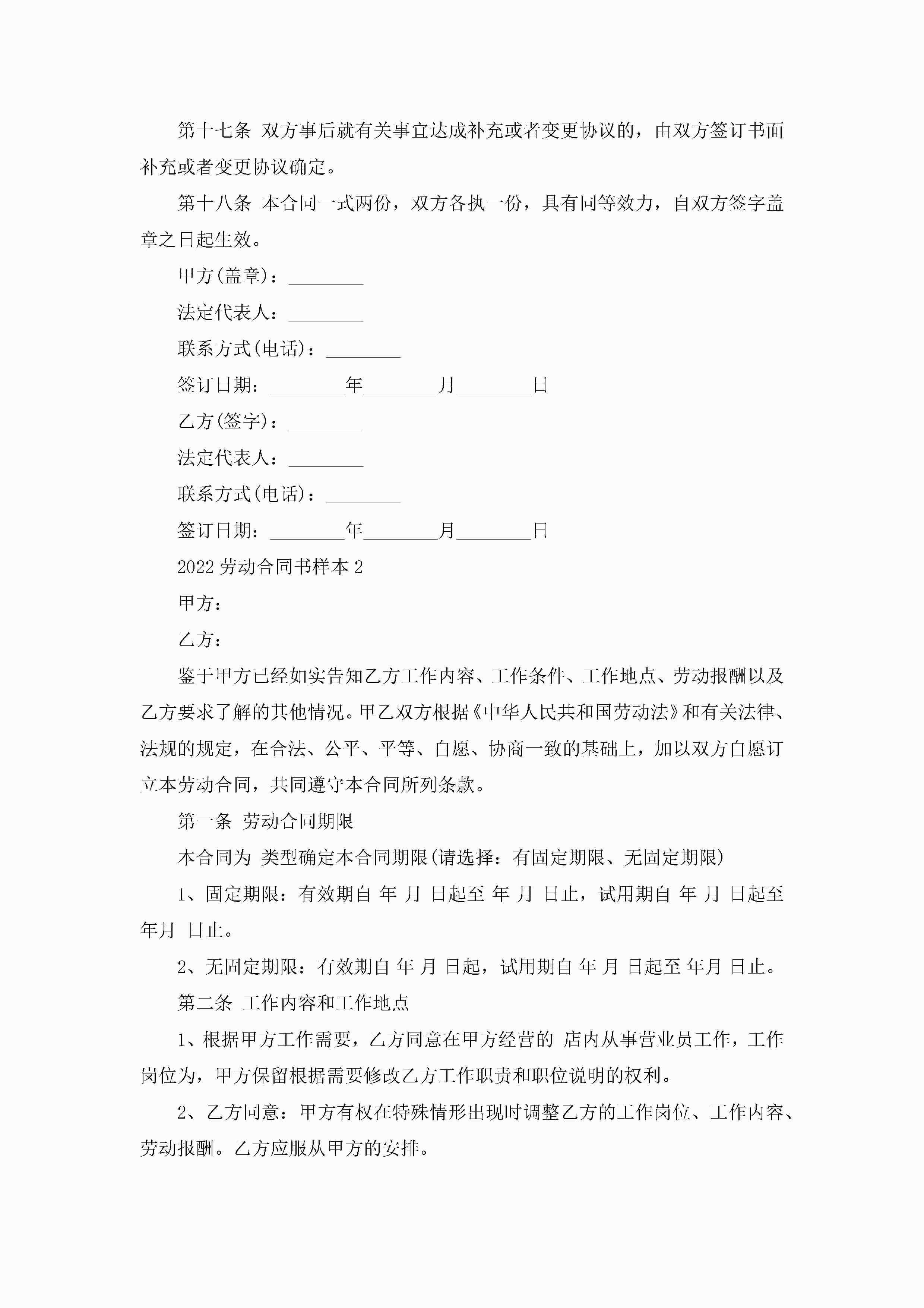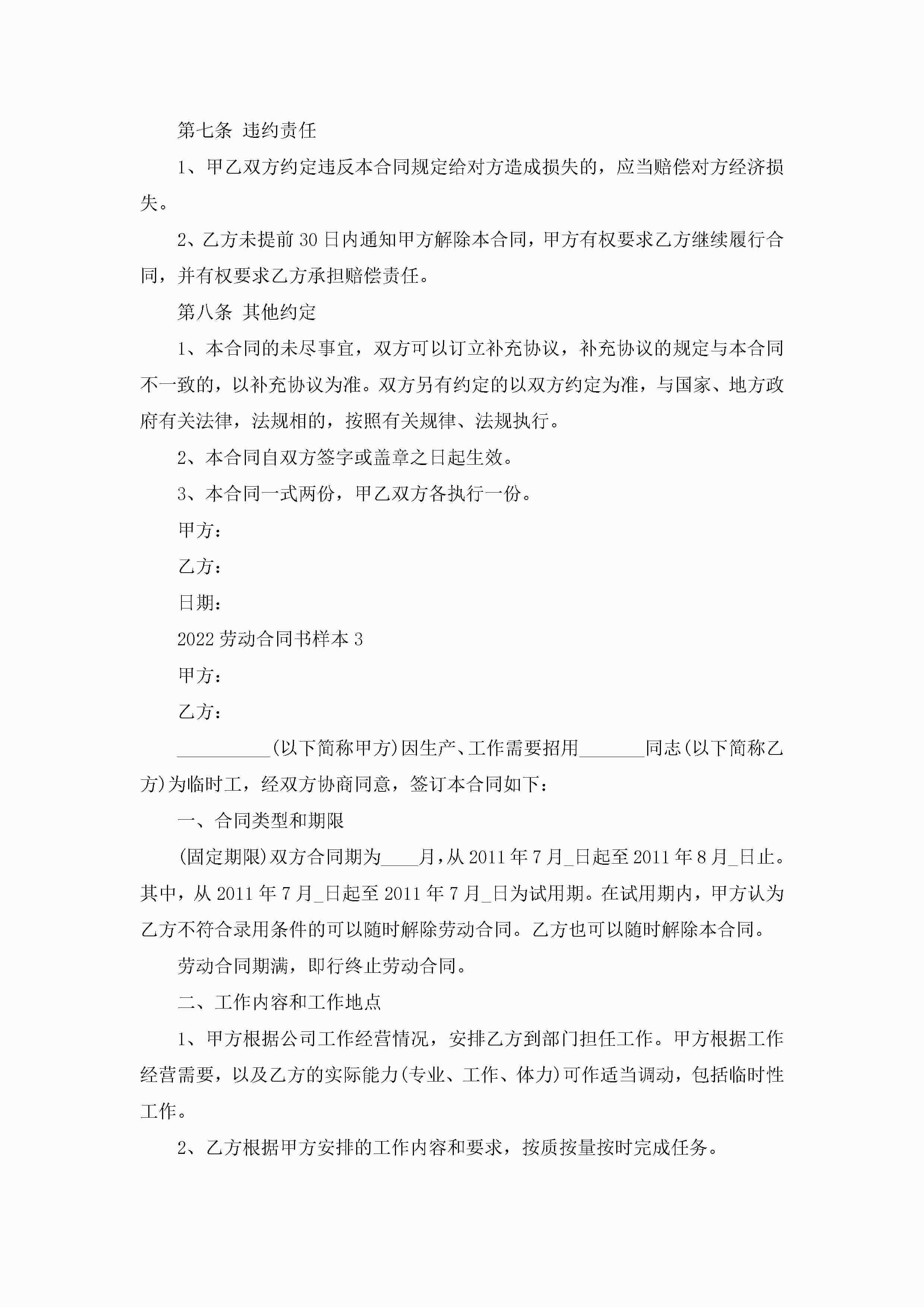 2022劳动合同书最新样本jugei3月23日 01:46发布关注242 2022劳动合同书最新样本此内容为付费资源,请付费后查看¥10.9 单篇文档限时特惠¥15个人会员开通企业会员开通立即下载无需登陆!可直接快捷下载单个模板付费资源© 版权声明THE ENDWord模板# 实用文档# 实用模板# 合同模板# 劳动合同 如有问题,可点击最底部“联系我们”联系客服 分享QQ空间微博QQ好友海报分享复制链接收藏