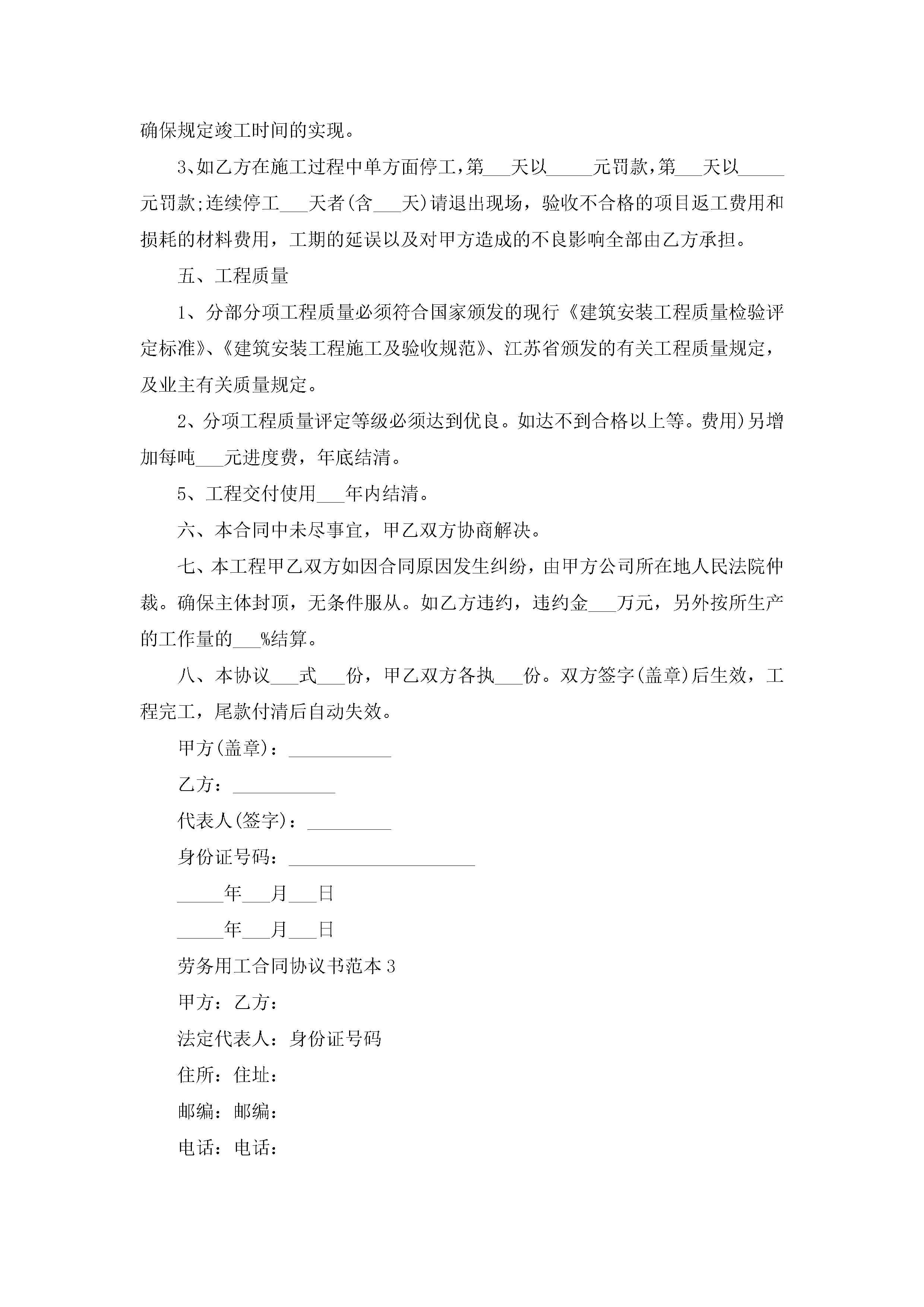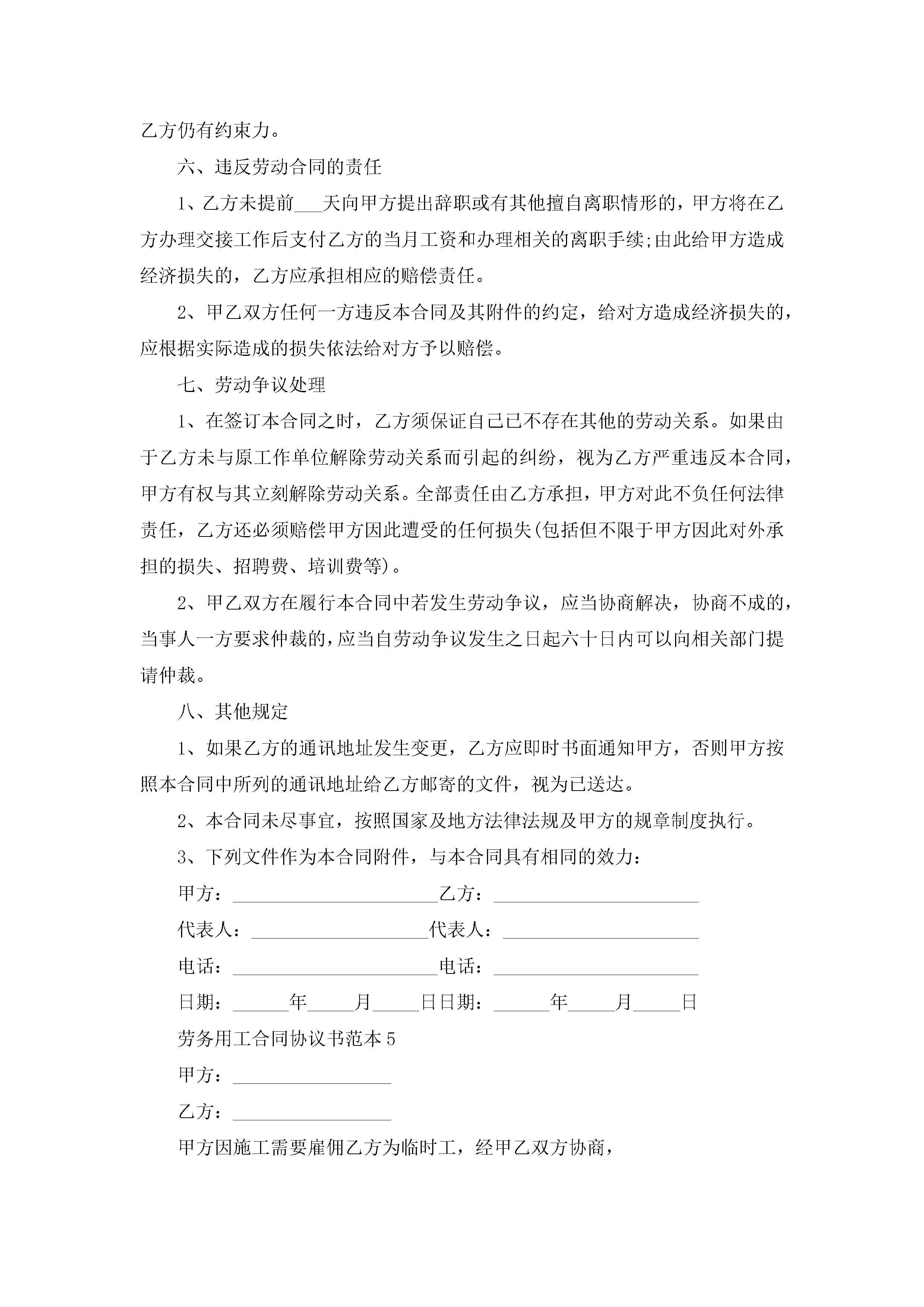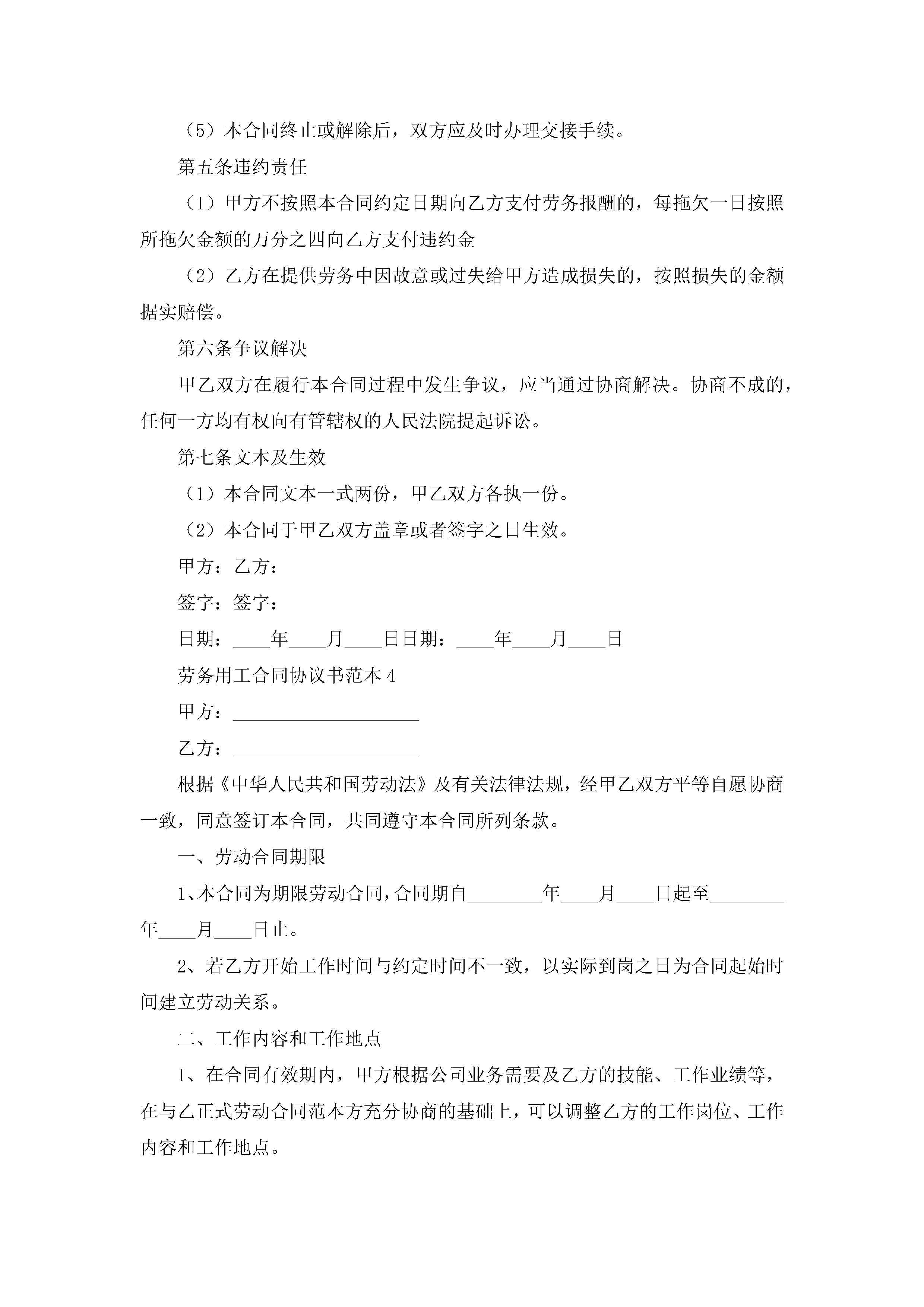 劳务用工合同协议书范本5篇(精选)jugei3月23日 01:46发布关注193 劳务用工合同协议书范本5篇(精选)此内容为付费资源,请付费后查看¥10.9 单篇文档限时特惠¥15个人会员开通企业会员开通立即下载无需登陆!可直接快捷下载单个模板付费资源© 版权声明THE ENDWord模板# 实用文档# 实用模板# 合同模板# 劳动合同 如有问题,可点击最底部“联系我们”联系客服 分享QQ空间微博QQ好友海报分享复制链接收藏