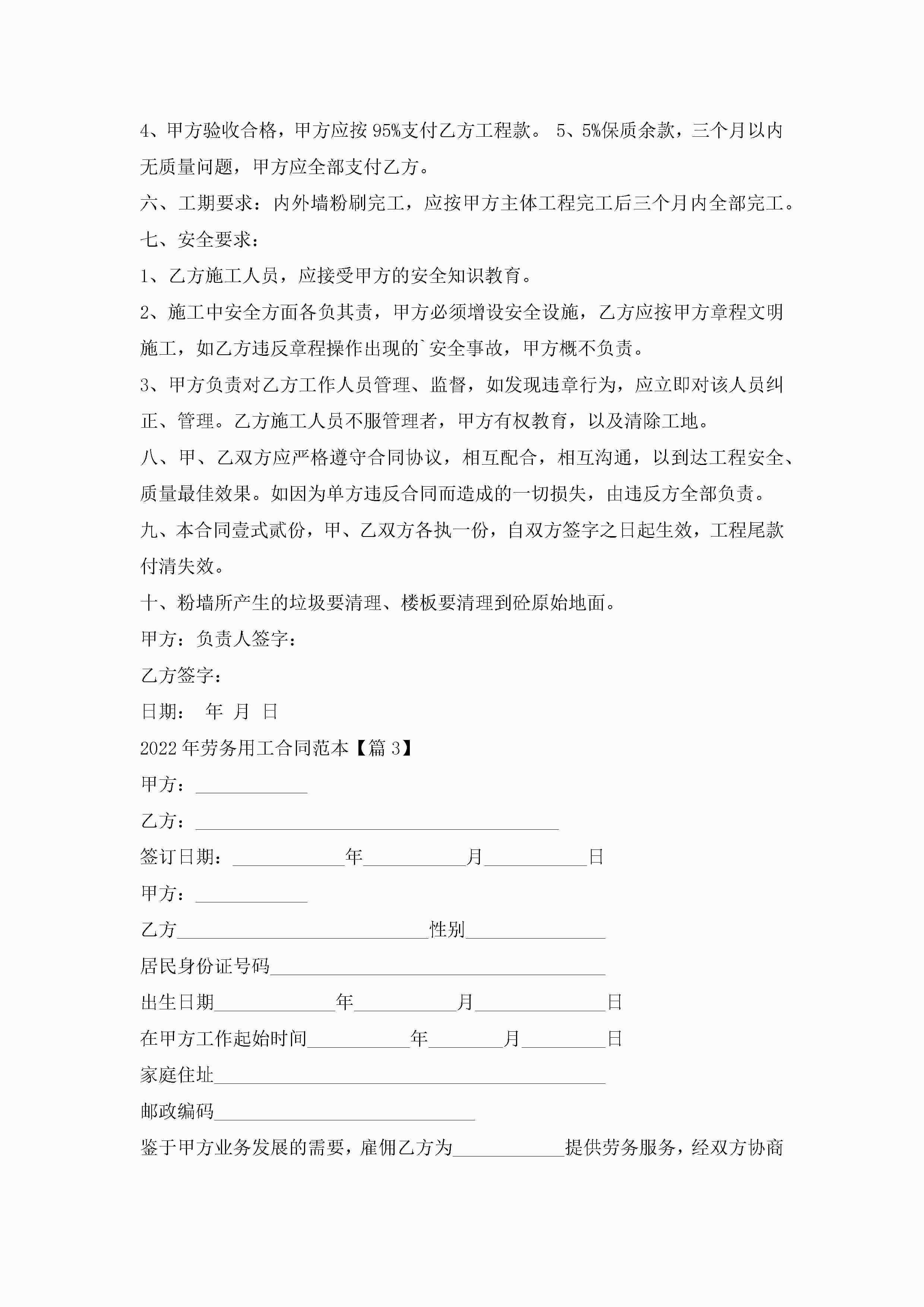 2022年劳务用工合同范本通用5篇jugei3月23日 01:46发布关注194 2022年劳务用工合同范本通用5篇此内容为付费资源,请付费后查看¥10.9 单篇文档限时特惠¥15个人会员开通企业会员开通立即下载无需登陆!可直接快捷下载单个模板付费资源© 版权声明THE ENDWord模板# 实用文档# 实用模板# 合同模板# 劳动合同 如有问题,可点击最底部“联系我们”联系客服 分享QQ空间微博QQ好友海报分享复制链接收藏