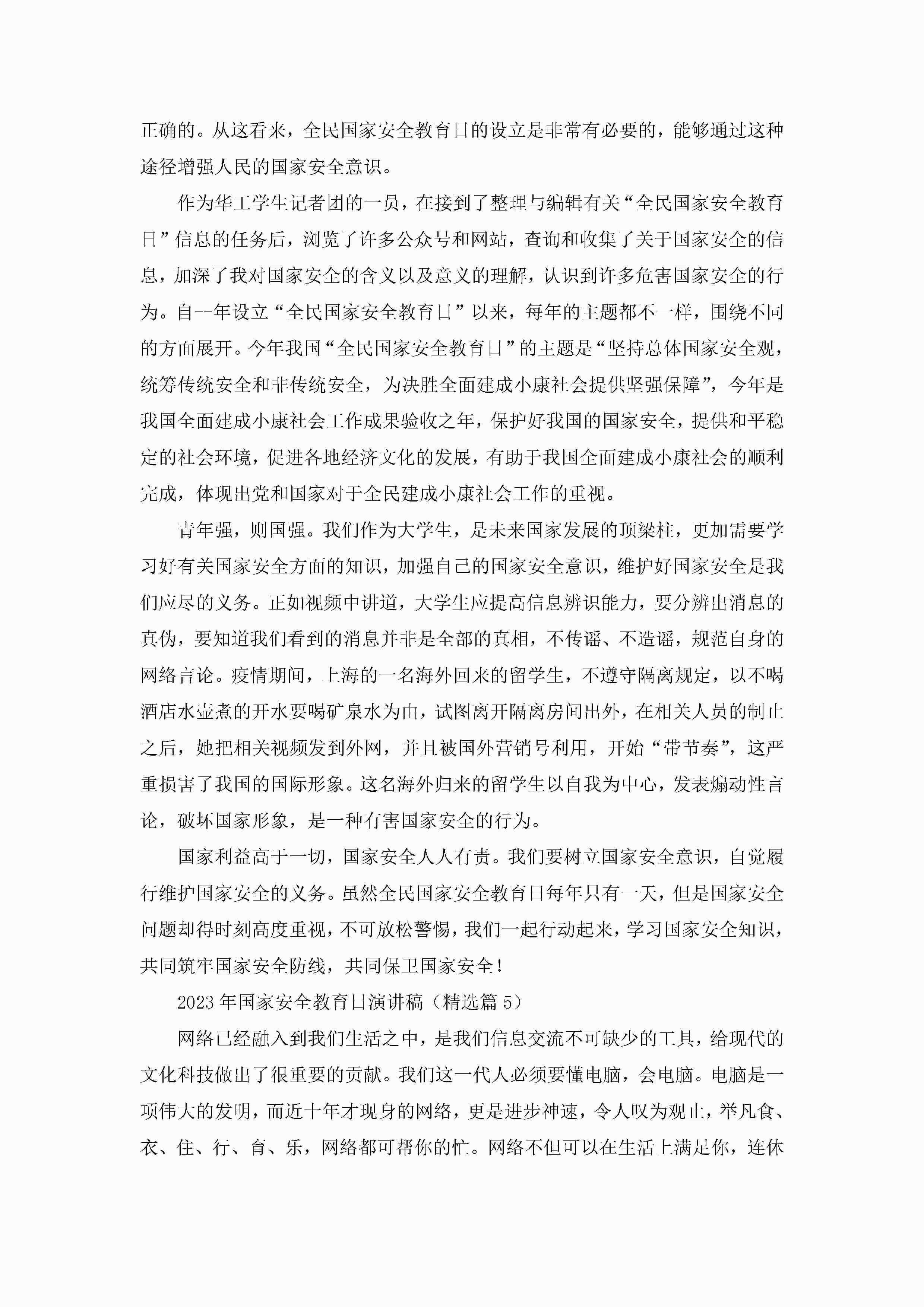 2023年国家安全教育日演讲稿5篇jugei3月23日 01:46发布关注366 2023年国家安全教育日演讲稿5篇此内容为付费资源,请付费后查看¥10.9 单篇文档限时特惠¥15个人会员开通企业会员开通立即下载无需登陆!可直接快捷下载单个模板付费资源© 版权声明THE ENDWord模板# 实用文档# 演讲稿# 经典演讲稿# 实用写作# 2023年国家安全教育日演讲稿 如有问题,可点击最底部“联系我们”联系客服 分享QQ空间微博QQ好友海报分享复制链接收藏