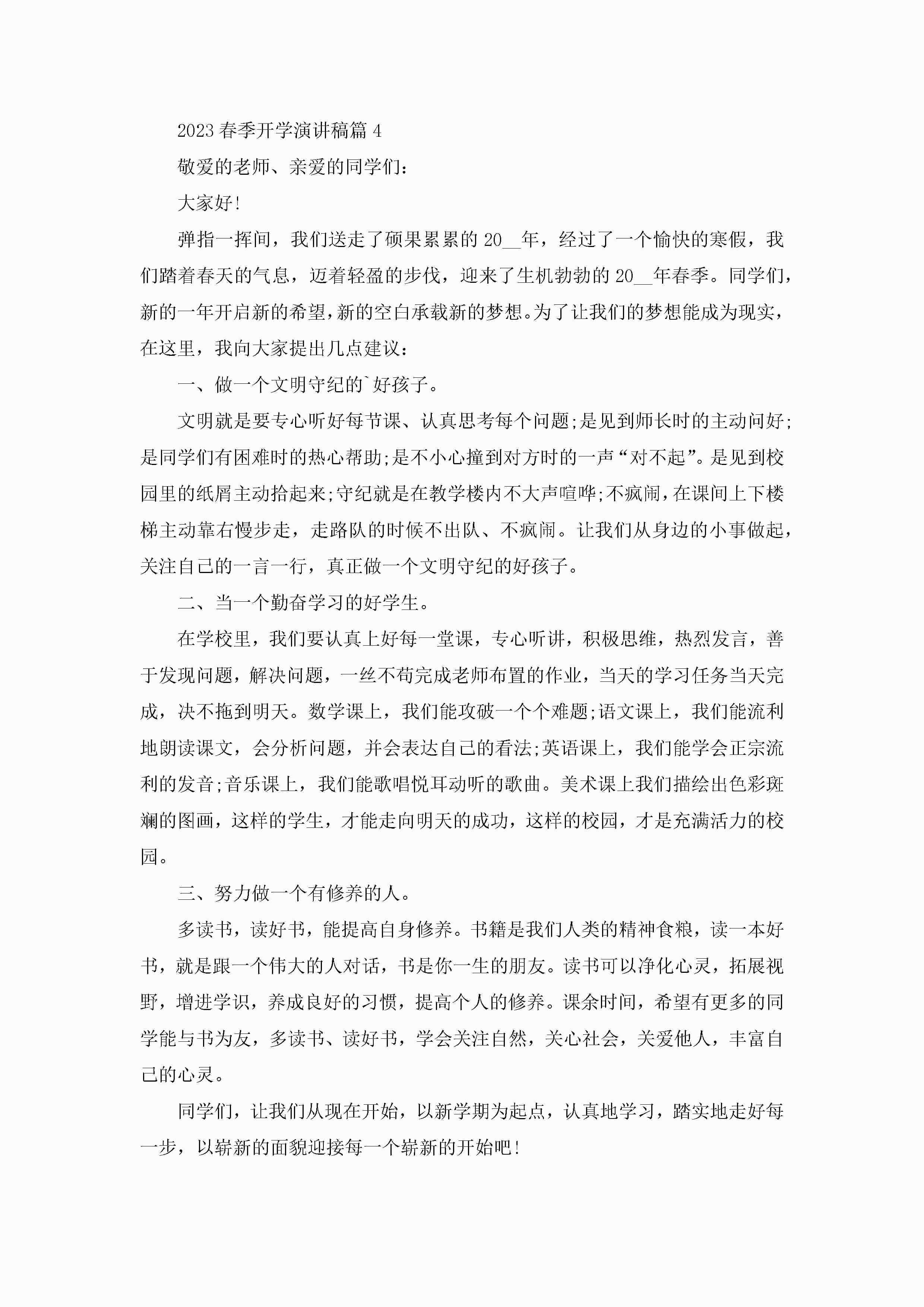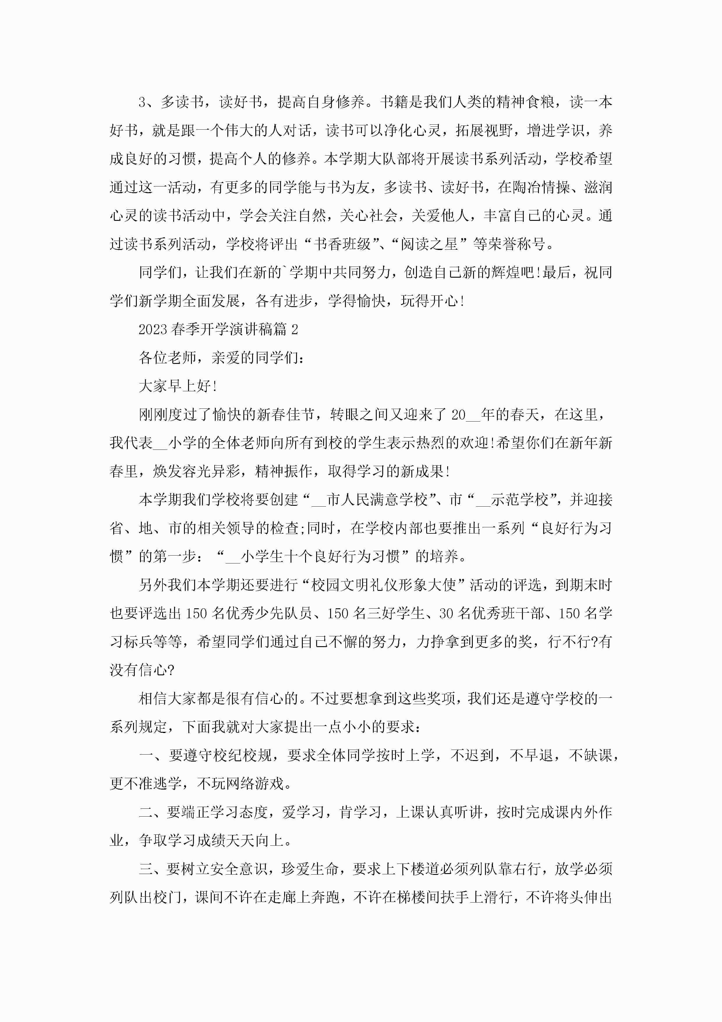 2023春季开学演讲稿最新(5篇)jugei3月23日 01:46发布关注209 2023春季开学演讲稿最新(5篇)此内容为付费资源,请付费后查看¥10.9 单篇文档限时特惠¥15个人会员开通企业会员开通立即下载无需登陆!可直接快捷下载单个模板付费资源© 版权声明THE ENDWord模板# 实用文档# 演讲稿# 经典演讲稿# 实用写作# 2023春季开学演讲稿 如有问题,可点击最底部“联系我们”联系客服 分享QQ空间微博QQ好友海报分享复制链接收藏
