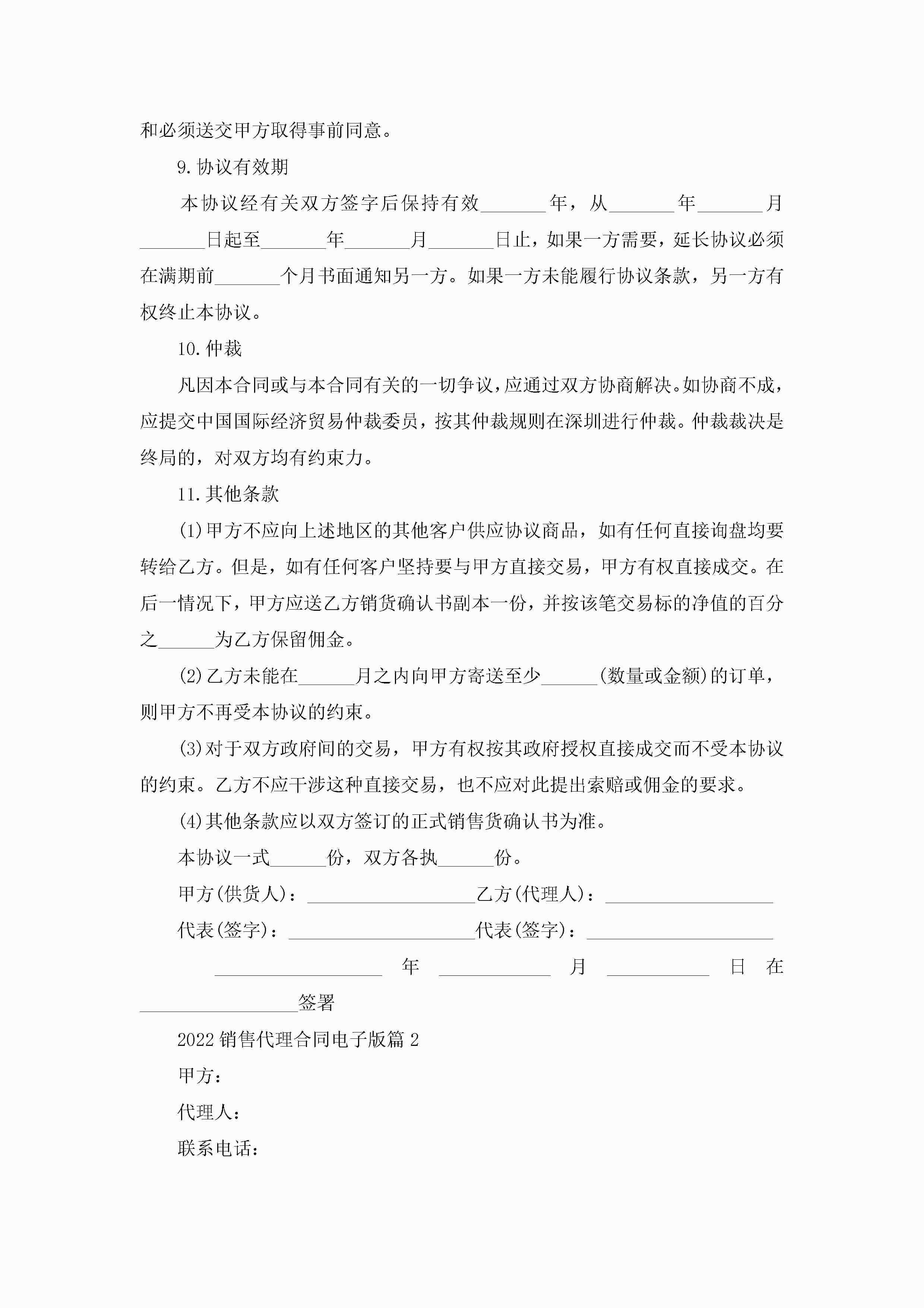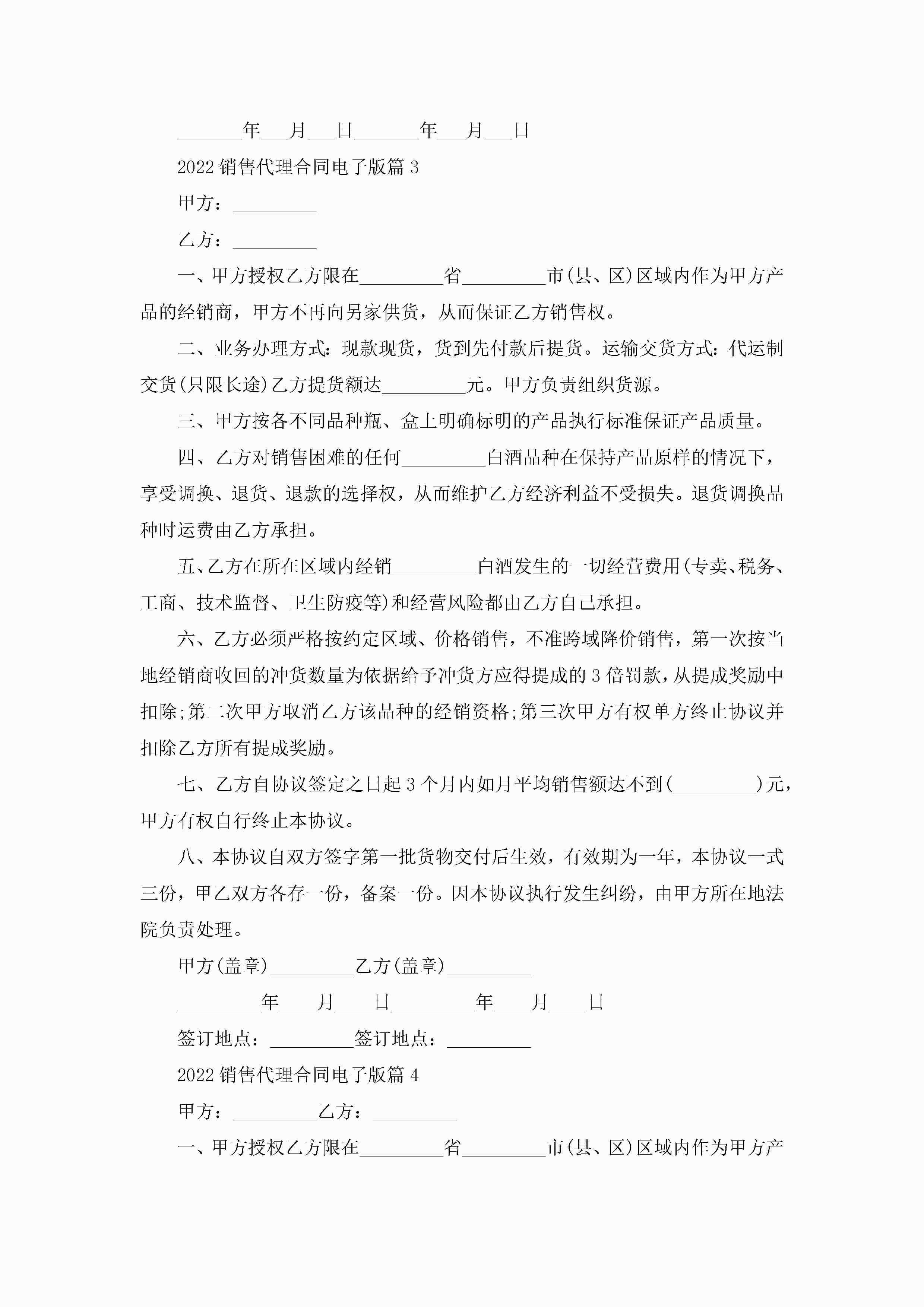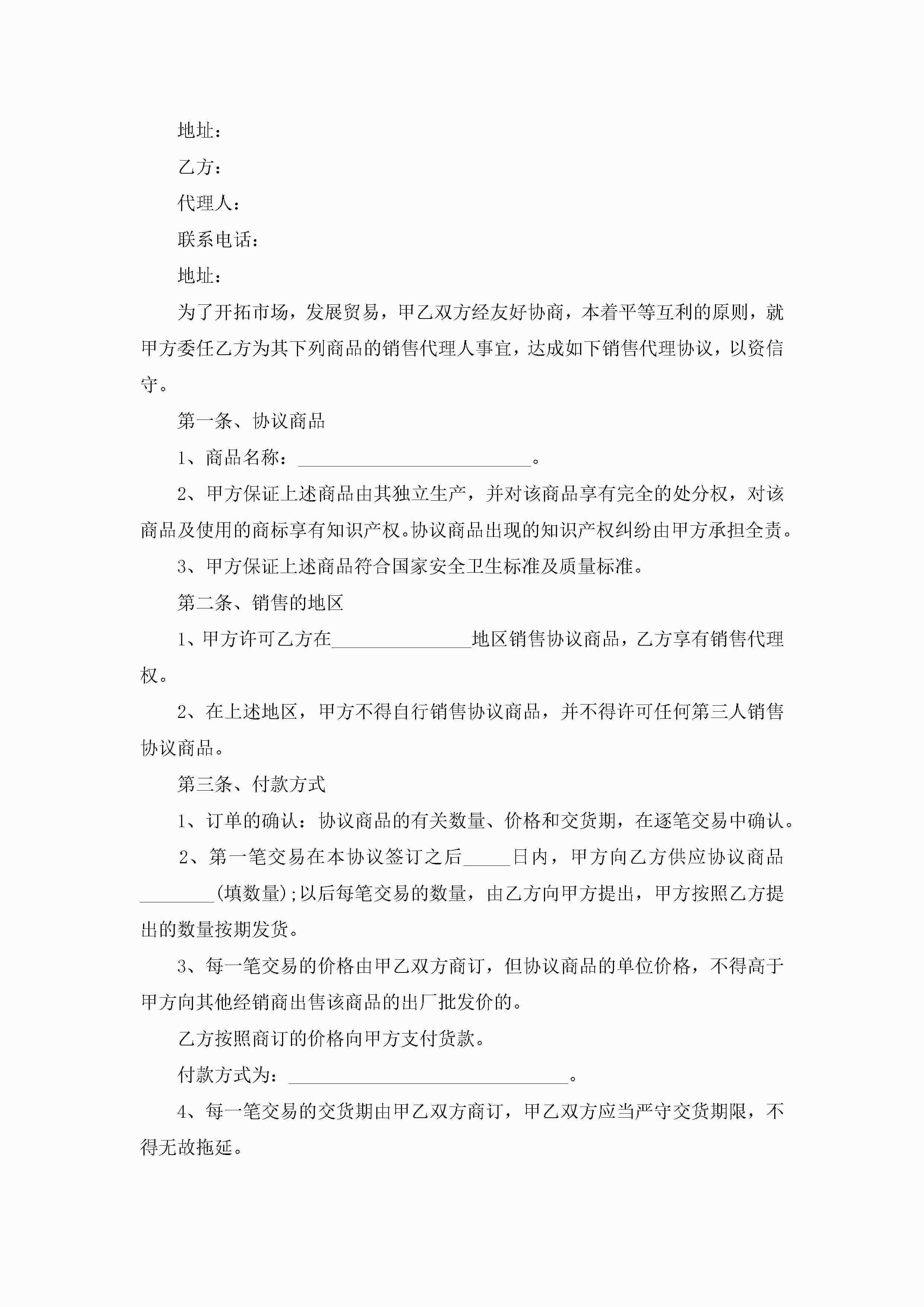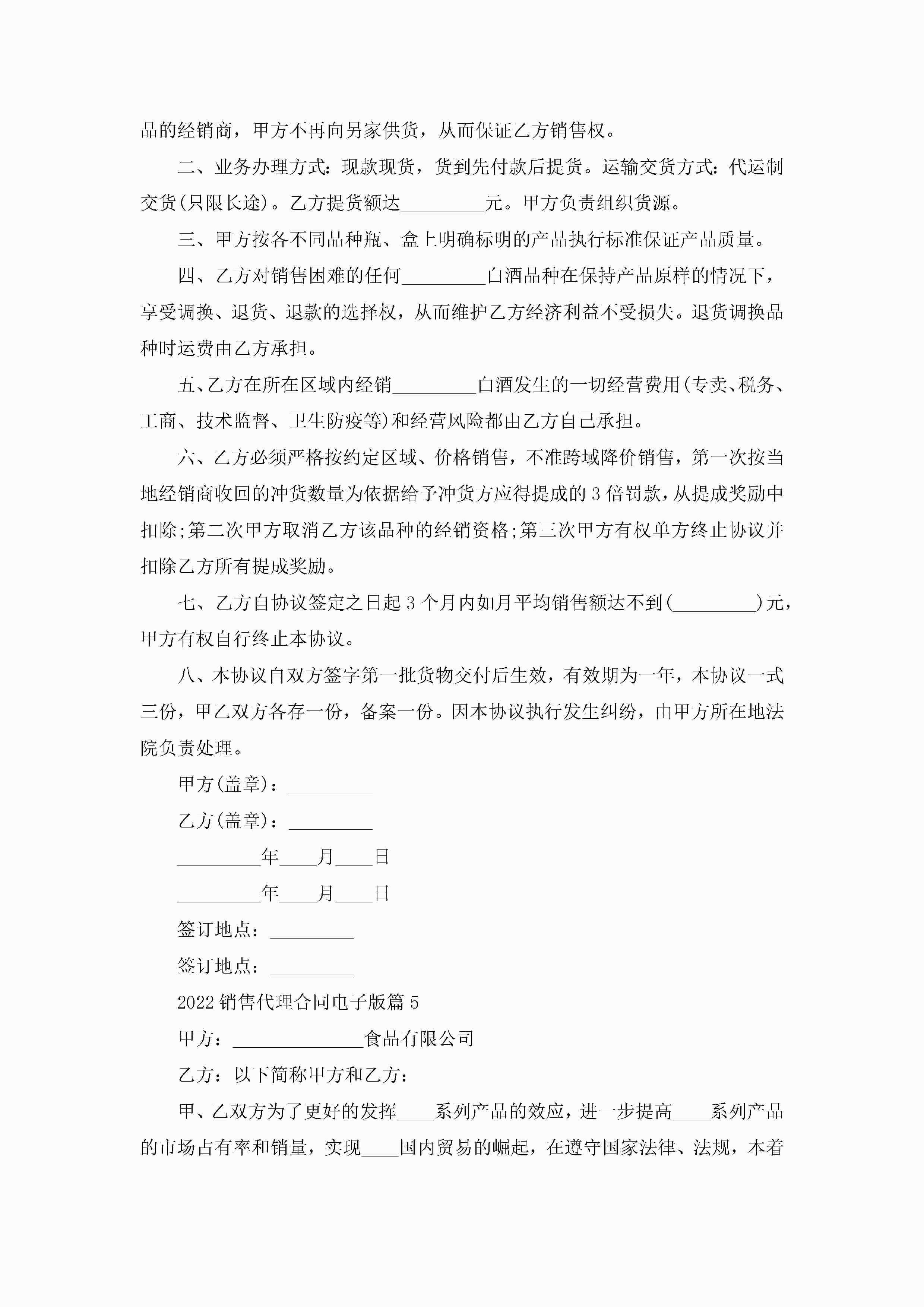 2022销售代理合同范文电子版jugei3月23日 01:46发布关注187 2022销售代理合同范文电子版此内容为付费资源,请付费后查看¥10.9 单篇文档限时特惠¥15个人会员开通企业会员开通立即下载无需登陆!可直接快捷下载单个模板付费资源© 版权声明THE ENDWord模板# 实用文档# 实用模板# 合同模板# 劳动合同 如有问题,可点击最底部“联系我们”联系客服 分享QQ空间微博QQ好友海报分享复制链接收藏