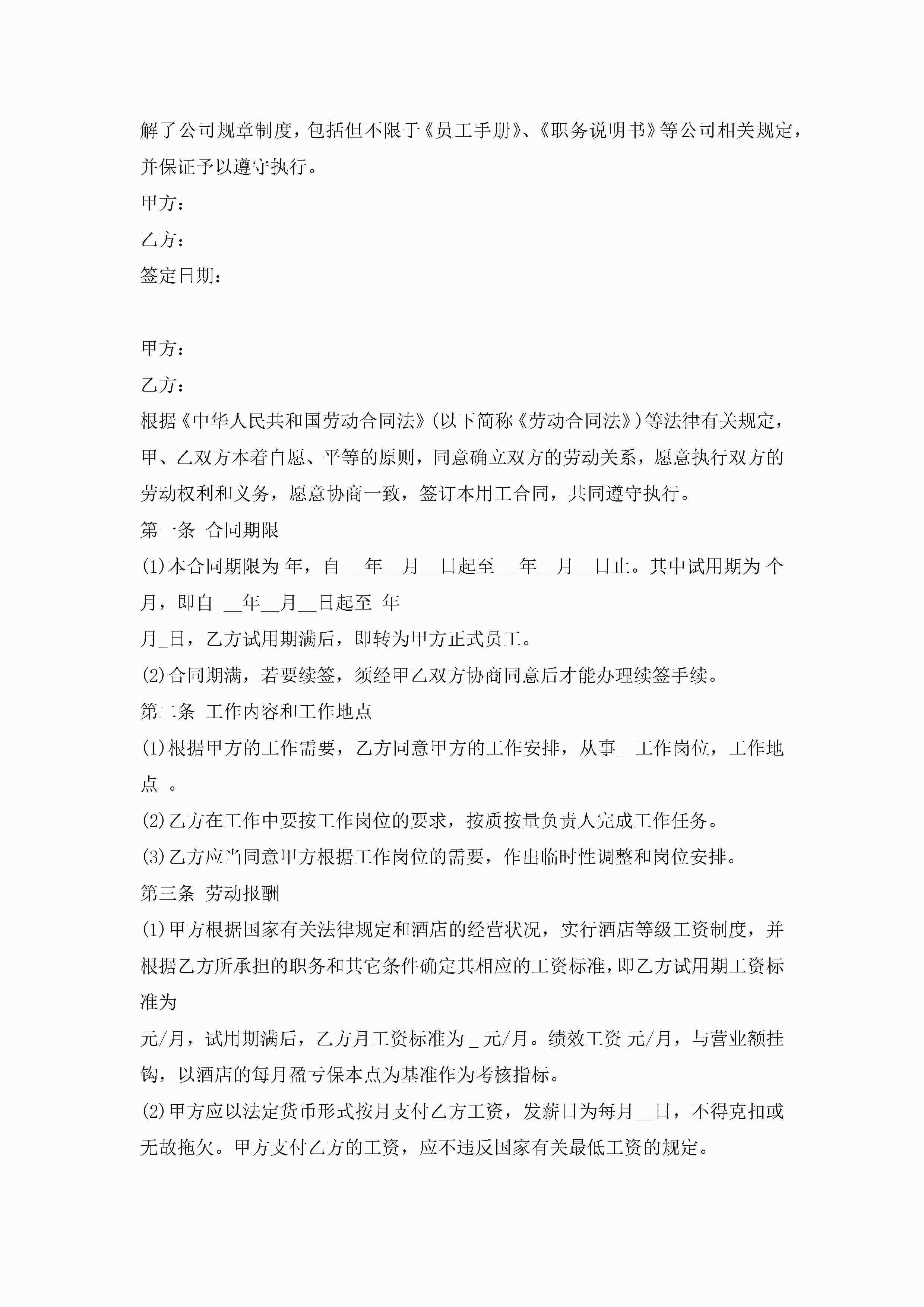 服务员劳动合同优秀范本5篇jugei3月23日 01:46发布关注254 服务员劳动合同优秀范本5篇此内容为付费资源,请付费后查看¥10.9 单篇文档限时特惠¥15个人会员开通企业会员开通立即下载无需登陆!可直接快捷下载单个模板付费资源© 版权声明THE ENDWord模板# 实用文档# 实用模板# 合同模板# 劳动合同 如有问题,可点击最底部“联系我们”联系客服 分享QQ空间微博QQ好友海报分享复制链接收藏