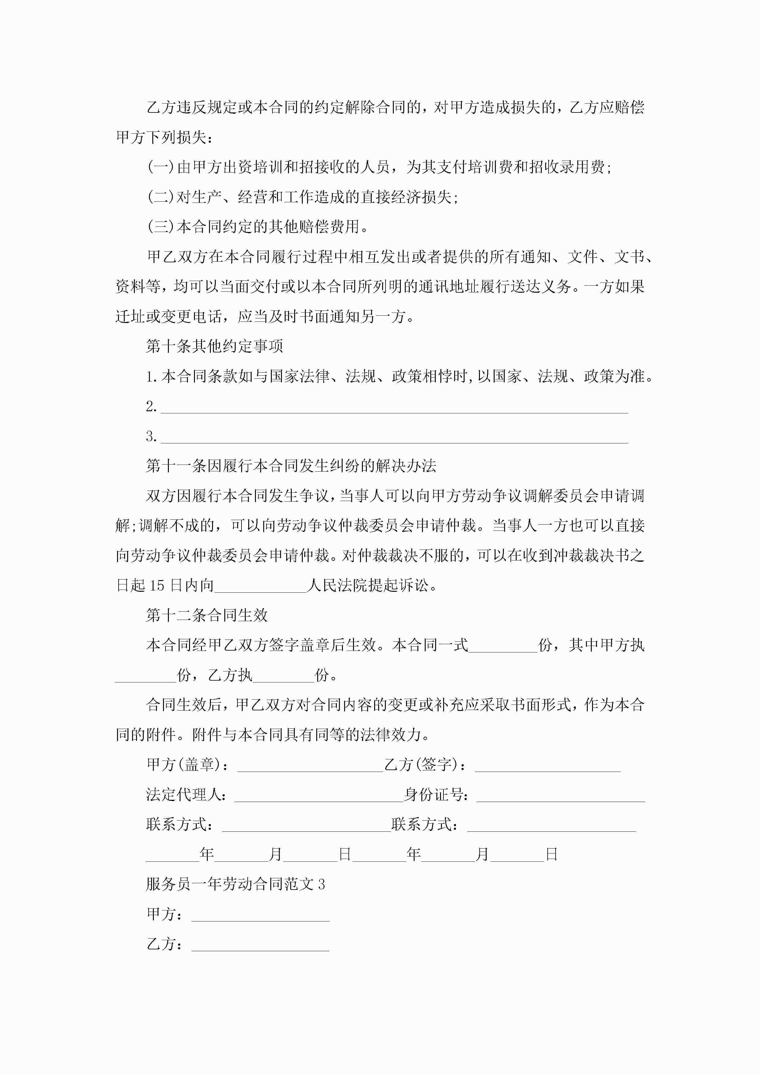 服务员一年劳动合同范文5篇jugei3月23日 01:46发布关注185 服务员一年劳动合同范文5篇此内容为付费资源,请付费后查看¥10.9 单篇文档限时特惠¥15个人会员开通企业会员开通立即下载无需登陆!可直接快捷下载单个模板付费资源© 版权声明THE ENDWord模板# 实用文档# 实用模板# 合同模板# 劳动合同 如有问题,可点击最底部“联系我们”联系客服 分享QQ空间微博QQ好友海报分享复制链接收藏