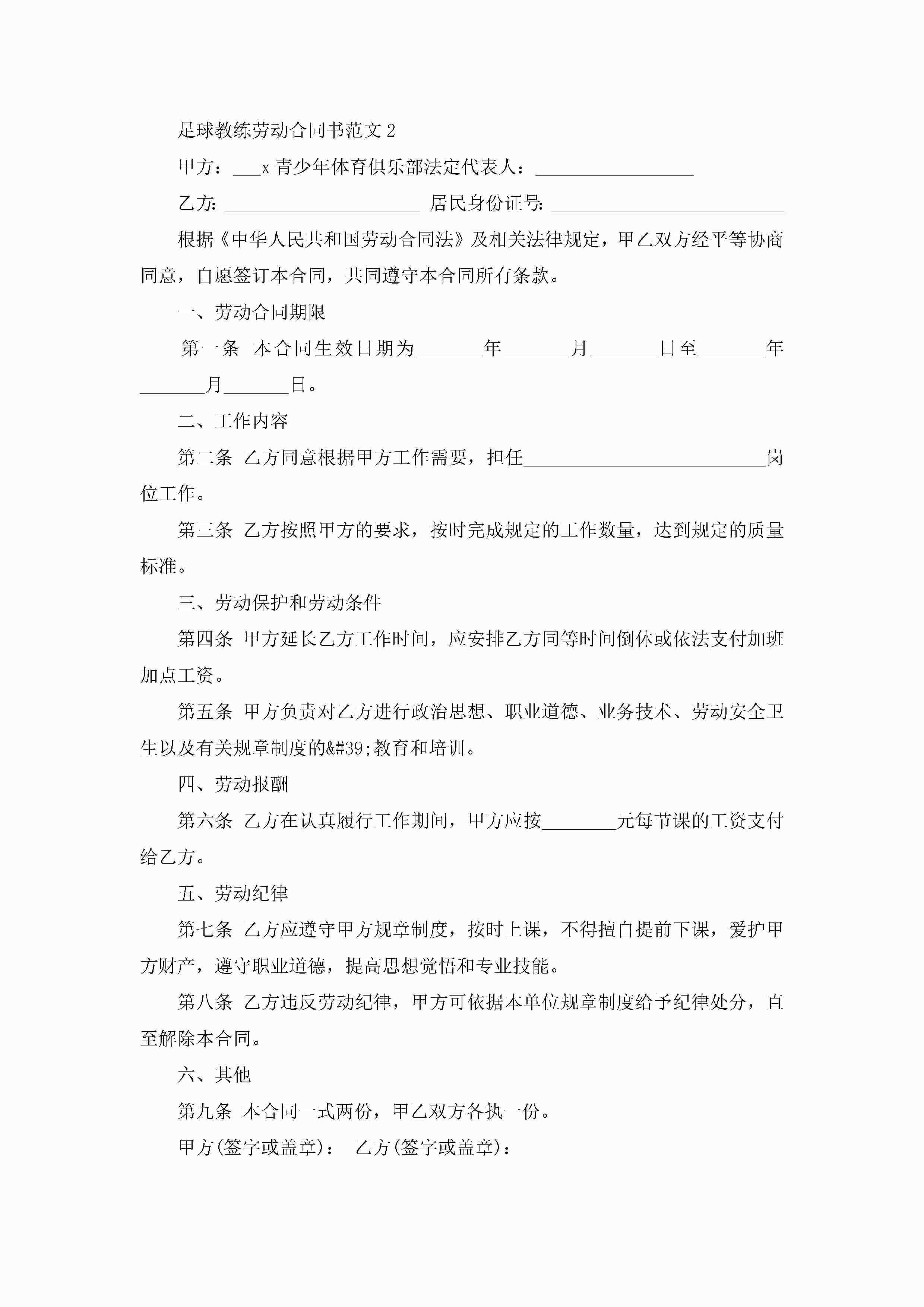 足球教练劳动合同书范文5篇jugei3月23日 01:46发布关注186 足球教练劳动合同书范文5篇此内容为付费资源,请付费后查看¥10.9 单篇文档限时特惠¥15个人会员开通企业会员开通立即下载无需登陆!可直接快捷下载单个模板付费资源© 版权声明THE ENDWord模板# 实用文档# 实用模板# 合同模板# 劳动合同 如有问题,可点击最底部“联系我们”联系客服 分享QQ空间微博QQ好友海报分享复制链接收藏