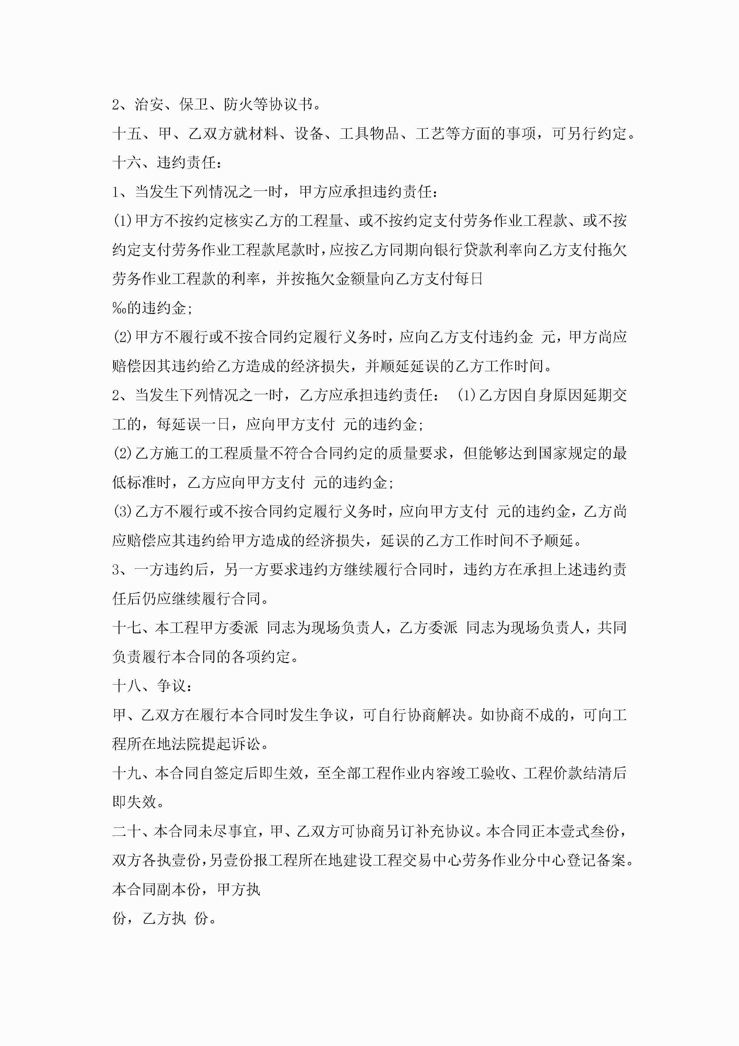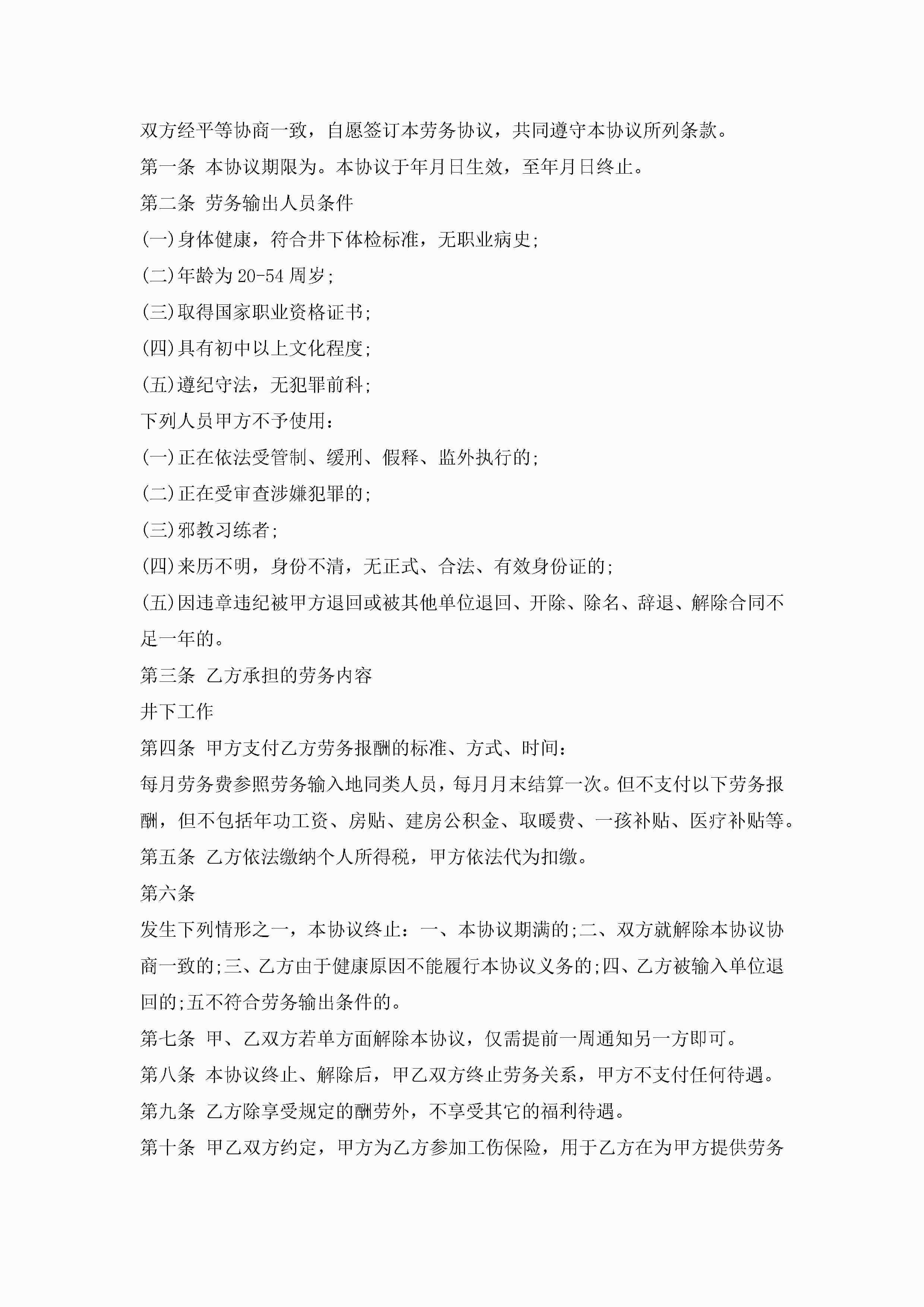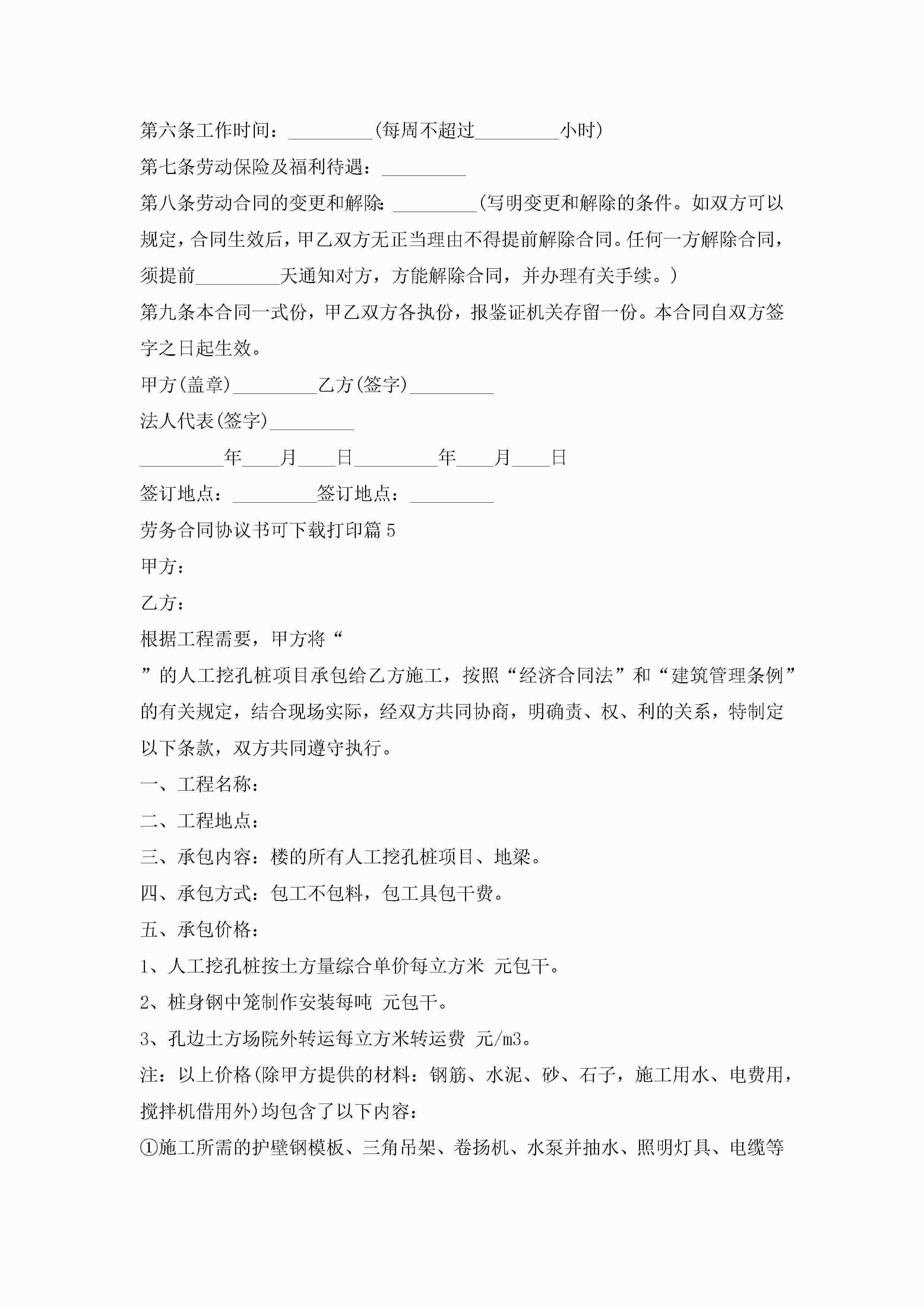 劳务合同协议书可下载打印7篇jugei3月23日 01:46发布关注217 劳务合同协议书可下载打印7篇此内容为付费资源,请付费后查看¥10.9 单篇文档限时特惠¥15个人会员开通企业会员开通立即下载无需登陆!可直接快捷下载单个模板付费资源© 版权声明THE ENDWord模板# 实用文档# 实用模板# 合同模板# 劳动合同 如有问题,可点击最底部“联系我们”联系客服 分享QQ空间微博QQ好友海报分享复制链接收藏