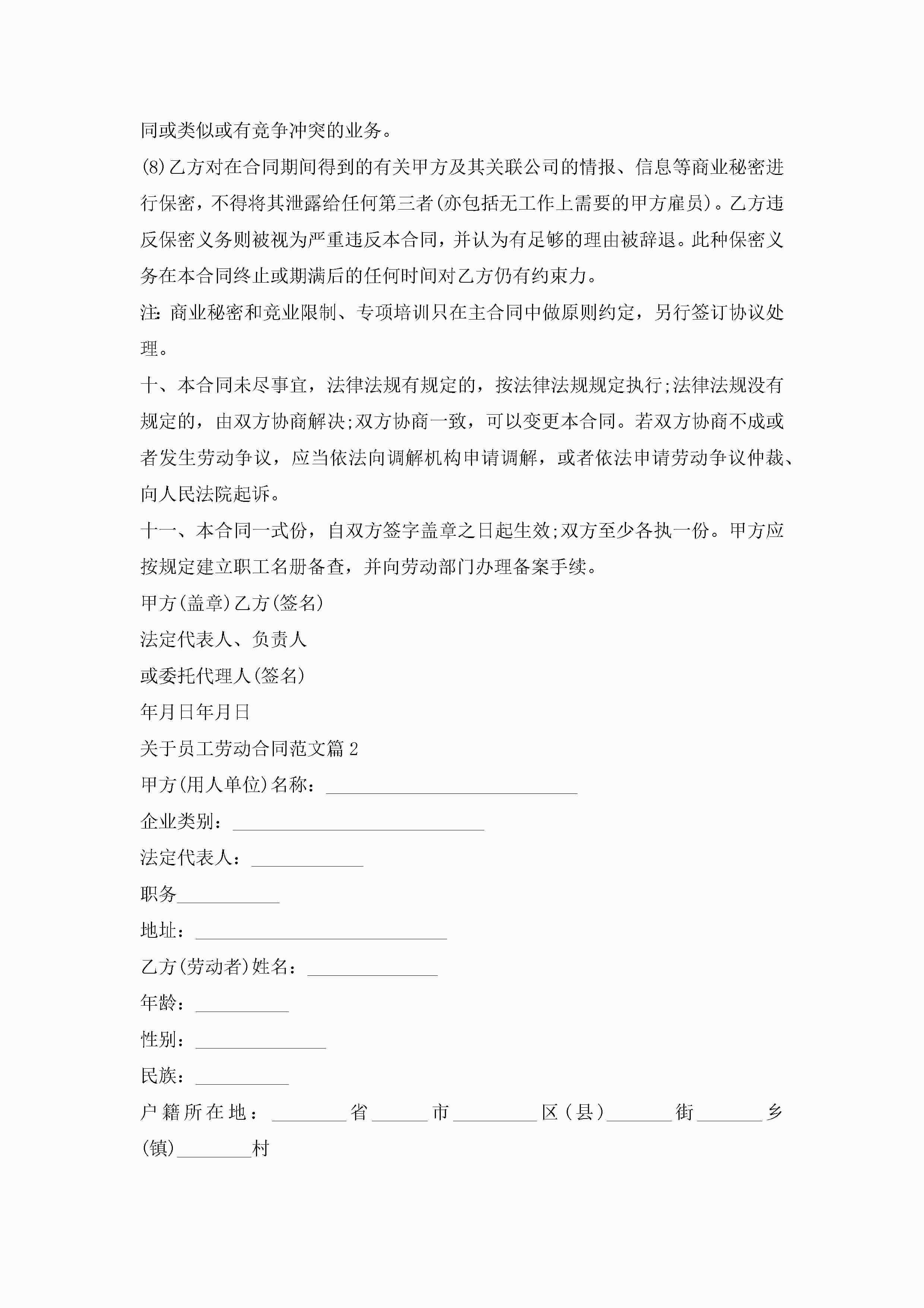 关于员工劳动合同最新范文jugei3月23日 01:46发布关注185 关于员工劳动合同最新范文此内容为付费资源,请付费后查看¥10.9 单篇文档限时特惠¥15个人会员开通企业会员开通立即下载无需登陆!可直接快捷下载单个模板付费资源© 版权声明THE ENDWord模板# 实用文档# 实用模板# 合同模板# 劳动合同 如有问题,可点击最底部“联系我们”联系客服 分享QQ空间微博QQ好友海报分享复制链接收藏