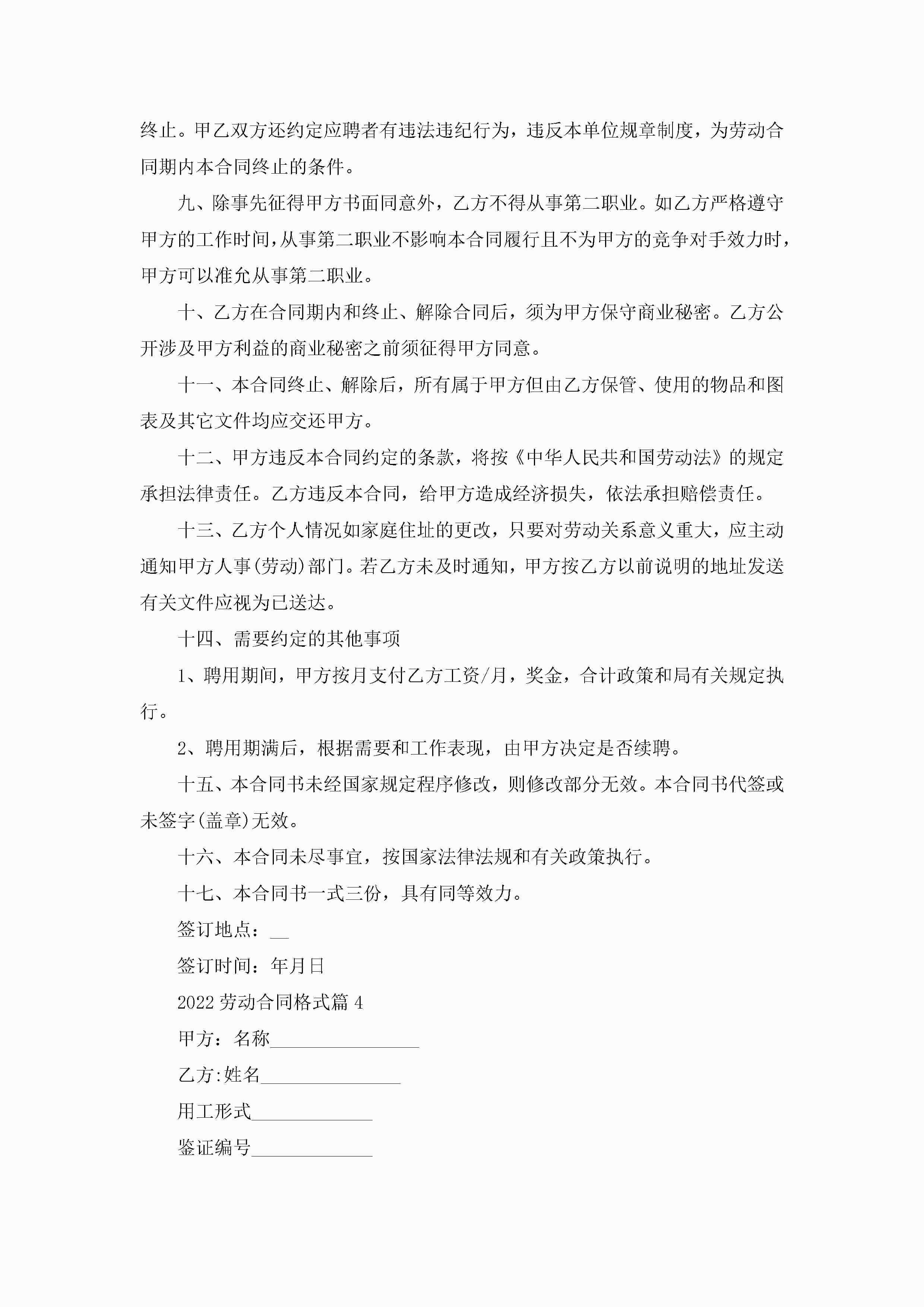 2022劳动合同最新格式jugei3月23日 01:46发布关注190 2022劳动合同最新格式此内容为付费资源,请付费后查看¥10.9 单篇文档限时特惠¥15个人会员开通企业会员开通立即下载无需登陆!可直接快捷下载单个模板付费资源© 版权声明THE ENDWord模板# 实用文档# 实用模板# 合同模板# 劳动合同 如有问题,可点击最底部“联系我们”联系客服 分享QQ空间微博QQ好友海报分享复制链接收藏