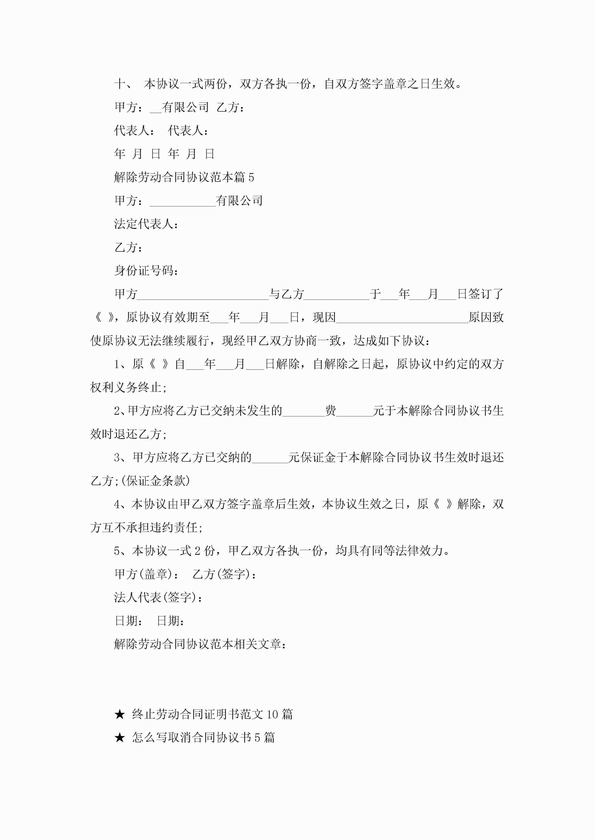 解除劳动合同协议范本5篇jugei3月23日 01:46发布关注297 解除劳动合同协议范本5篇此内容为付费资源,请付费后查看¥10.9 单篇文档限时特惠¥15个人会员开通企业会员开通立即下载无需登陆!可直接快捷下载单个模板付费资源© 版权声明THE ENDWord模板# 实用文档# 合同模板# 劳动合同# 解除劳动合同协议范本 如有问题,可点击最底部“联系我们”联系客服 分享QQ空间微博QQ好友海报分享复制链接收藏