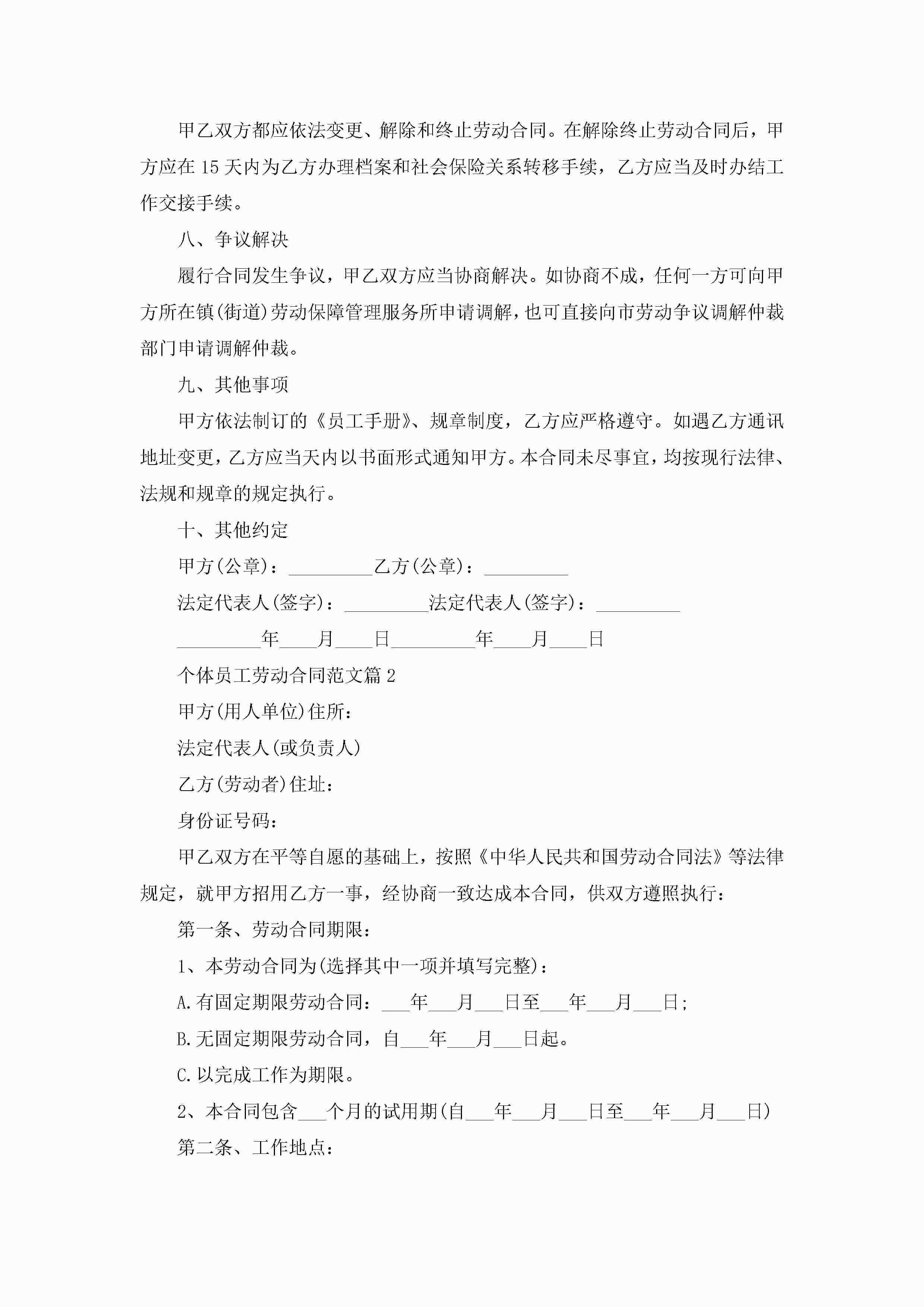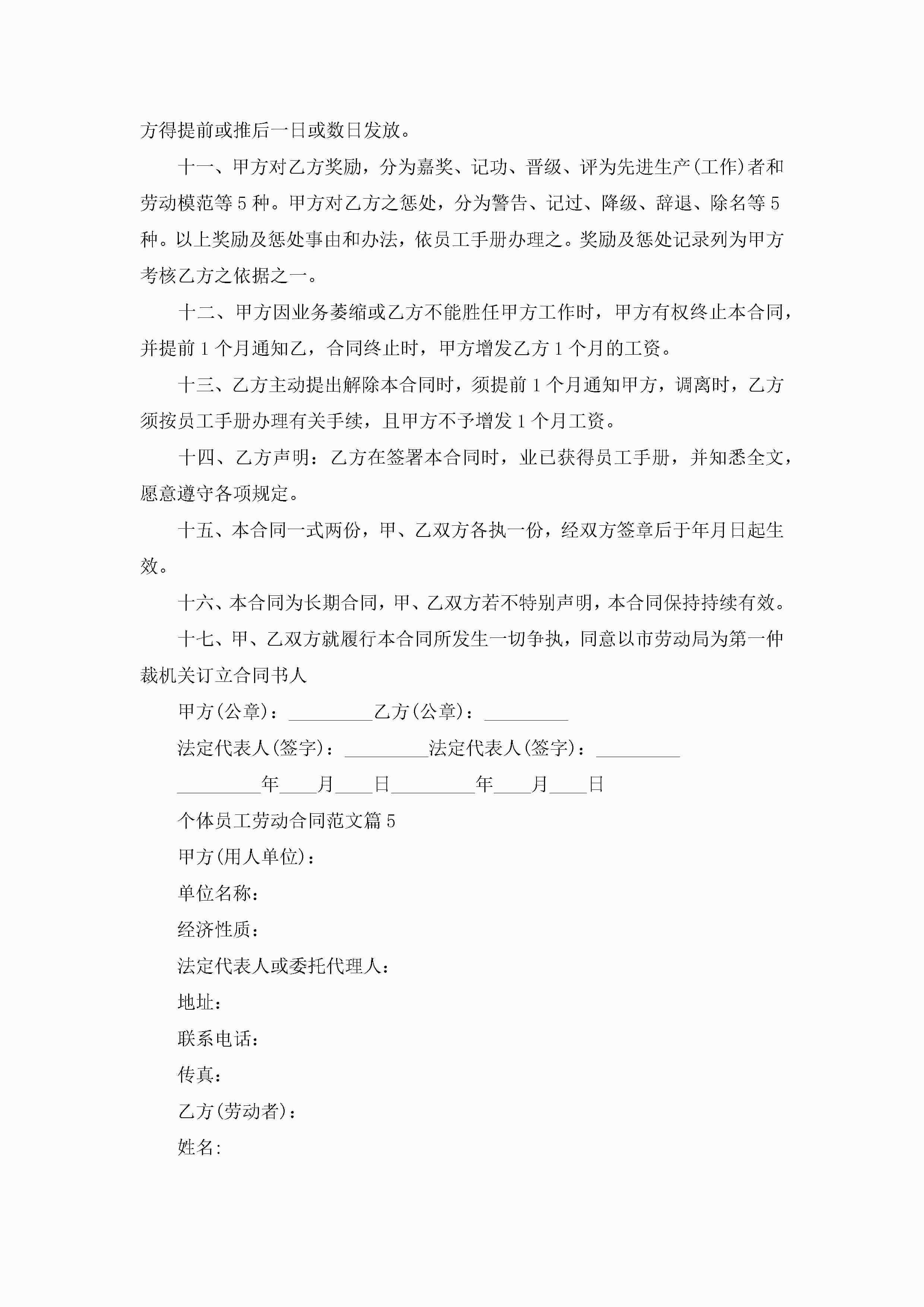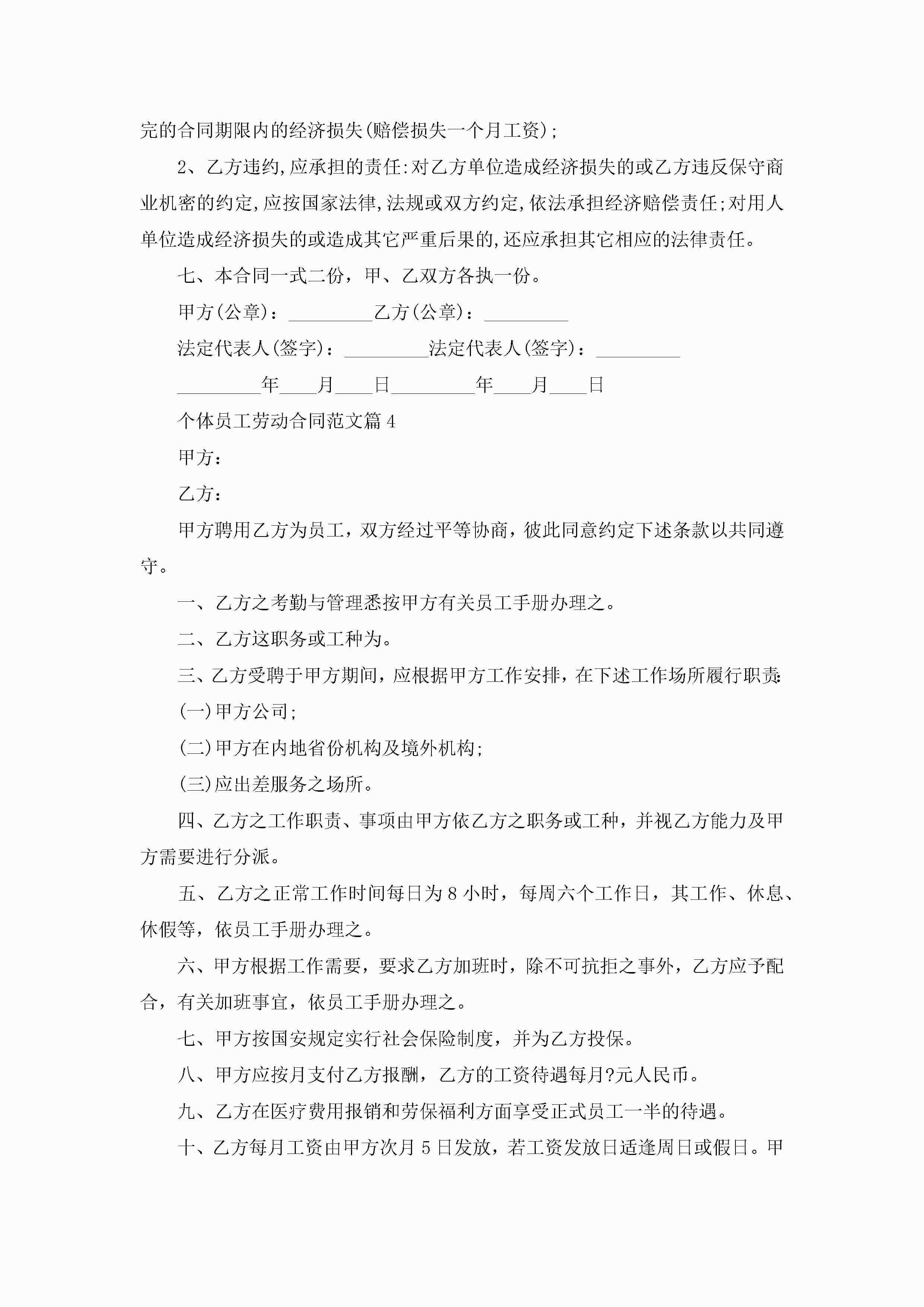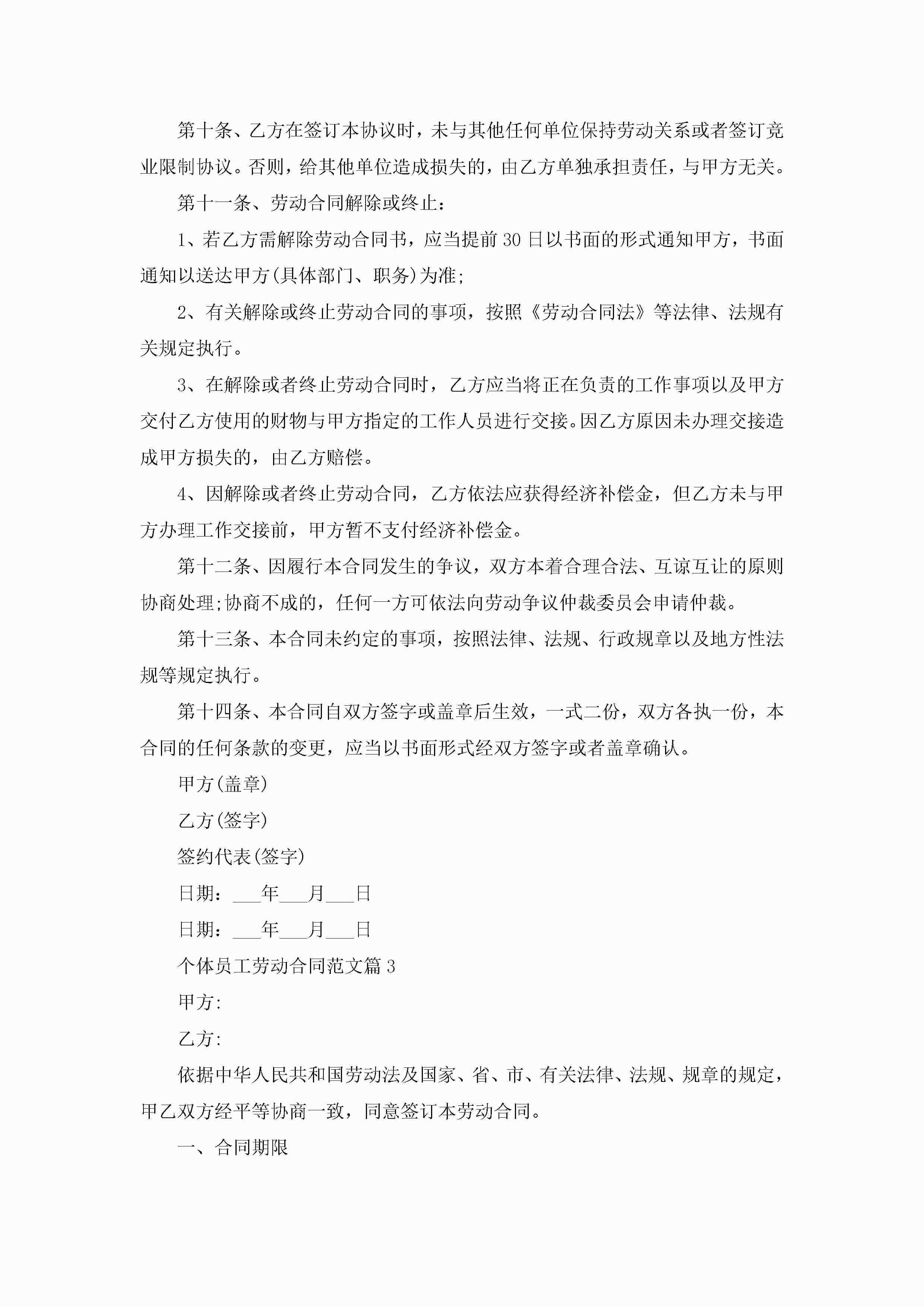 个体员工劳动合同范文模板jugei3月23日 01:46发布关注289 个体员工劳动合同范文模板此内容为付费资源,请付费后查看¥10.9 单篇文档限时特惠¥15个人会员开通企业会员开通立即下载无需登陆!可直接快捷下载单个模板付费资源© 版权声明THE ENDWord模板# 实用文档# 实用模板# 合同模板# 劳动合同 如有问题,可点击最底部“联系我们”联系客服 分享QQ空间微博QQ好友海报分享复制链接收藏