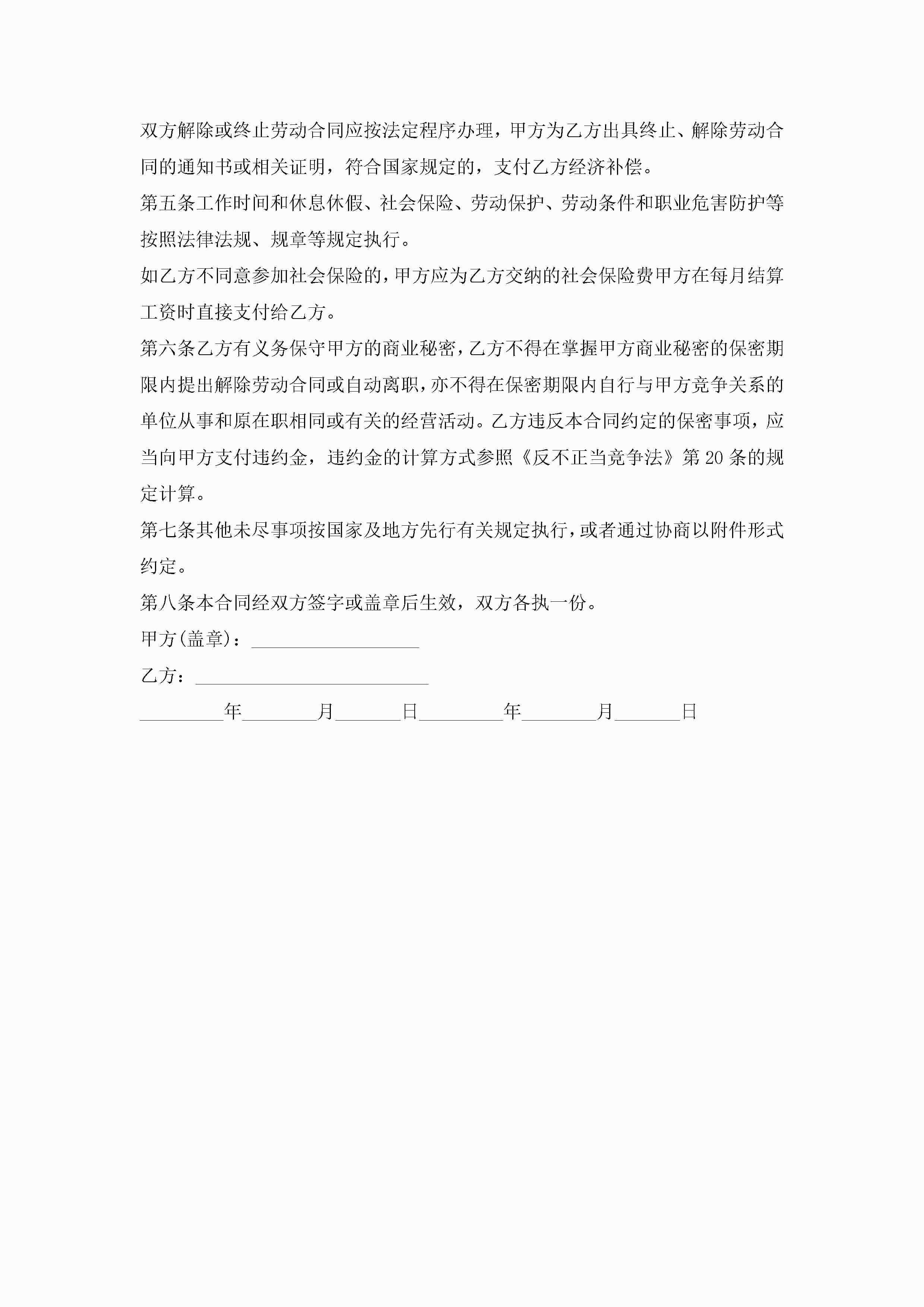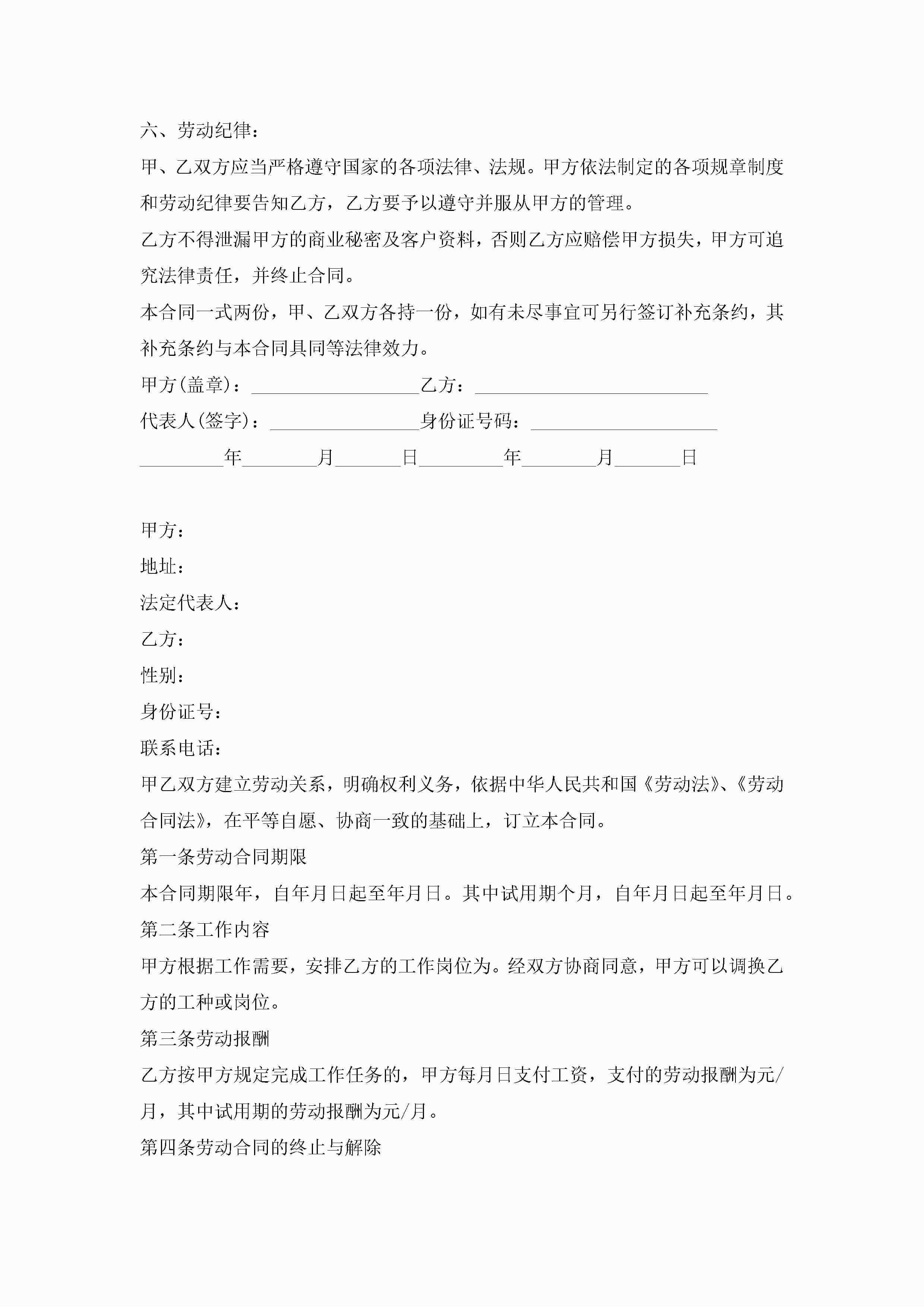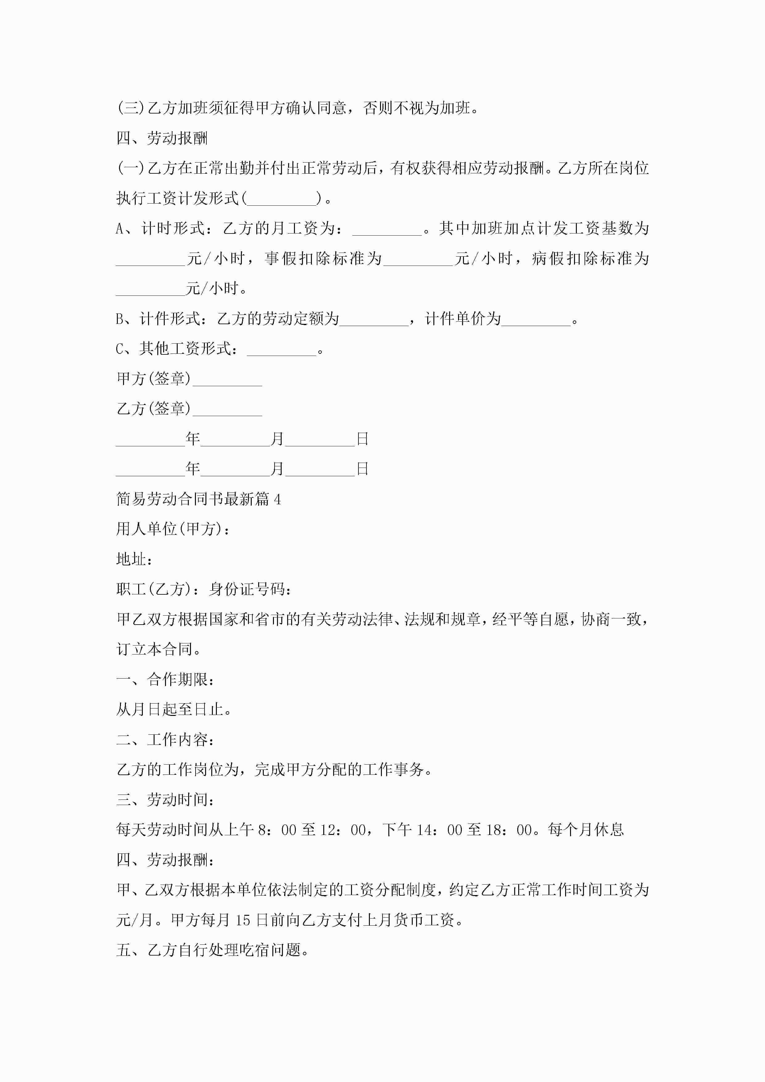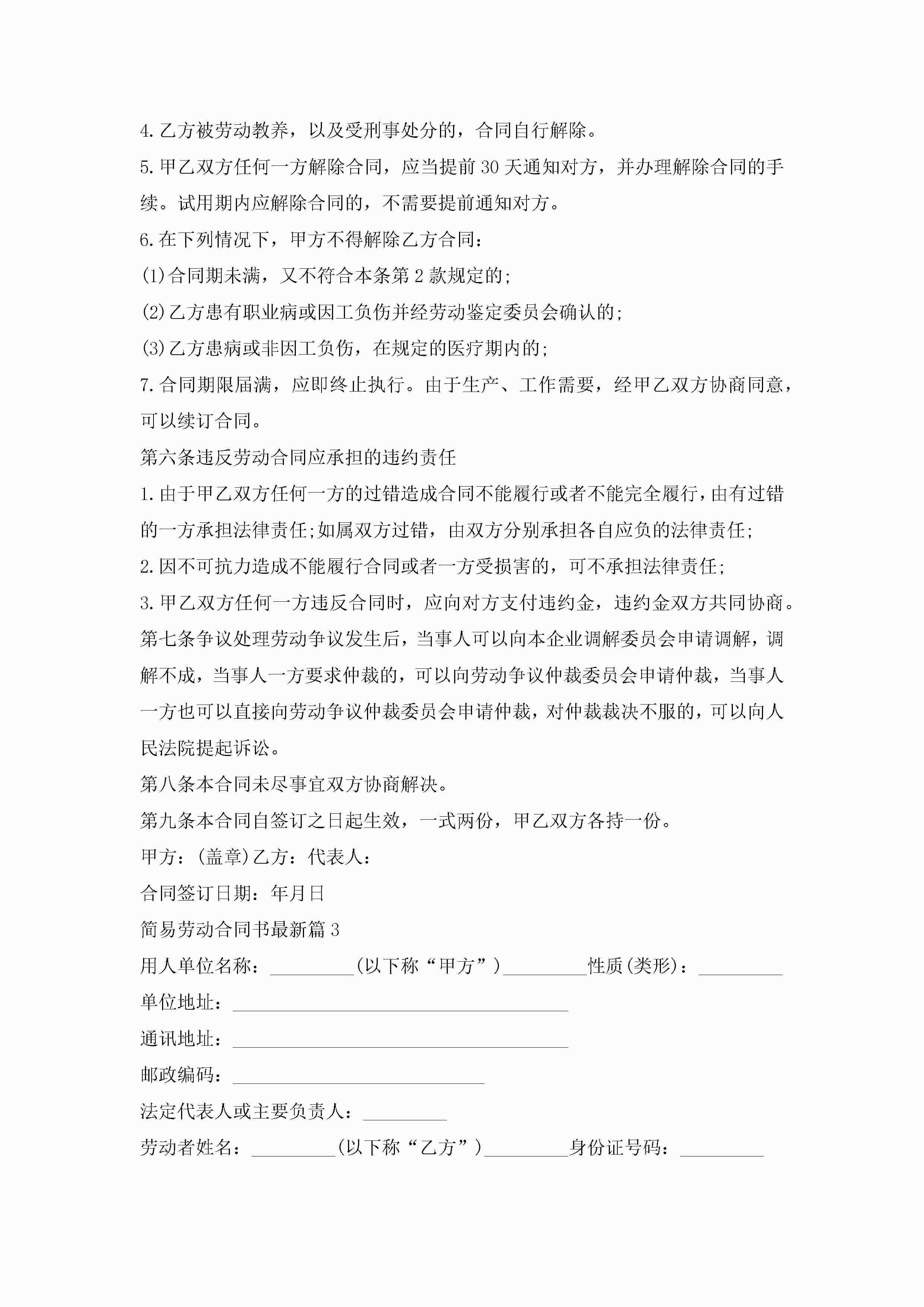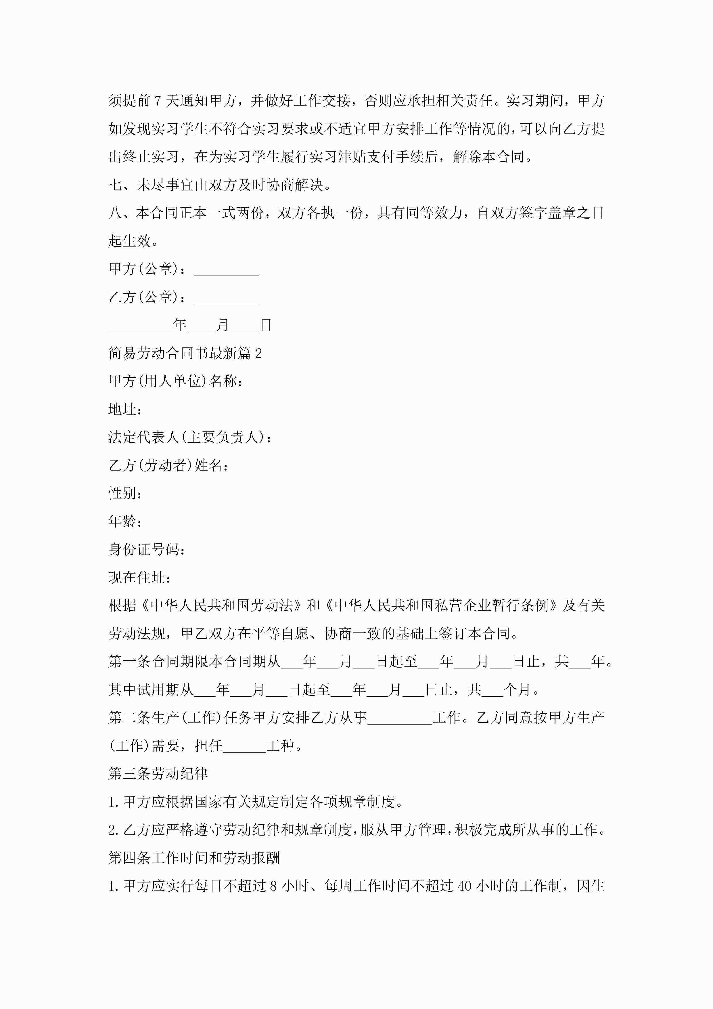 简易劳动合同书最新模板jugei3月23日 01:46发布关注189 简易劳动合同书最新模板此内容为付费资源,请付费后查看¥10.9 单篇文档限时特惠¥15个人会员开通企业会员开通立即下载无需登陆!可直接快捷下载单个模板付费资源© 版权声明THE ENDWord模板# 实用文档# 实用模板# 合同模板# 劳动合同 如有问题,可点击最底部“联系我们”联系客服 分享QQ空间微博QQ好友海报分享复制链接收藏