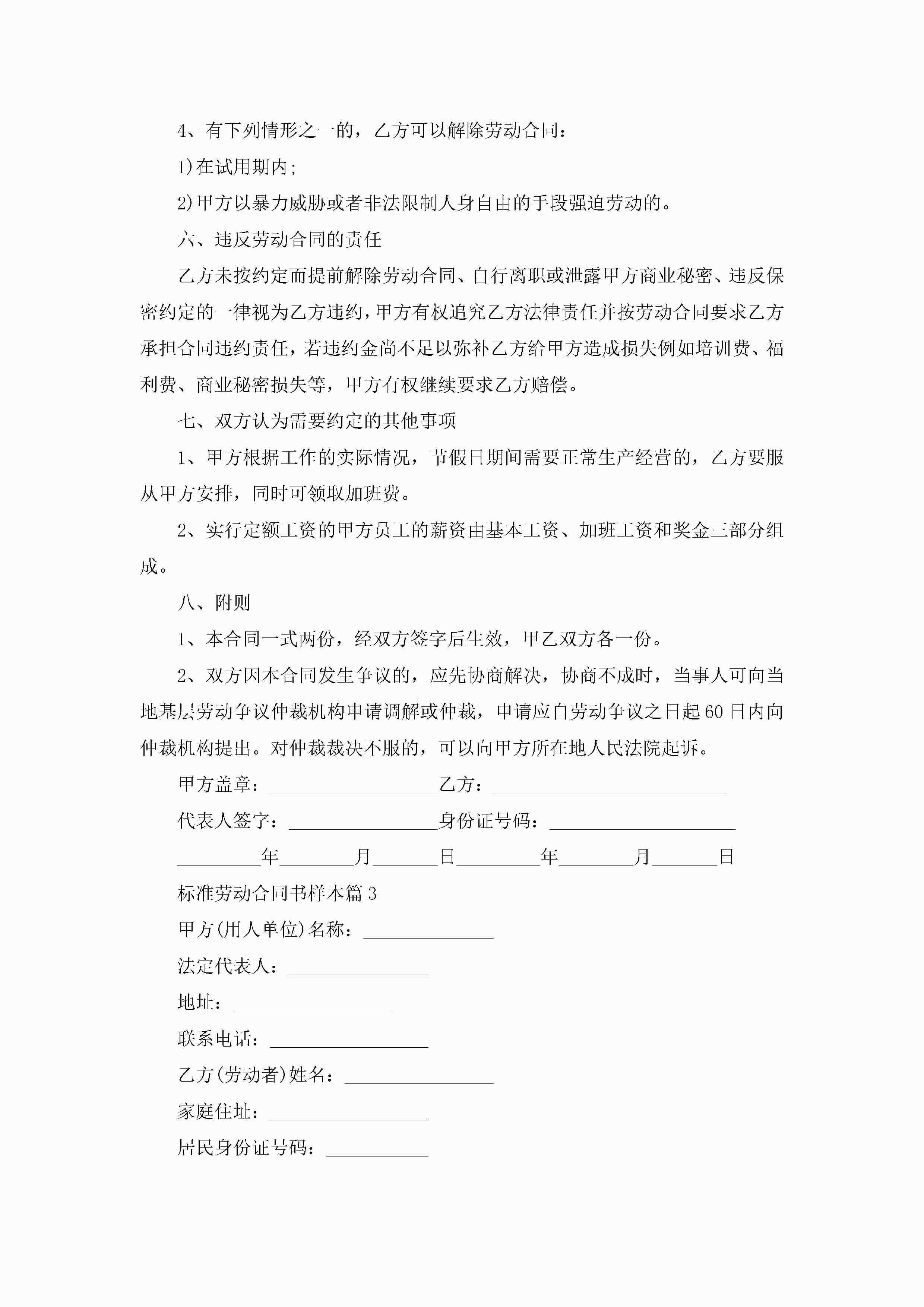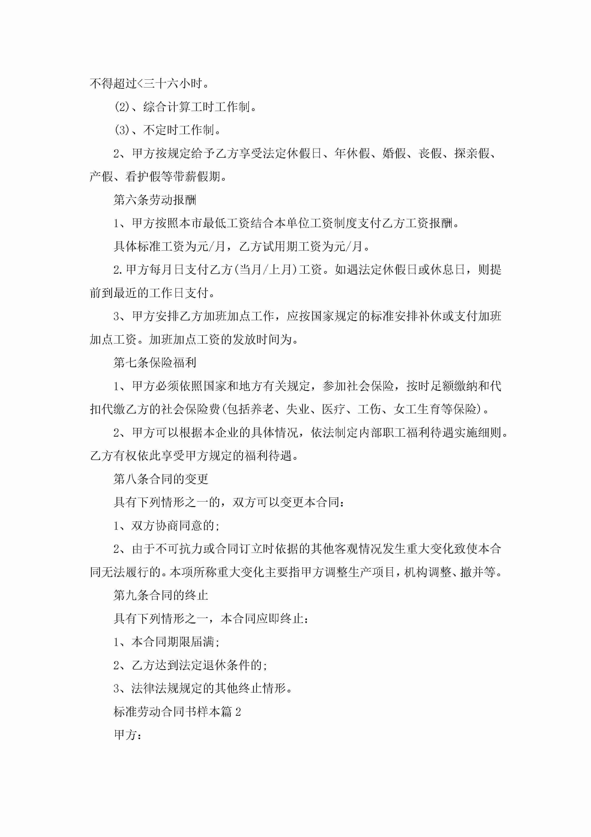 标准劳动合同书最新样本jugei3月23日 01:46发布关注281 标准劳动合同书最新样本此内容为付费资源,请付费后查看¥10.9 单篇文档限时特惠¥15个人会员开通企业会员开通立即下载无需登陆!可直接快捷下载单个模板付费资源© 版权声明THE ENDWord模板# 实用文档# 实用模板# 合同模板# 劳动合同 如有问题,可点击最底部“联系我们”联系客服 分享QQ空间微博QQ好友海报分享复制链接收藏