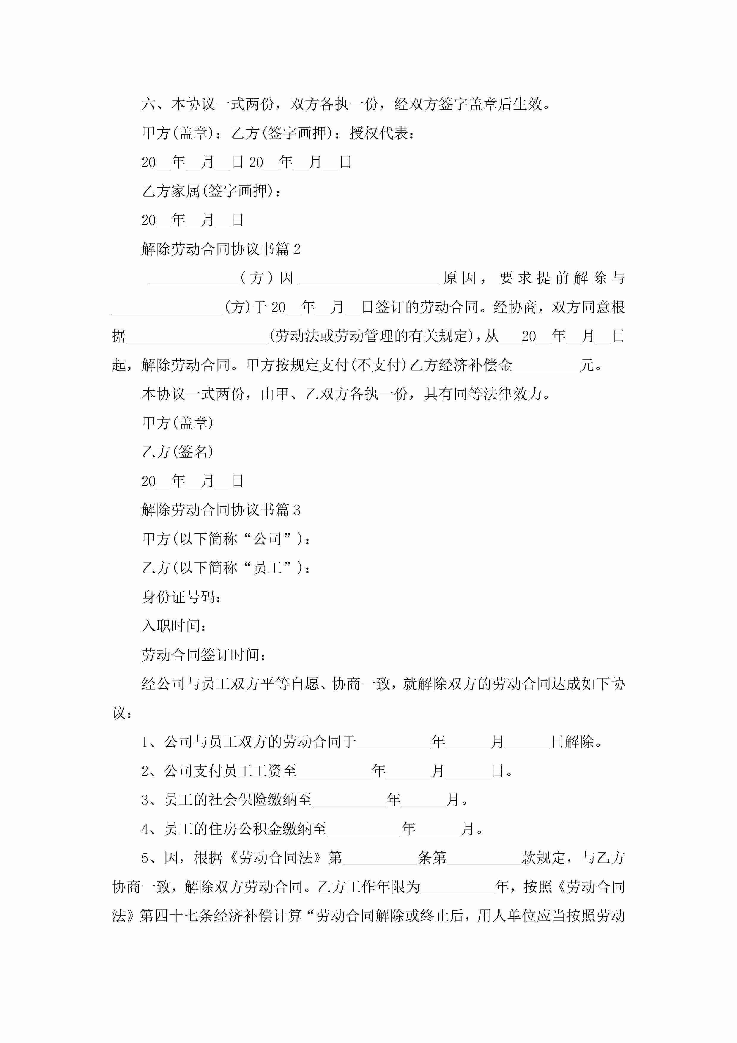 解除劳动合同协议书范文jugei3月23日 01:46发布关注256 解除劳动合同协议书范文此内容为付费资源,请付费后查看¥10.9 单篇文档限时特惠¥15个人会员开通企业会员开通立即下载无需登陆!可直接快捷下载单个模板付费资源© 版权声明THE ENDWord模板# 实用文档# 实用模板# 合同模板# 劳动合同 如有问题,可点击最底部“联系我们”联系客服 分享QQ空间微博QQ好友海报分享复制链接收藏