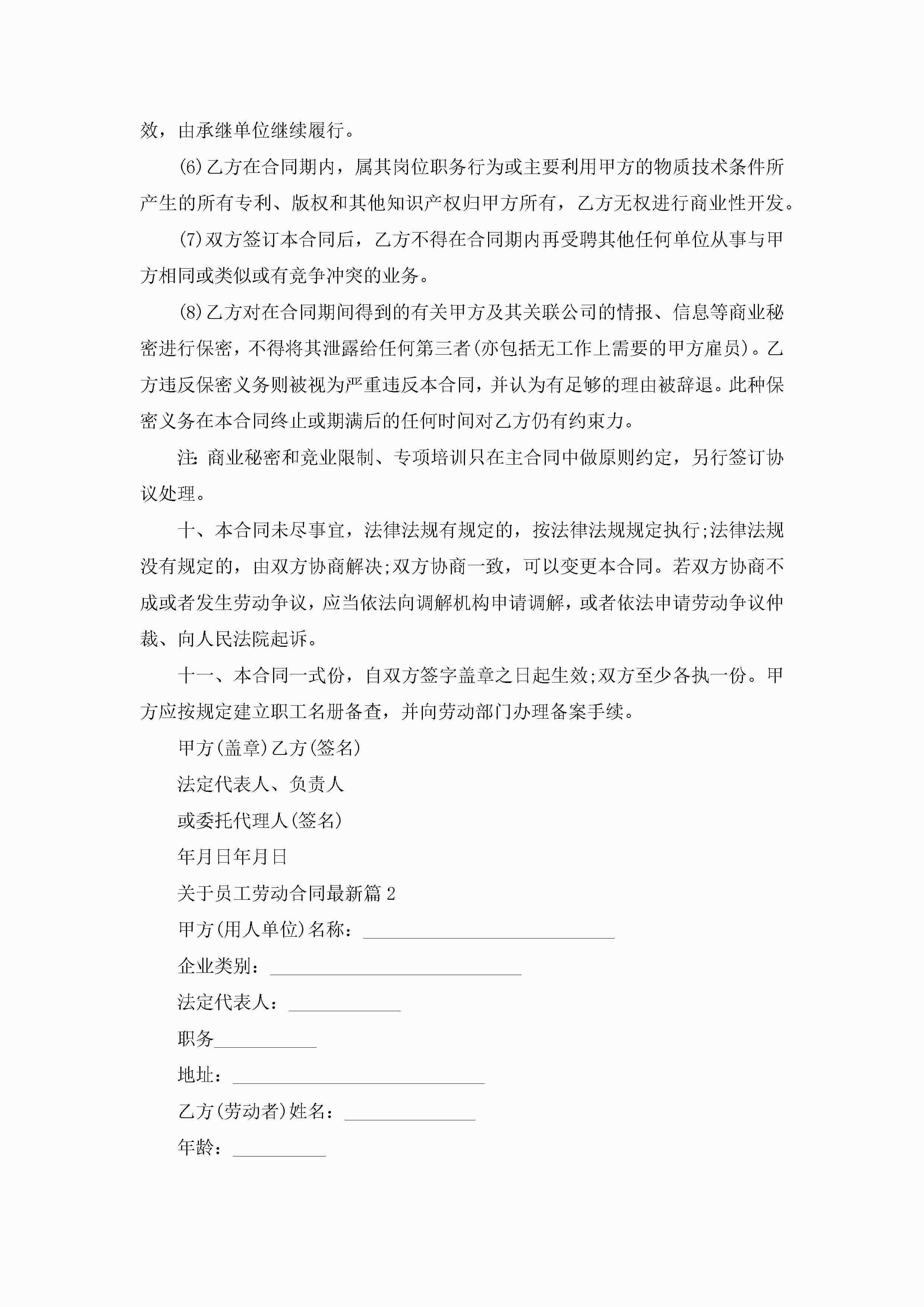 关于员工劳动合同最新模板jugei3月23日 01:46发布关注274 关于员工劳动合同最新模板此内容为付费资源,请付费后查看¥10.9 单篇文档限时特惠¥15个人会员开通企业会员开通立即下载无需登陆!可直接快捷下载单个模板付费资源© 版权声明THE ENDWord模板# 实用文档# 实用模板# 合同模板# 劳动合同 如有问题,可点击最底部“联系我们”联系客服 分享QQ空间微博QQ好友海报分享复制链接收藏
