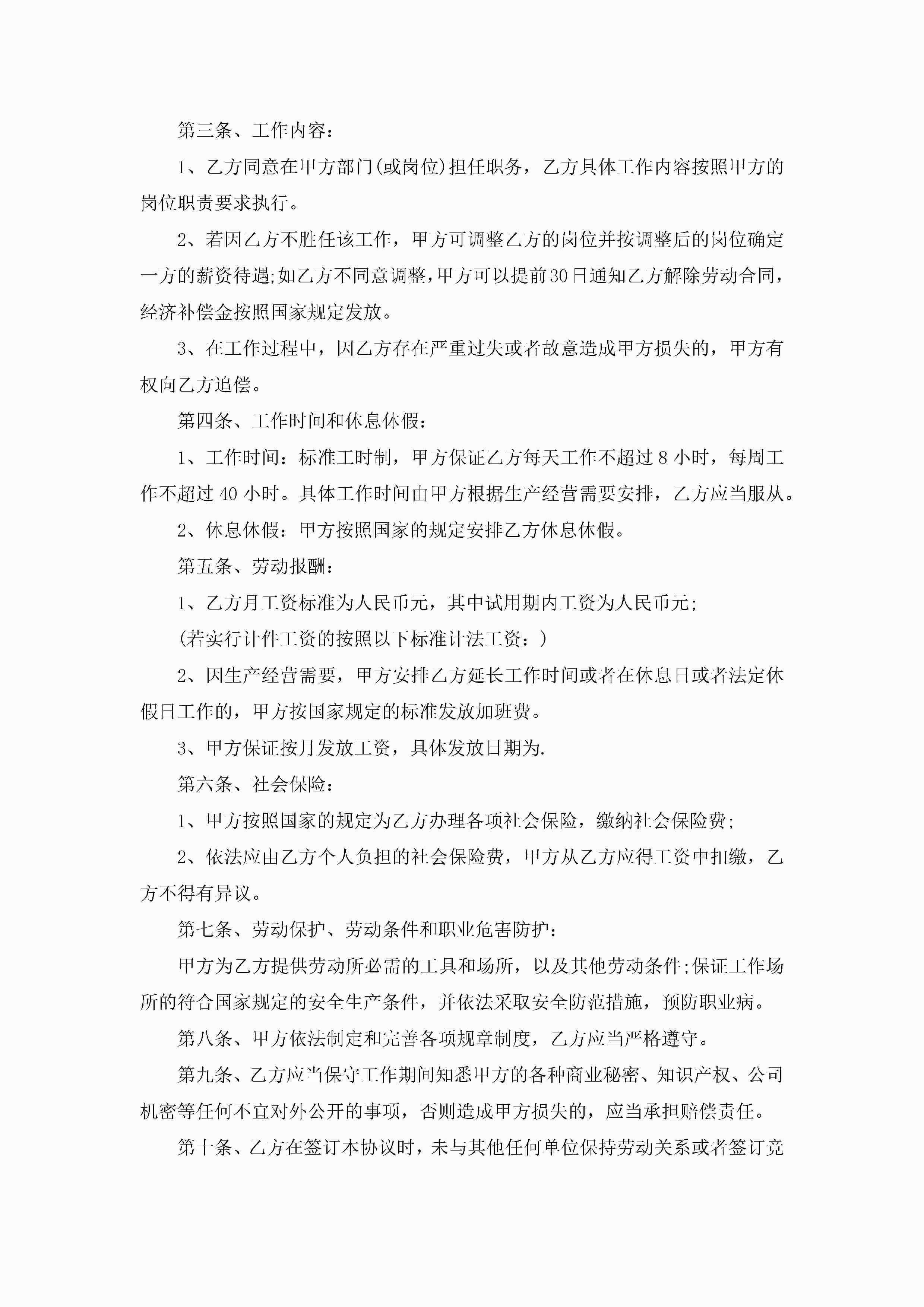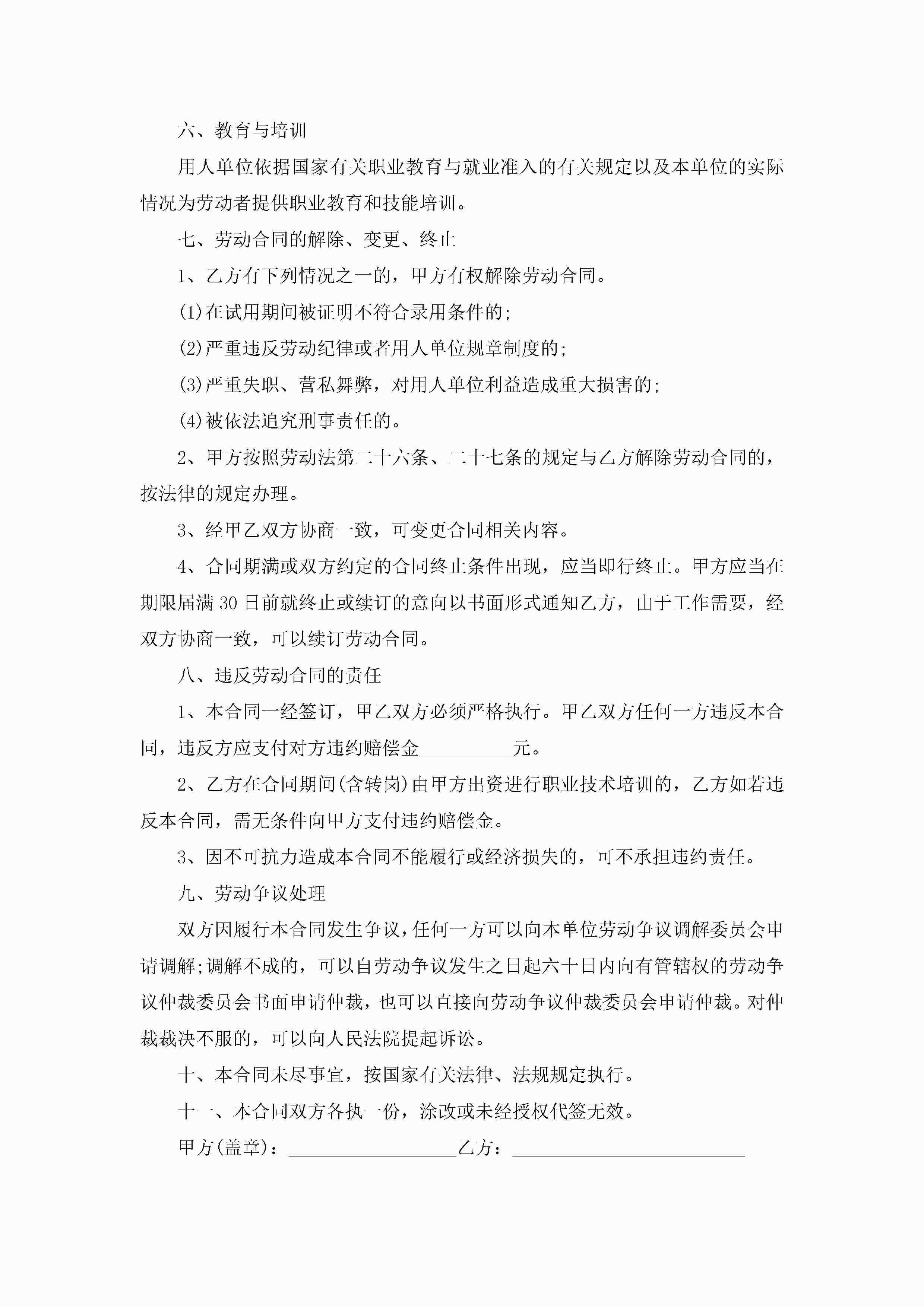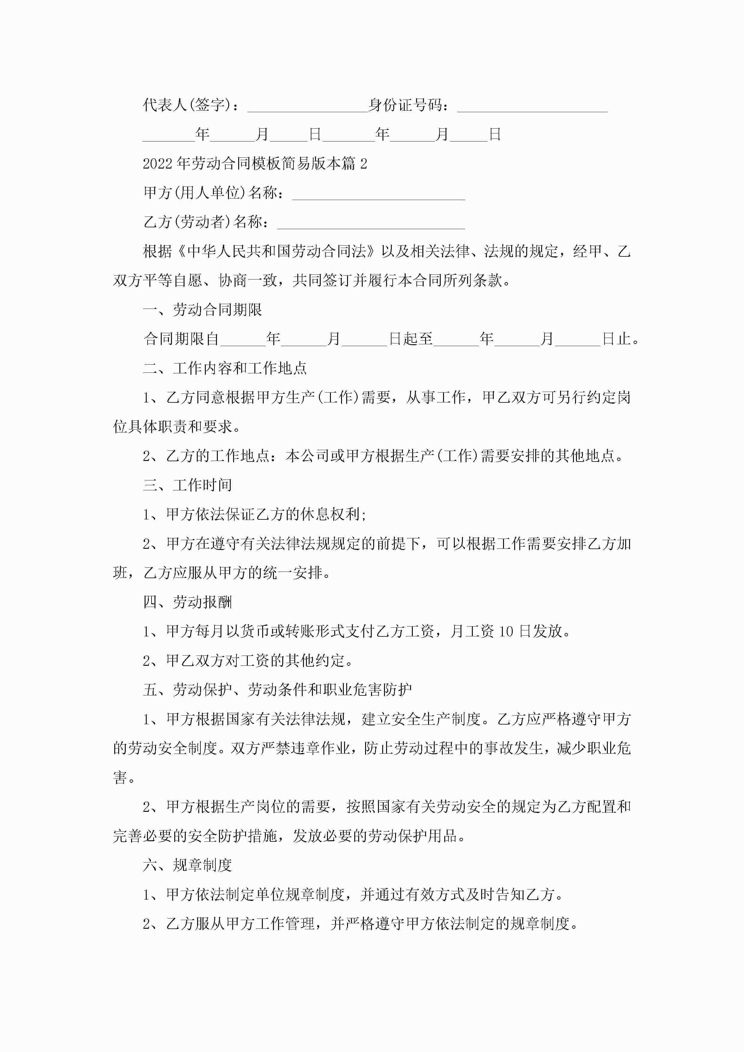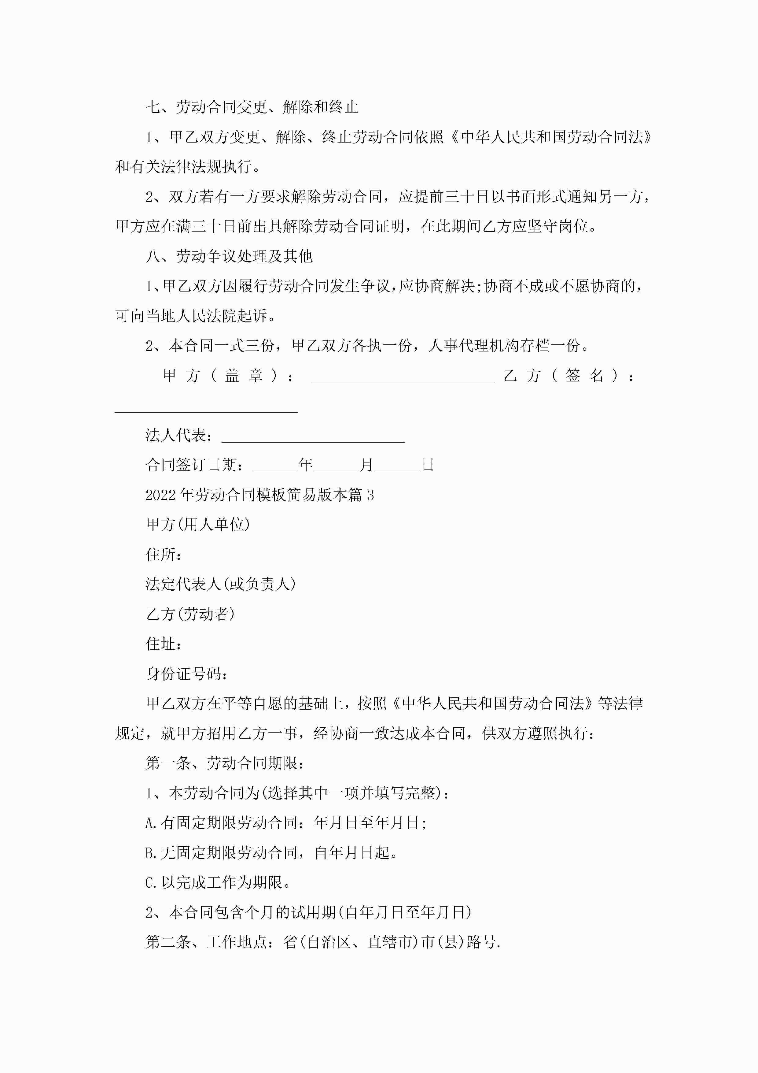 2022年劳动合同最新模板简易版本jugei3月23日 01:46发布关注203 2022年劳动合同最新模板简易版本此内容为付费资源,请付费后查看¥10.9 单篇文档限时特惠¥15个人会员开通企业会员开通立即下载无需登陆!可直接快捷下载单个模板付费资源© 版权声明THE ENDWord模板# 实用文档# 实用模板# 合同模板# 劳动合同 如有问题,可点击最底部“联系我们”联系客服 分享QQ空间微博QQ好友海报分享复制链接收藏