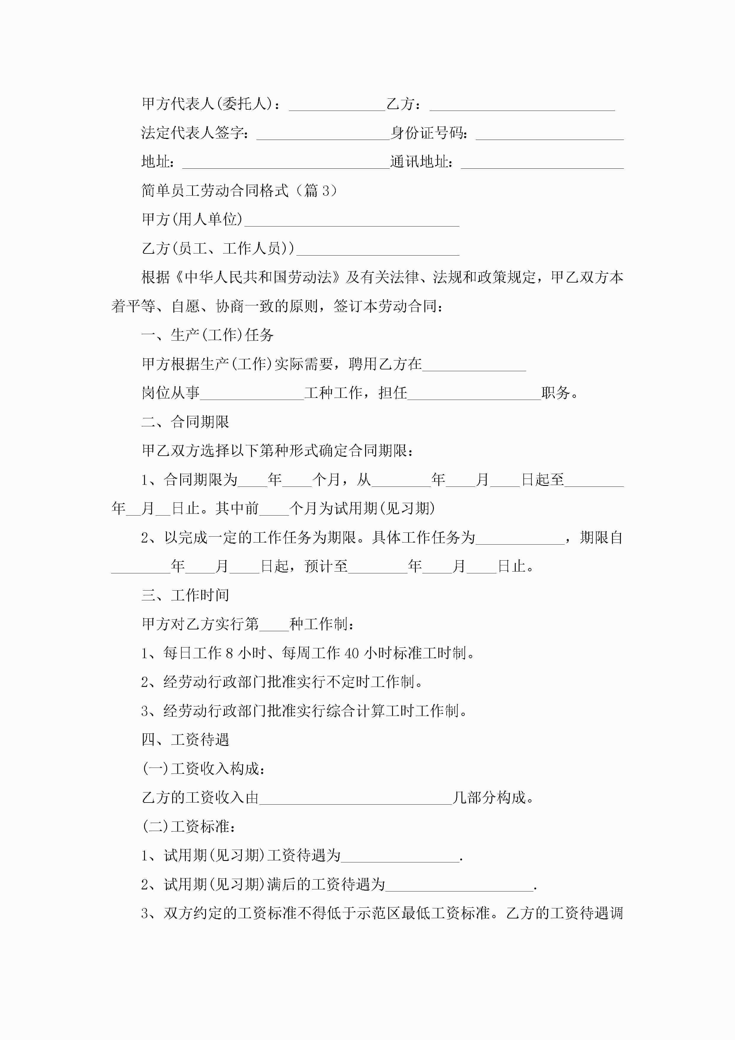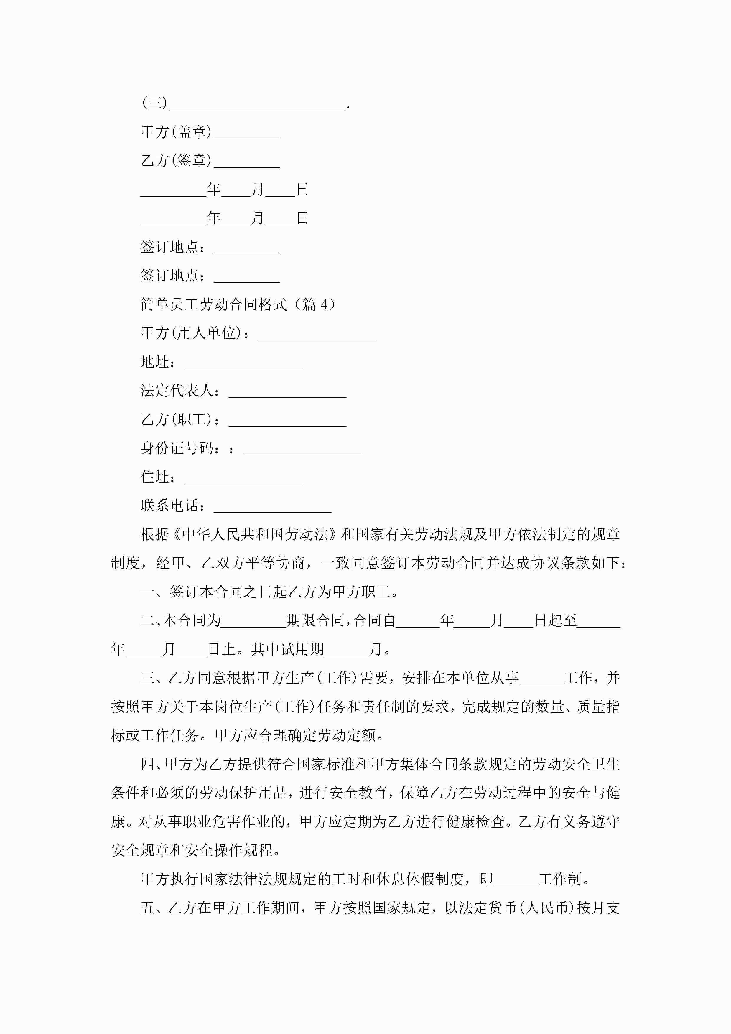 简单员工劳动合同格式范本【7篇】jugei3月23日 01:46发布关注260 简单员工劳动合同格式范本【7篇】此内容为付费资源,请付费后查看¥10.9 单篇文档限时特惠¥15个人会员开通企业会员开通立即下载无需登陆!可直接快捷下载单个模板付费资源© 版权声明THE ENDWord模板# 实用文档# 实用模板# 合同模板# 劳动合同 如有问题,可点击最底部“联系我们”联系客服 分享QQ空间微博QQ好友海报分享复制链接收藏
