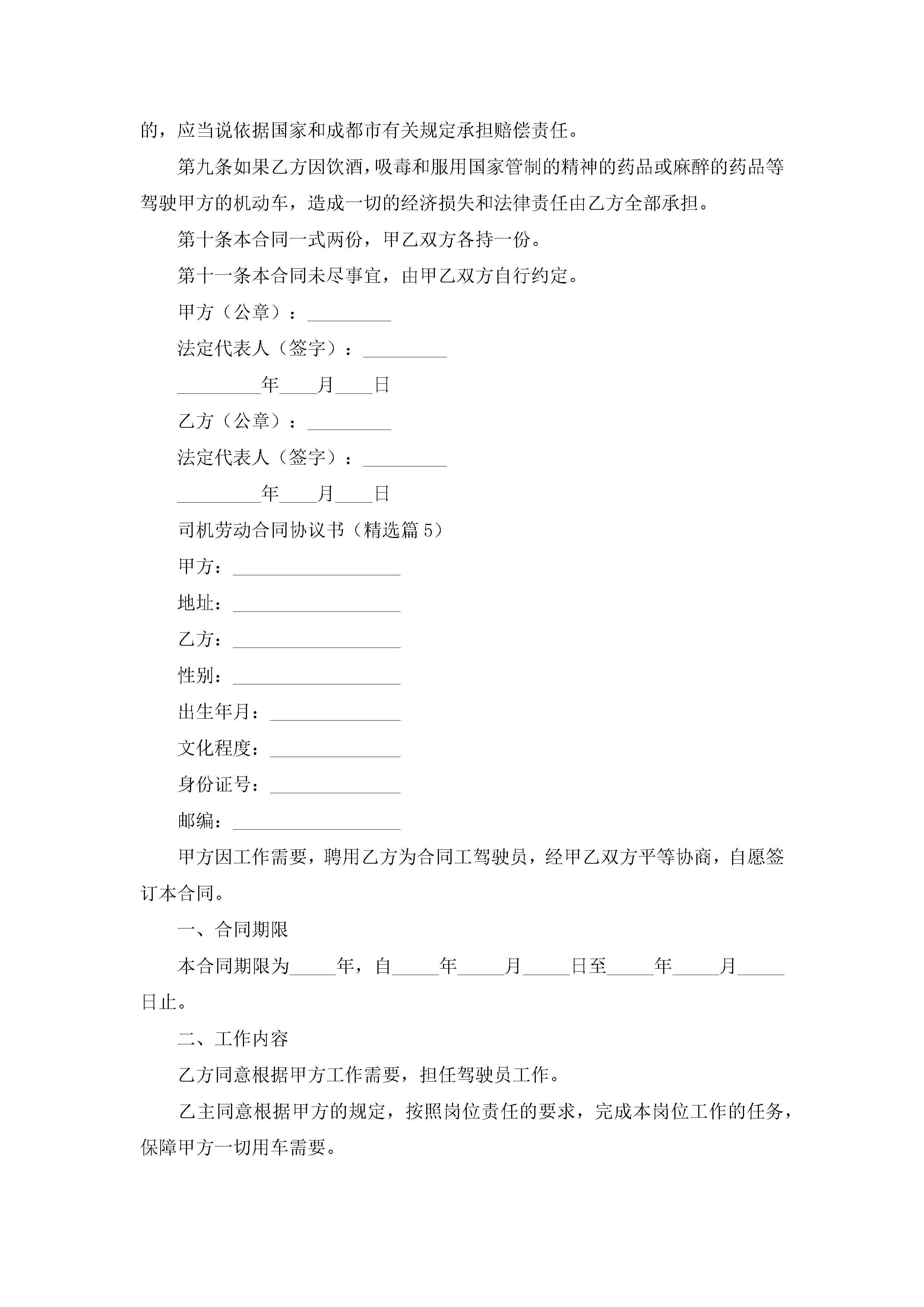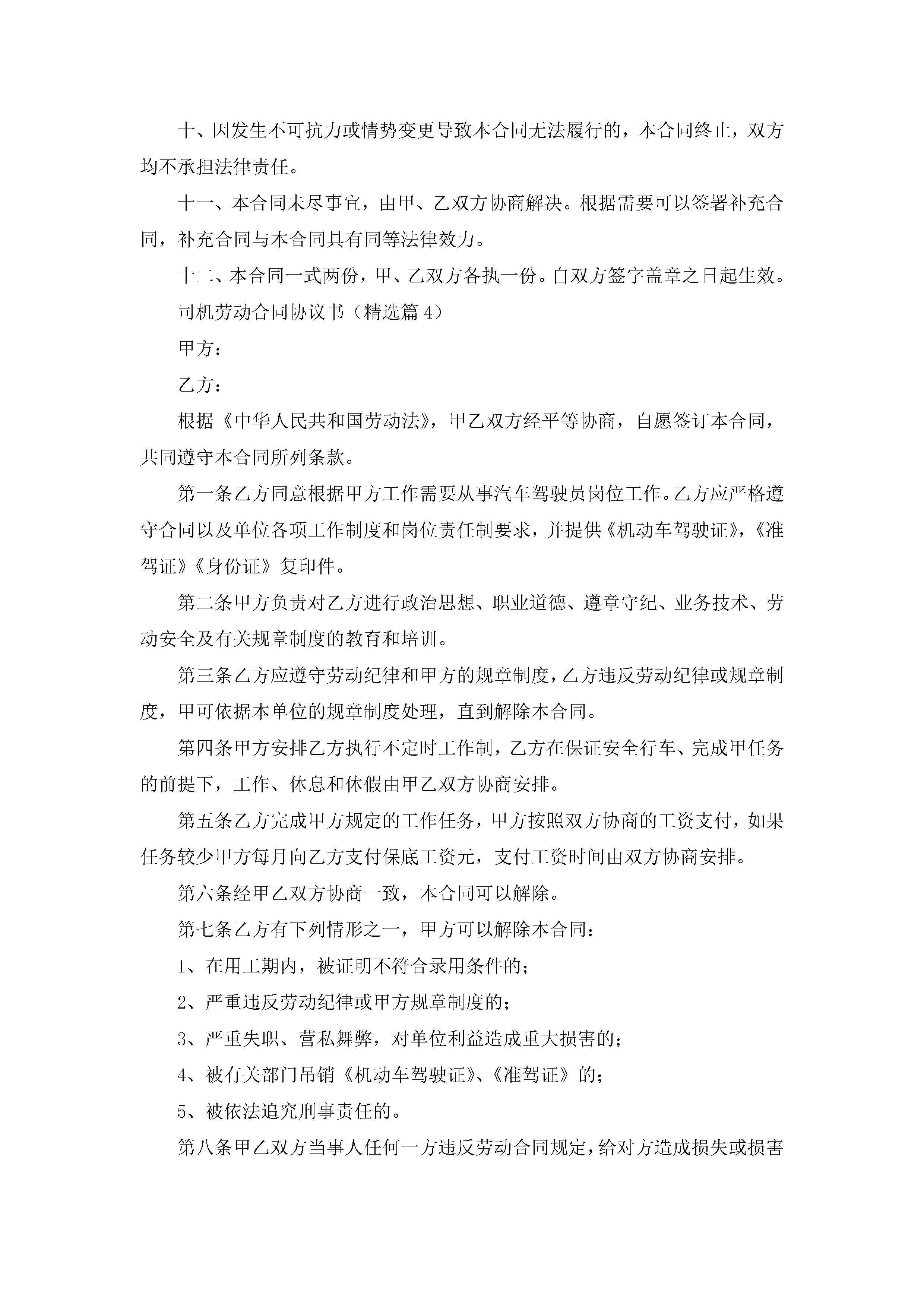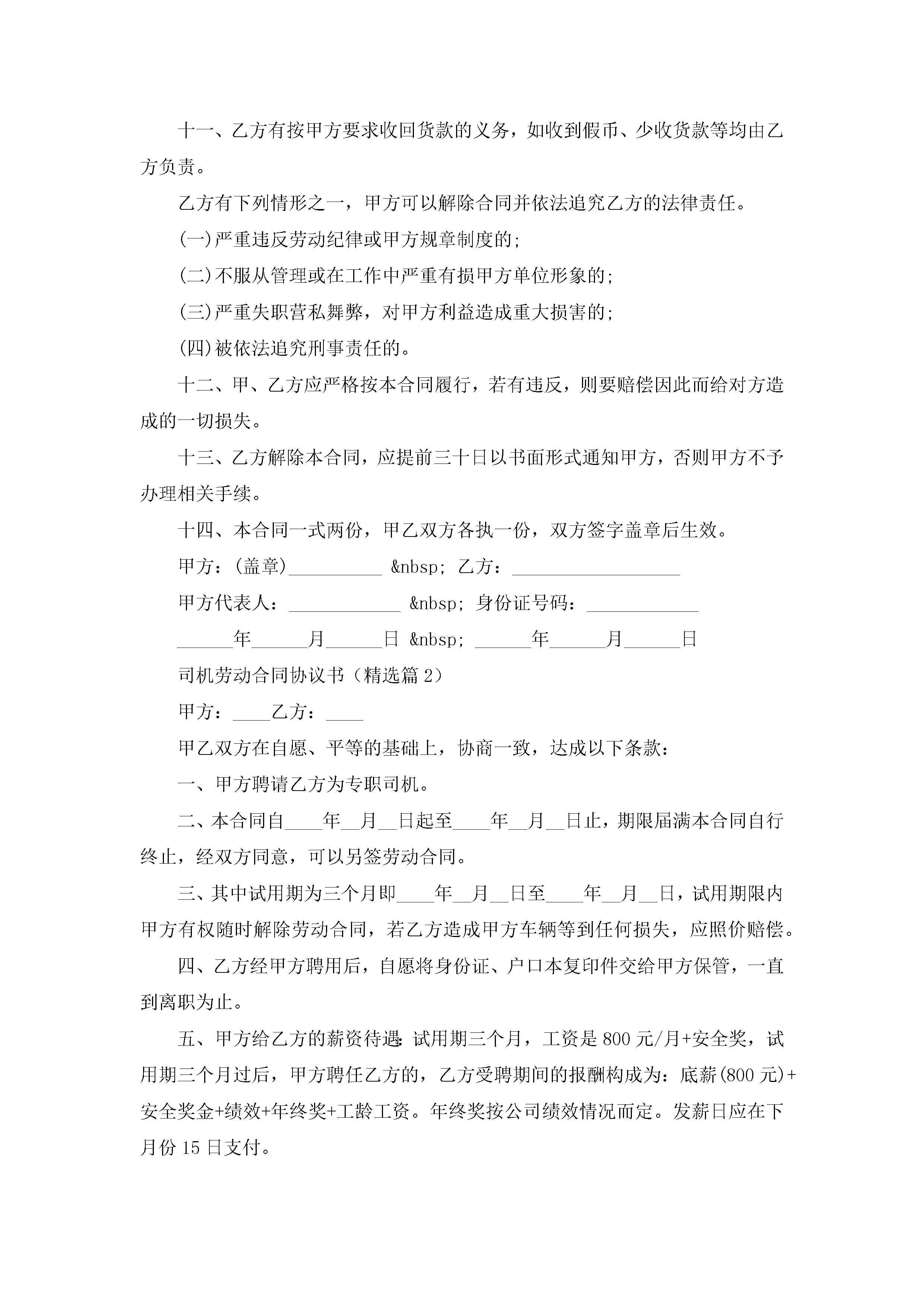 司机劳动合同协议书7篇jugei3月23日 01:46发布关注194 司机劳动合同协议书7篇此内容为付费资源,请付费后查看¥10.9 单篇文档限时特惠¥15个人会员开通企业会员开通立即下载无需登陆!可直接快捷下载单个模板付费资源© 版权声明THE ENDWord模板# 实用文档# 实用模板# 合同模板# 劳动合同 如有问题,可点击最底部“联系我们”联系客服 分享QQ空间微博QQ好友海报分享复制链接收藏