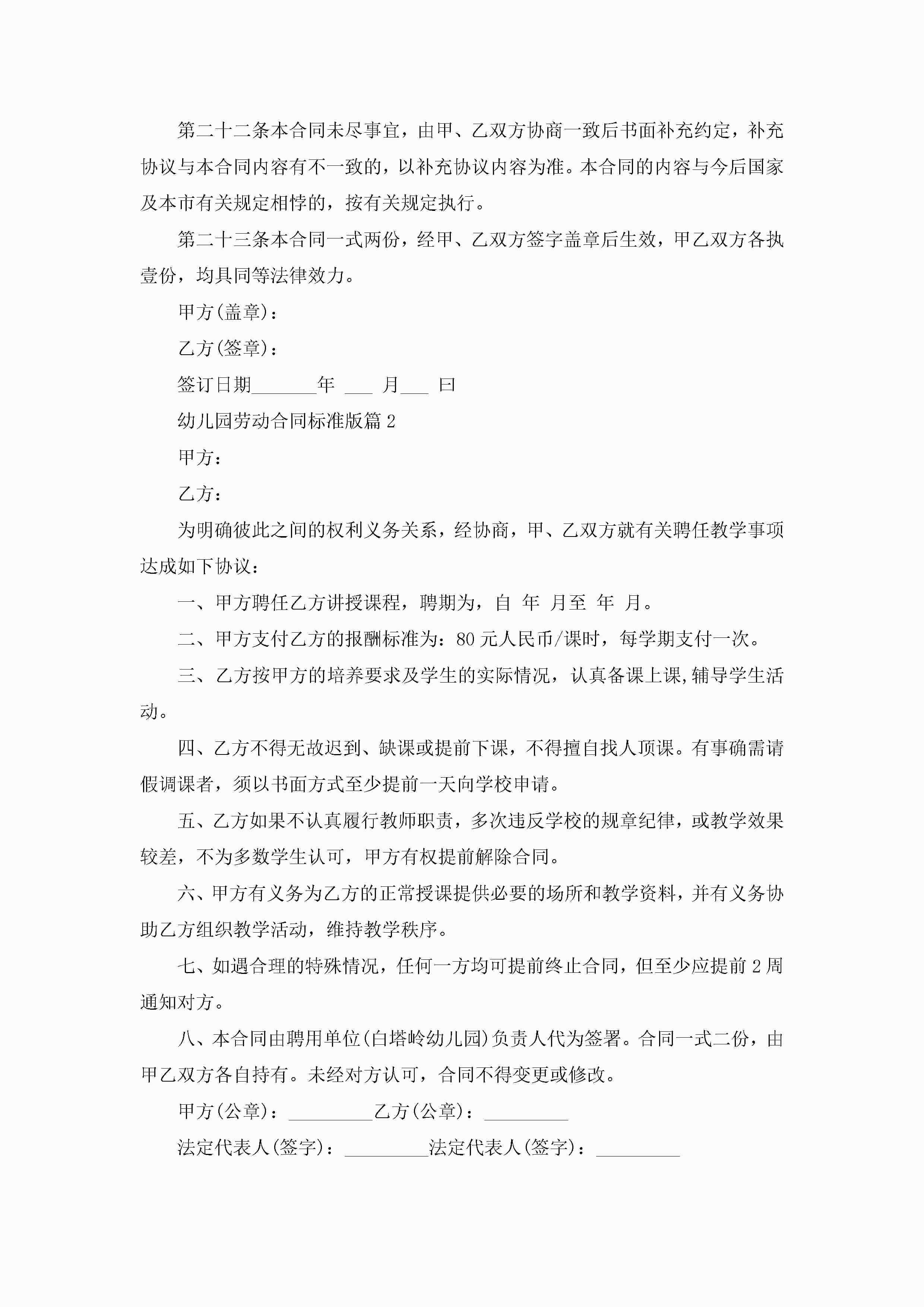 幼儿园劳动合同标准版【7篇】jugei3月23日 01:46发布关注499 幼儿园劳动合同标准版【7篇】此内容为付费资源,请付费后查看¥10.9 单篇文档限时特惠¥15个人会员开通企业会员开通立即下载无需登陆!可直接快捷下载单个模板付费资源© 版权声明THE ENDWord模板# 实用文档# 合同模板# 劳动合同# 幼儿园劳动合同标准版 如有问题,可点击最底部“联系我们”联系客服 分享QQ空间微博QQ好友海报分享复制链接收藏