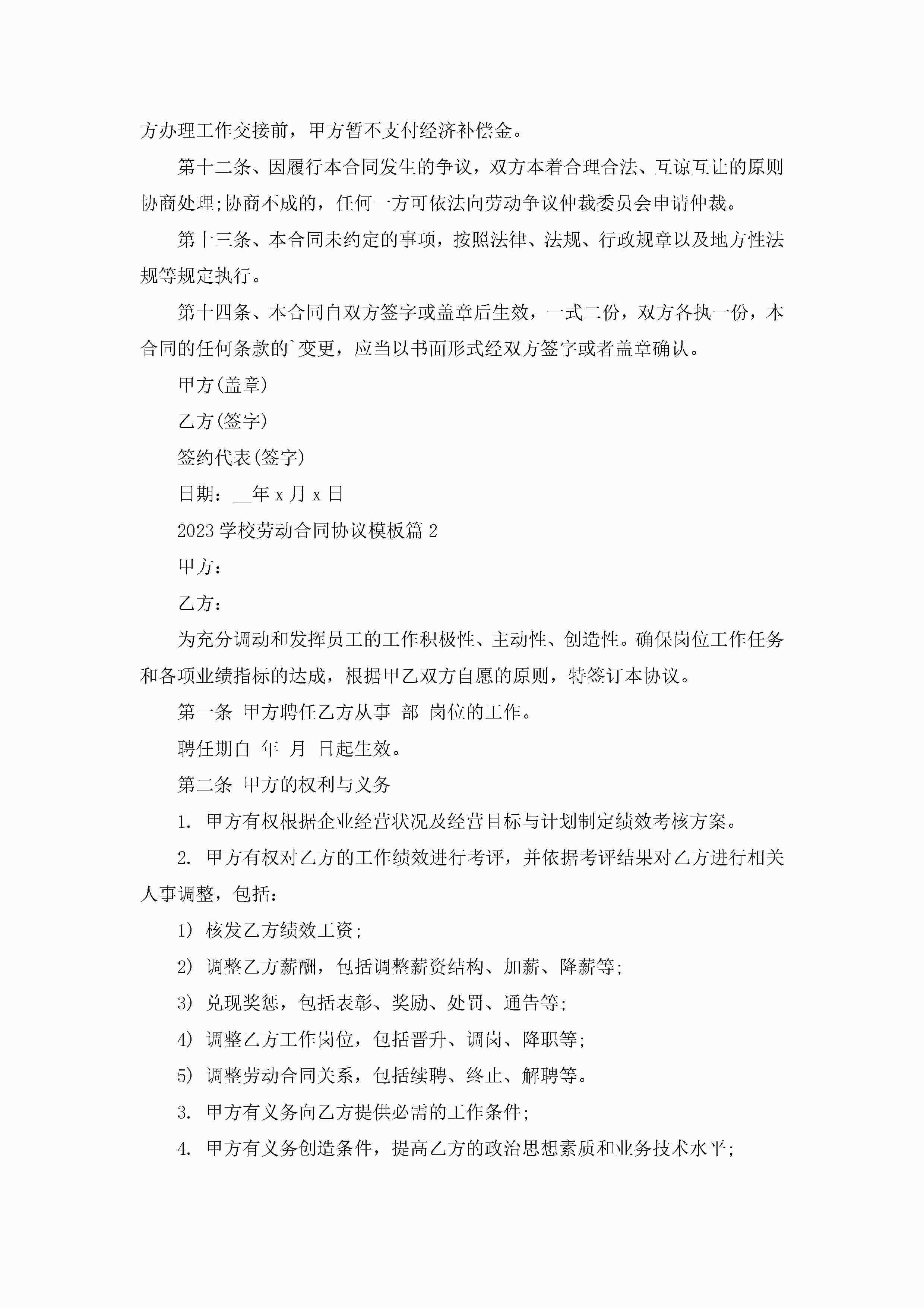 2023学校劳动合同协议模板【7篇】jugei3月23日 01:46发布关注235 2023学校劳动合同协议模板【7篇】此内容为付费资源,请付费后查看¥10.9 单篇文档限时特惠¥15个人会员开通企业会员开通立即下载无需登陆!可直接快捷下载单个模板付费资源© 版权声明THE ENDWord模板# 实用文档# 合同模板# 劳动合同# 2023学校劳动合同协议模板 如有问题,可点击最底部“联系我们”联系客服 分享QQ空间微博QQ好友海报分享复制链接收藏