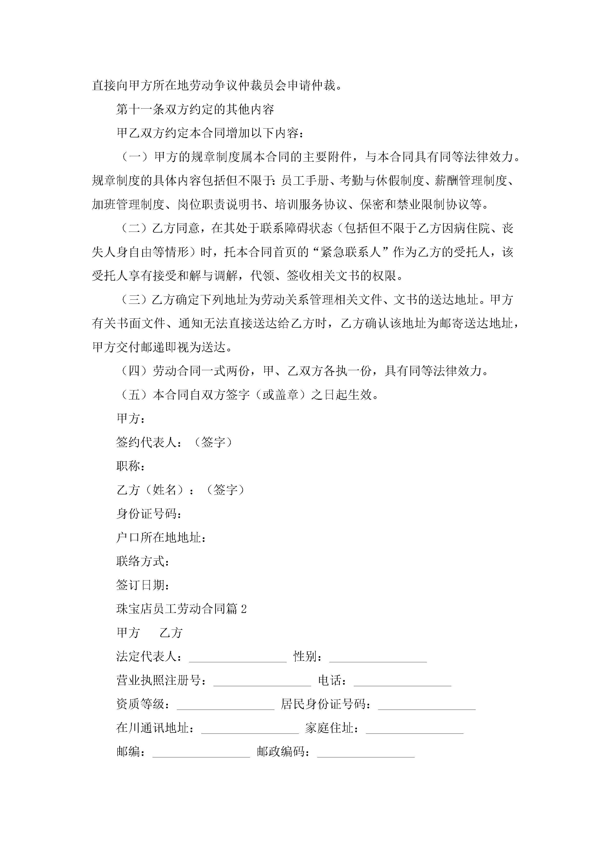 珠宝店员工劳动合同范文jugei3月23日 01:46发布关注236 珠宝店员工劳动合同范文此内容为付费资源,请付费后查看¥10.9 单篇文档限时特惠¥15个人会员开通企业会员开通立即下载无需登陆!可直接快捷下载单个模板付费资源© 版权声明THE ENDWord模板# 实用文档# 合同模板# 劳动合同# 珠宝店员工劳动合同 如有问题,可点击最底部“联系我们”联系客服 分享QQ空间微博QQ好友海报分享复制链接收藏