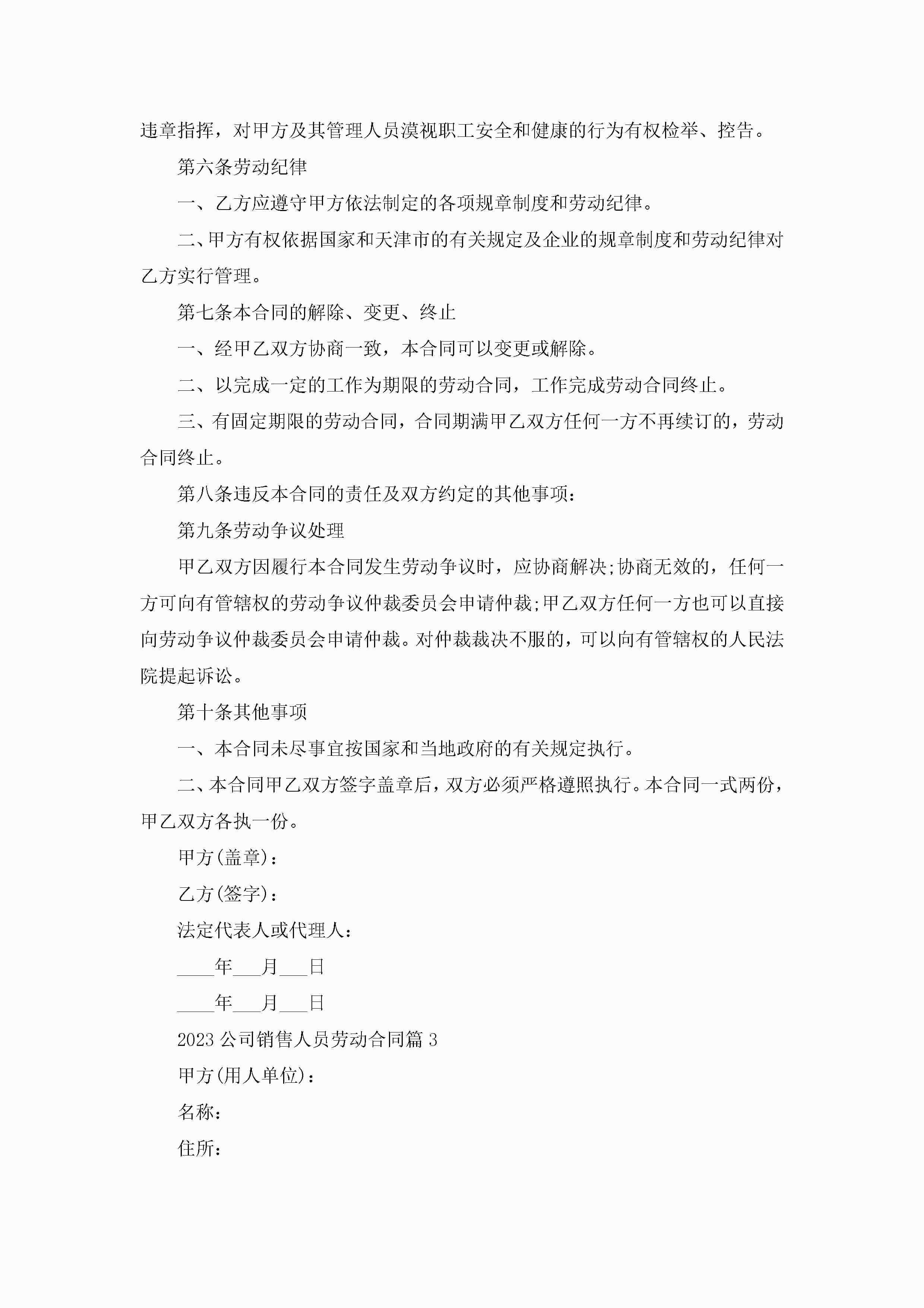 2023公司销售人员劳动合同【7篇】jugei3月23日 01:46发布关注190 2023公司销售人员劳动合同【7篇】此内容为付费资源,请付费后查看¥10.9 单篇文档限时特惠¥15个人会员开通企业会员开通立即下载无需登陆!可直接快捷下载单个模板付费资源© 版权声明THE ENDWord模板# 实用文档# 合同模板# 劳动合同# 2023公司销售人员劳动合同 如有问题,可点击最底部“联系我们”联系客服 分享QQ空间微博QQ好友海报分享复制链接收藏