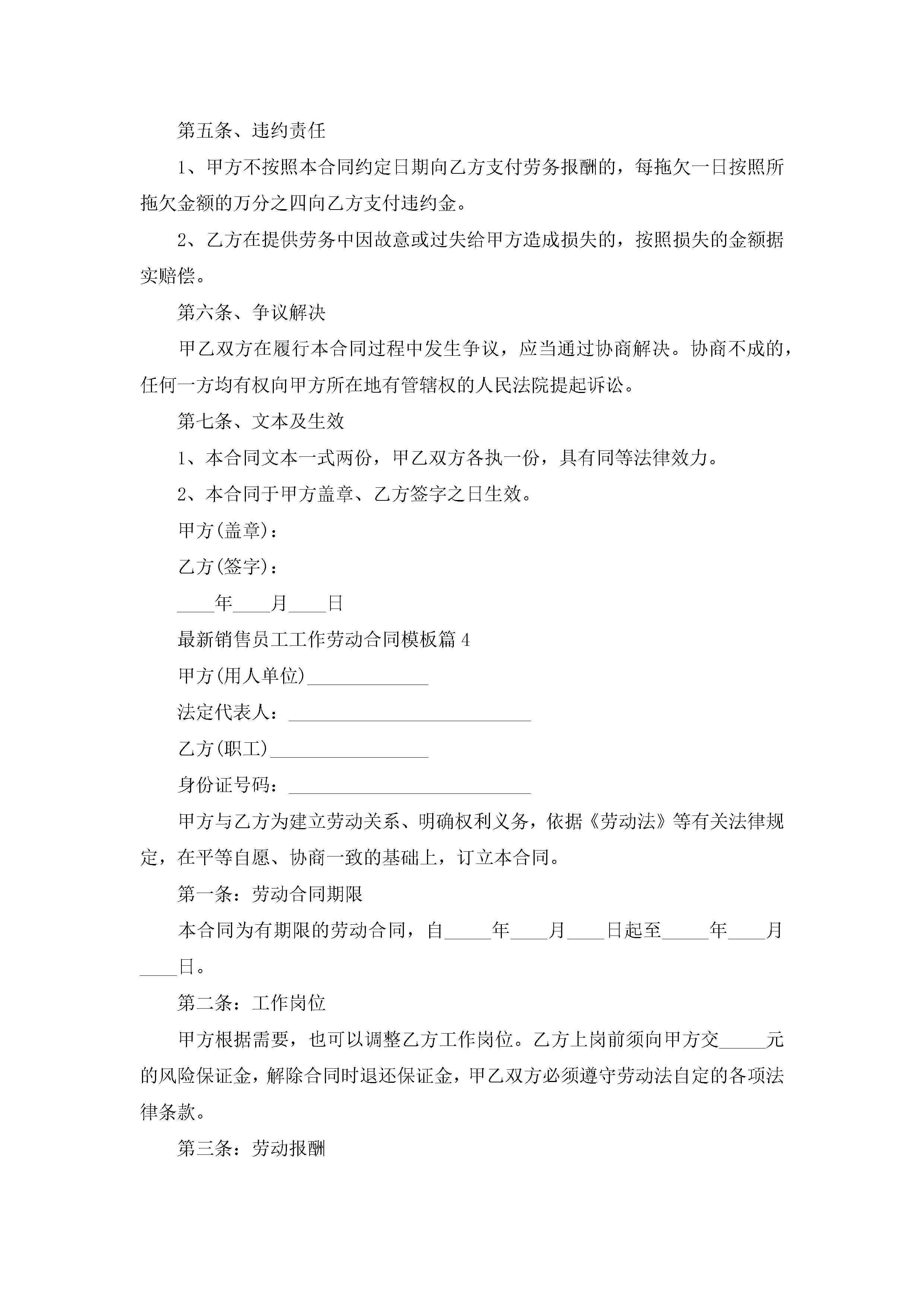最新销售员工工作劳动合同模板【7篇】jugei3月23日 01:46发布关注202 最新销售员工工作劳动合同模板【7篇】此内容为付费资源,请付费后查看¥10.9 单篇文档限时特惠¥15个人会员开通企业会员开通立即下载无需登陆!可直接快捷下载单个模板付费资源© 版权声明THE ENDWord模板# 实用文档# 合同模板# 劳动合同# 最新销售员工工作劳动合同模板 如有问题,可点击最底部“联系我们”联系客服 分享QQ空间微博QQ好友海报分享复制链接收藏