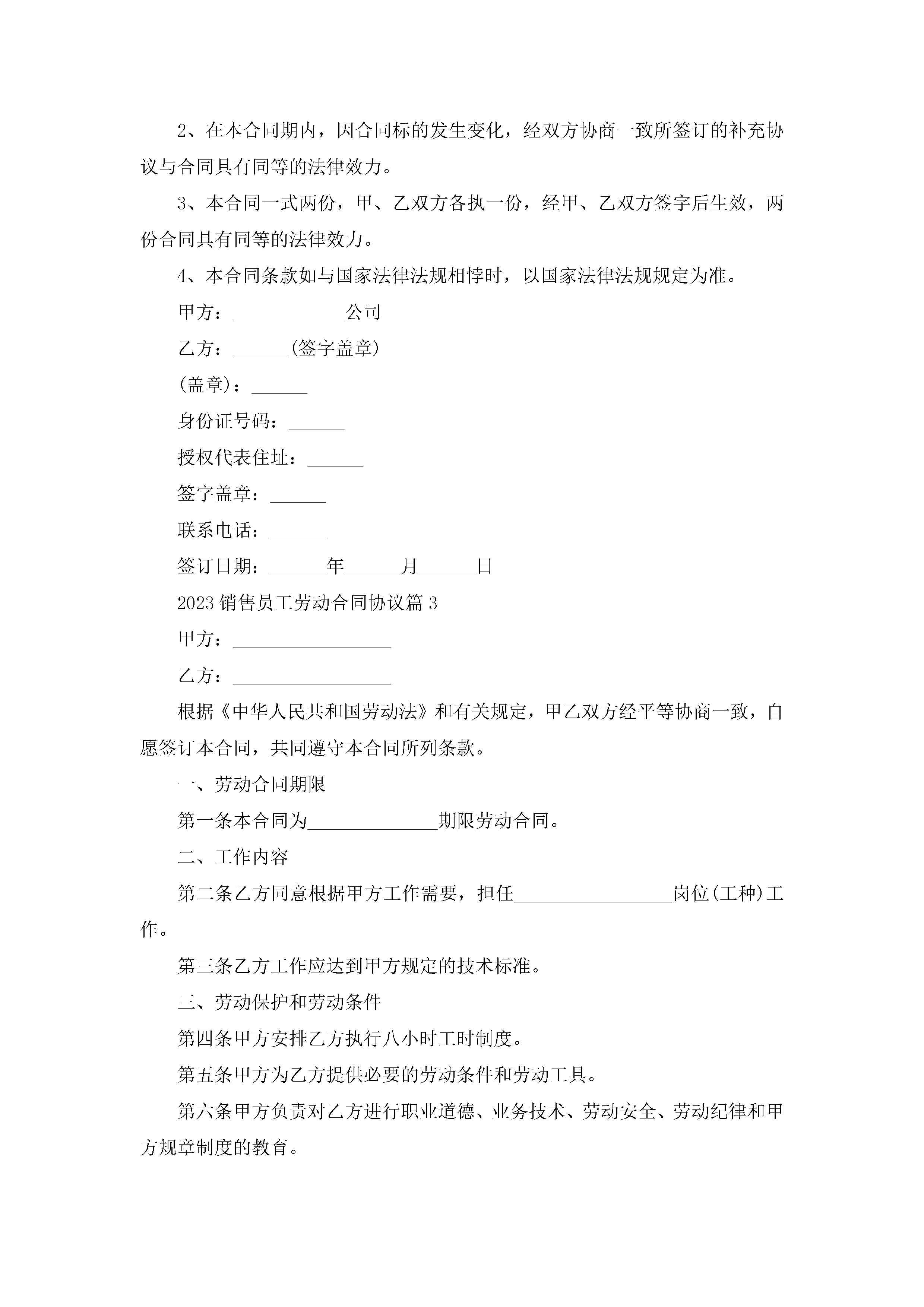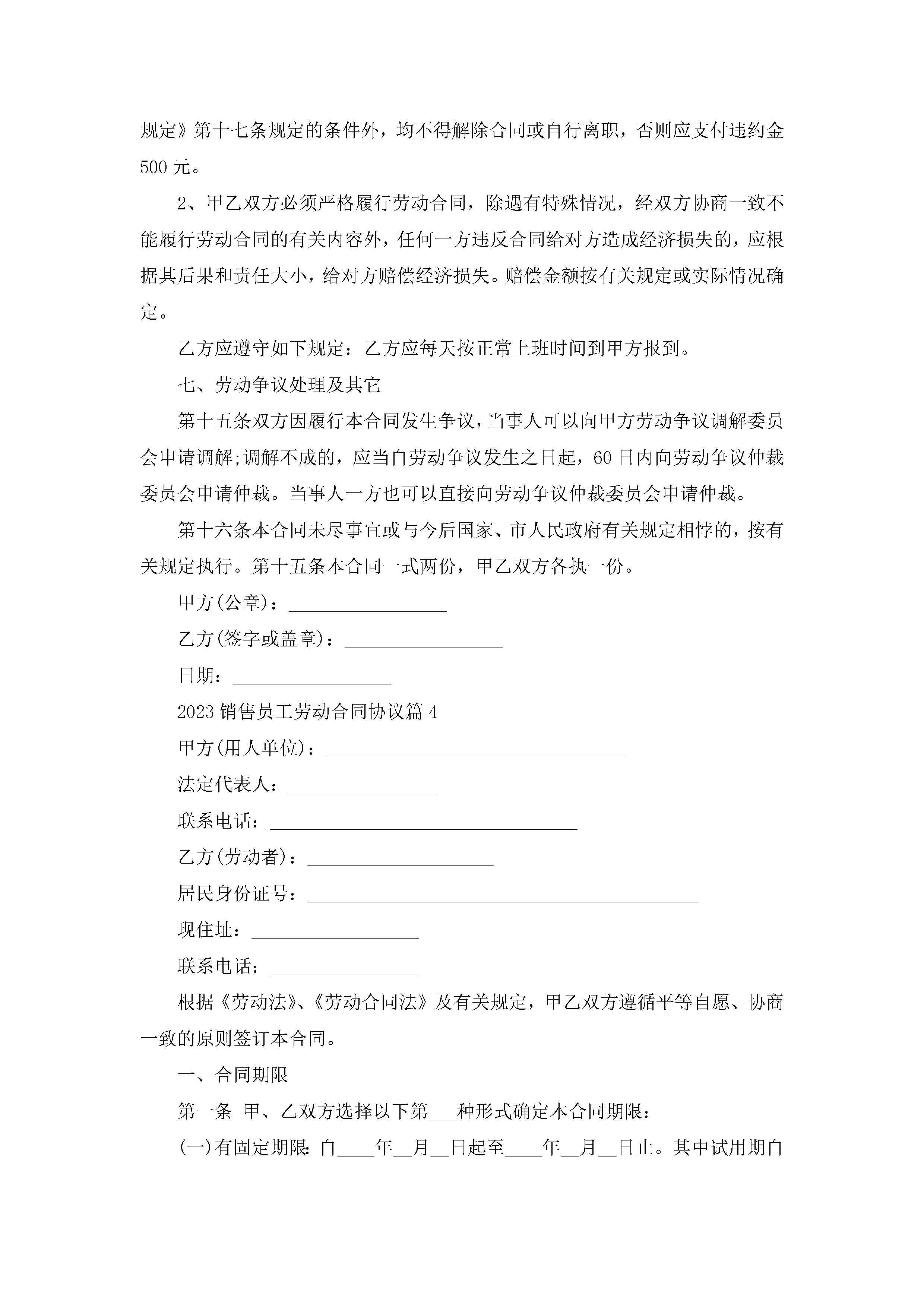 2023销售员工劳动合同协议【7篇】jugei3月23日 01:46发布关注248 2023销售员工劳动合同协议【7篇】此内容为付费资源,请付费后查看¥10.9 单篇文档限时特惠¥15个人会员开通企业会员开通立即下载无需登陆!可直接快捷下载单个模板付费资源© 版权声明THE ENDWord模板# 实用文档# 合同模板# 劳动合同# 2023销售员工劳动合同协议 如有问题,可点击最底部“联系我们”联系客服 分享QQ空间微博QQ好友海报分享复制链接收藏