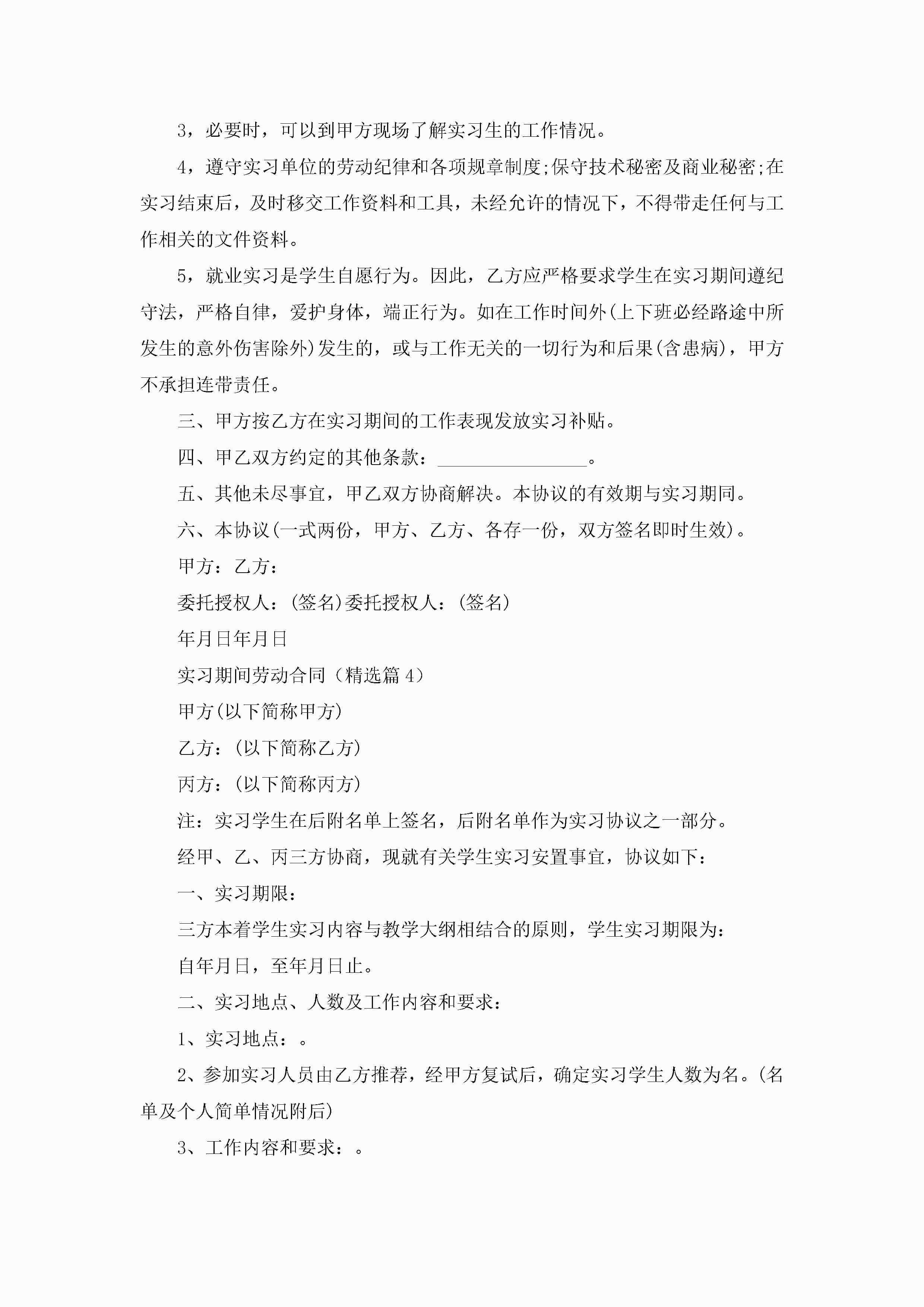 实习期间劳动合同模板(7篇)jugei3月23日 01:46发布关注430 实习期间劳动合同模板(7篇)此内容为付费资源,请付费后查看¥10.9 单篇文档限时特惠¥15个人会员开通企业会员开通立即下载无需登陆!可直接快捷下载单个模板付费资源© 版权声明THE ENDWord模板# 实用文档# 实用模板# 合同模板# 劳动合同 如有问题,可点击最底部“联系我们”联系客服 分享QQ空间微博QQ好友海报分享复制链接收藏