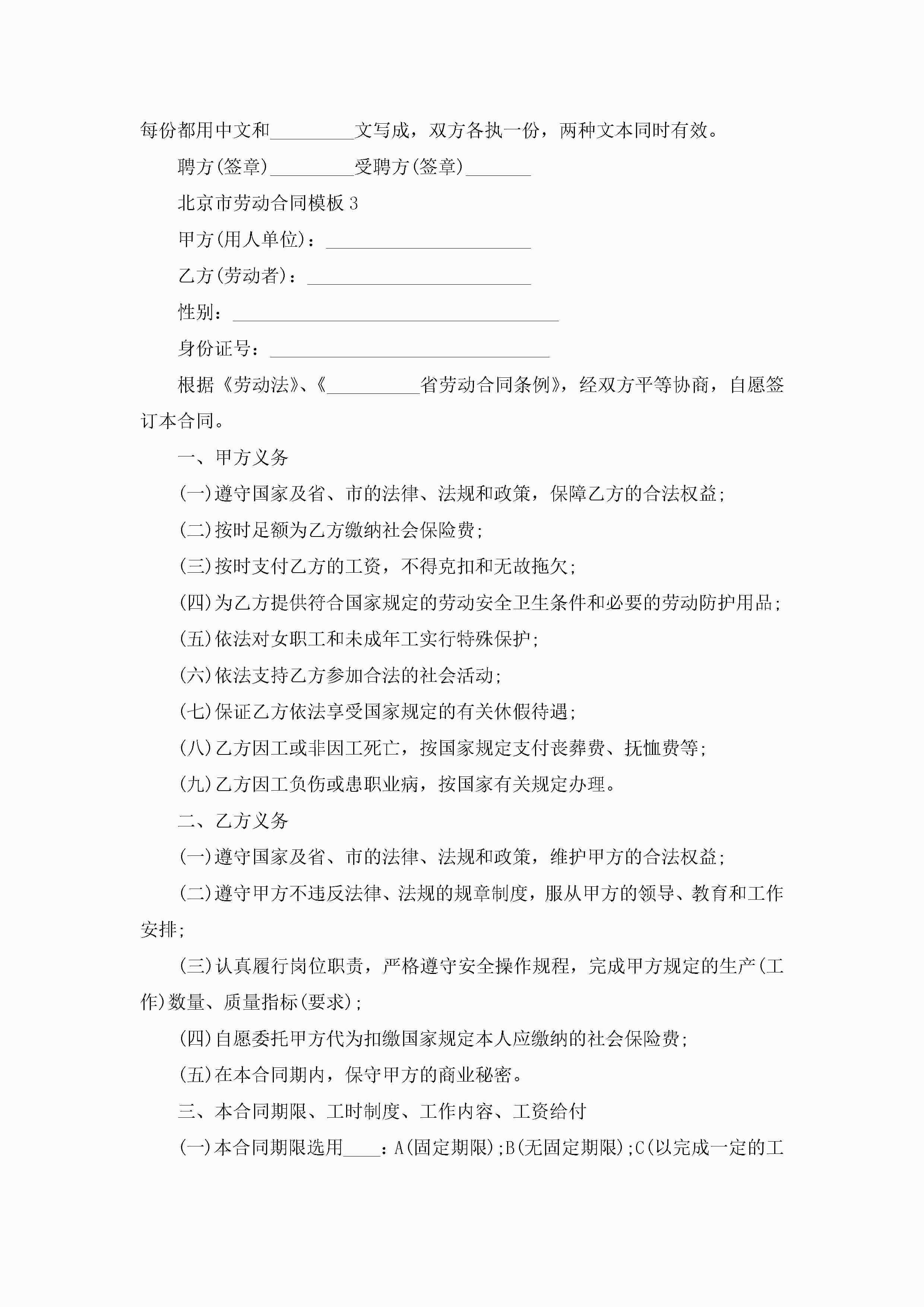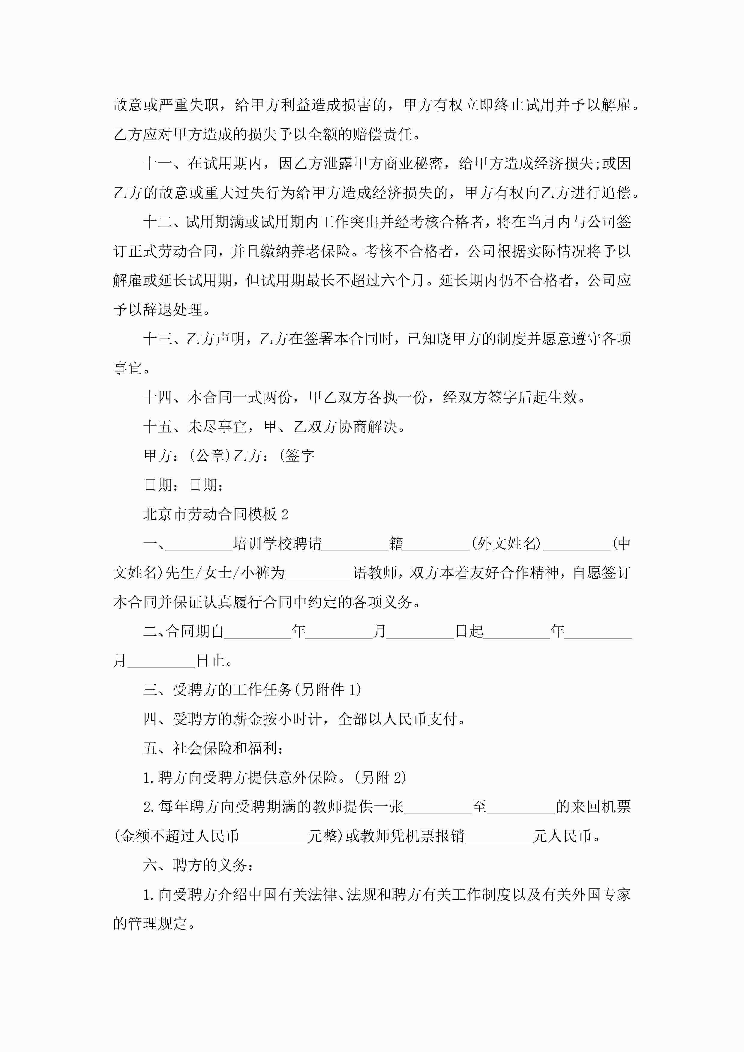 北京市劳动合同模板模板最新版jugei3月23日 01:47发布关注276 北京市劳动合同模板模板最新版此内容为付费资源,请付费后查看¥10.9 单篇文档限时特惠¥15个人会员开通企业会员开通立即下载无需登陆!可直接快捷下载单个模板付费资源© 版权声明THE ENDWord模板# 实用文档# 实用模板# 合同模板# 劳动合同 如有问题,可点击最底部“联系我们”联系客服 分享QQ空间微博QQ好友海报分享复制链接收藏
