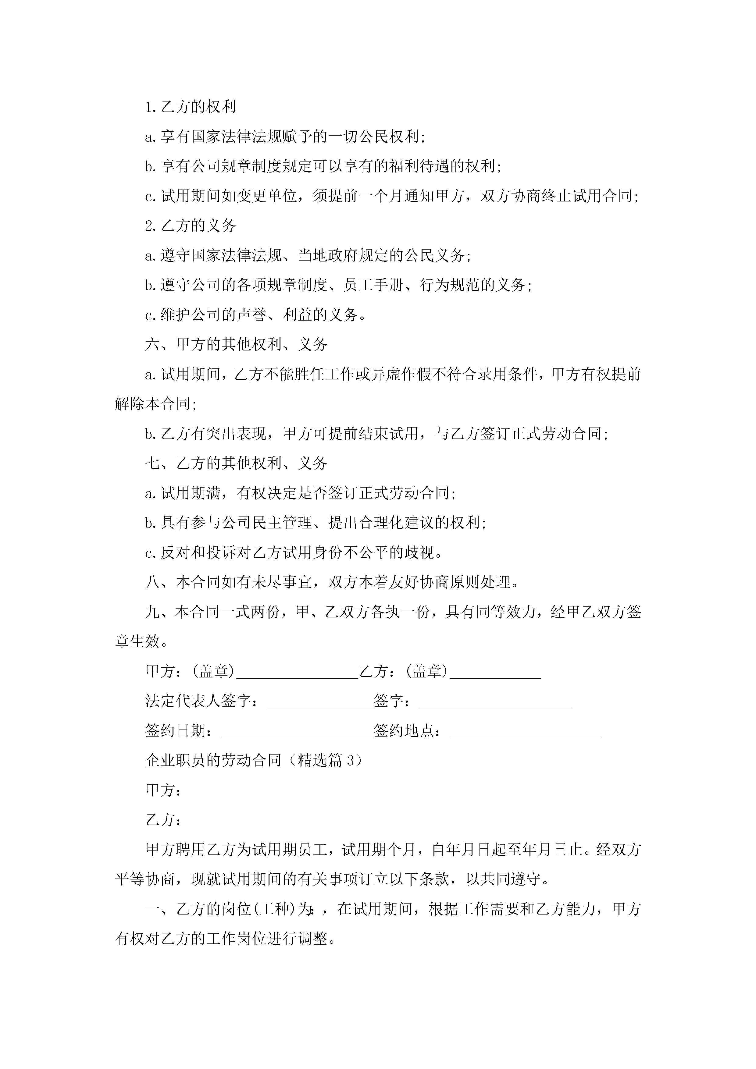 企业职员的劳动合同范本【七篇】jugei3月23日 01:47发布关注224 企业职员的劳动合同范本【七篇】此内容为付费资源,请付费后查看¥10.9 单篇文档限时特惠¥15个人会员开通企业会员开通立即下载无需登陆!可直接快捷下载单个模板付费资源© 版权声明THE ENDWord模板# 实用文档# 实用模板# 合同模板# 劳动合同 如有问题,可点击最底部“联系我们”联系客服 分享QQ空间微博QQ好友海报分享复制链接收藏