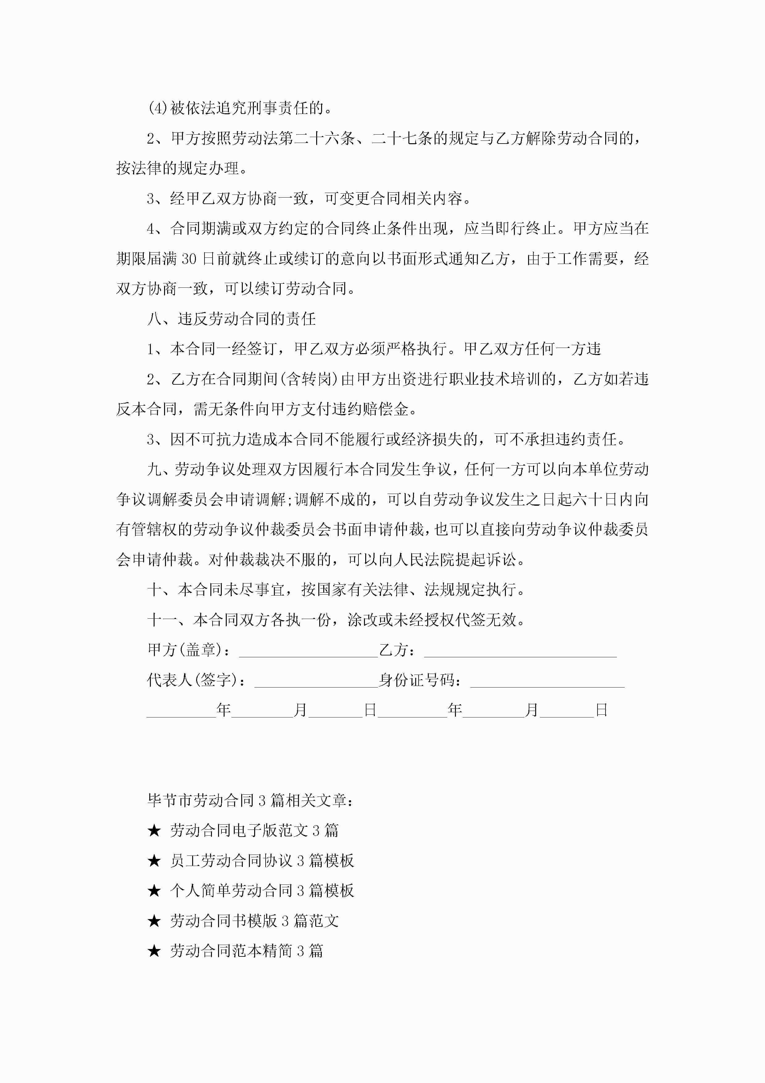 毕节市劳动合同3篇模板jugei3月23日 01:47发布关注197 毕节市劳动合同3篇模板此内容为付费资源,请付费后查看¥10.9 单篇文档限时特惠¥15个人会员开通企业会员开通立即下载无需登陆!可直接快捷下载单个模板付费资源© 版权声明THE ENDWord模板# 实用文档# 实用模板# 合同模板# 劳动合同 如有问题,可点击最底部“联系我们”联系客服 分享QQ空间微博QQ好友海报分享复制链接收藏