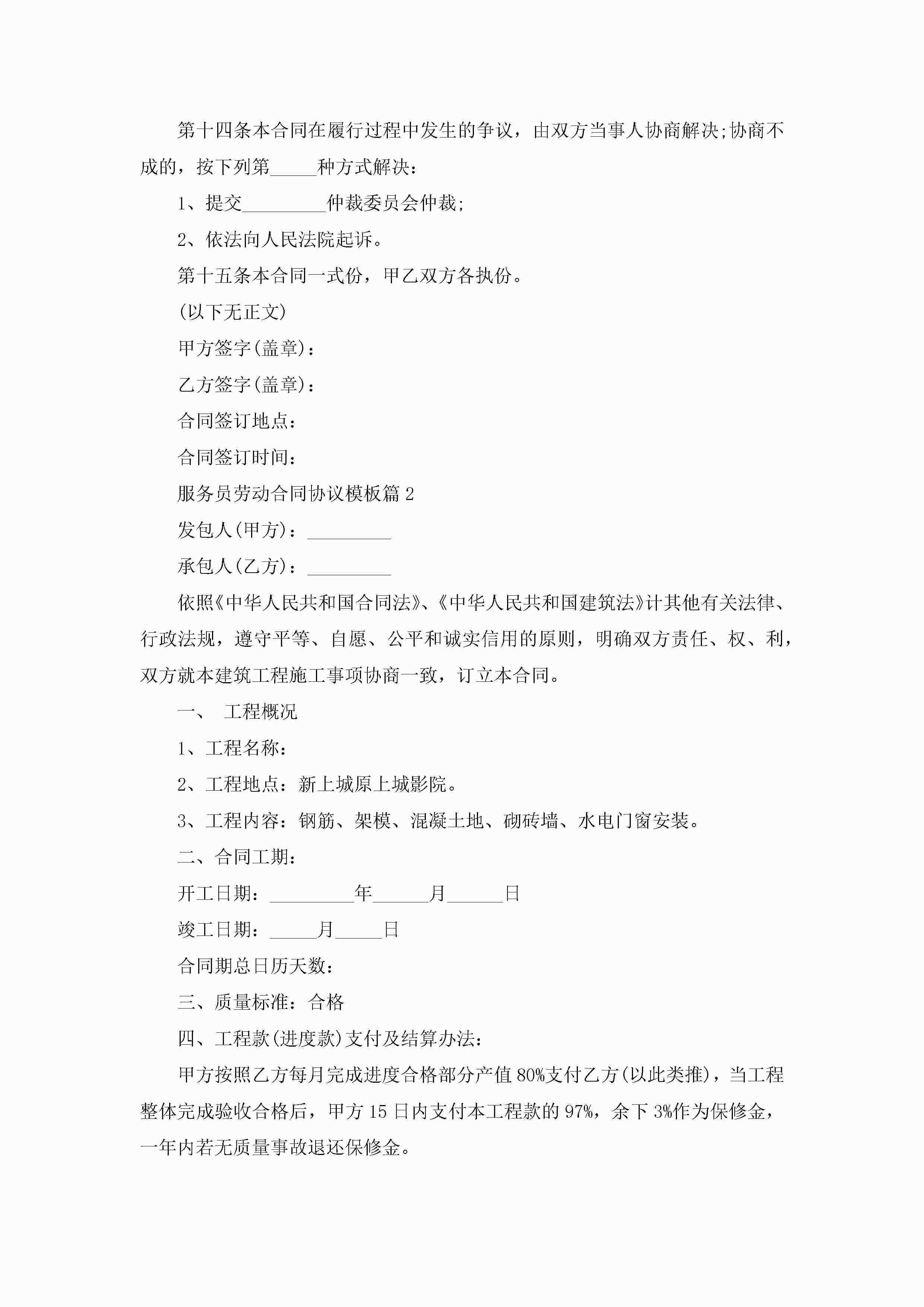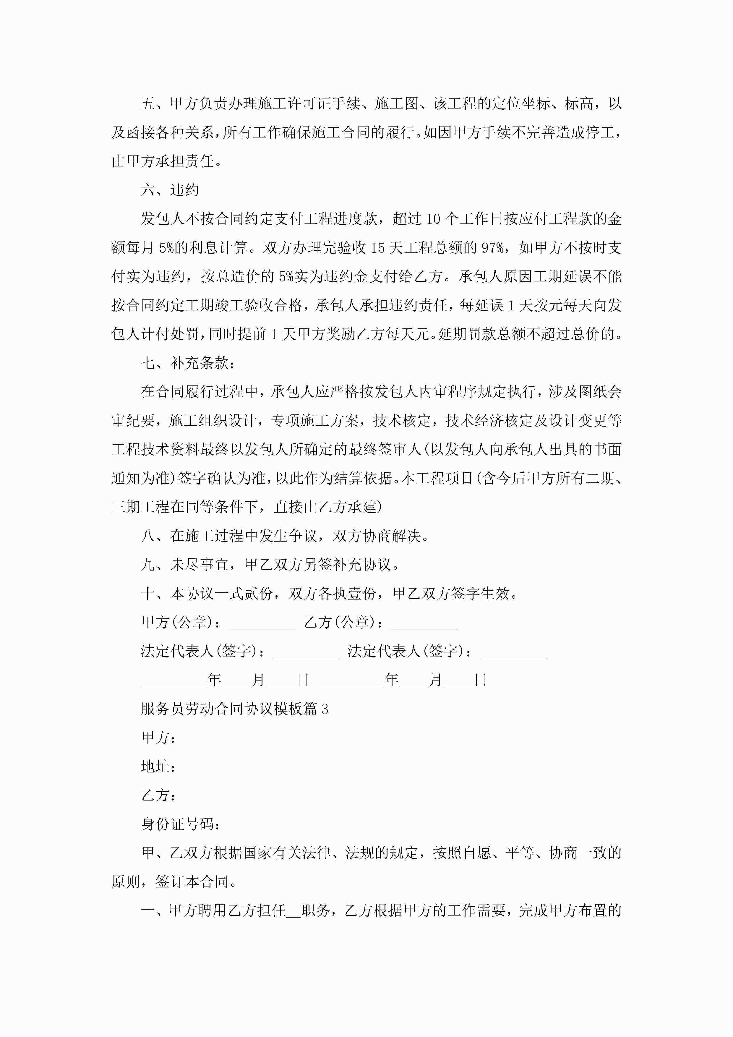服务员劳动合同协议模板【7篇】jugei3月23日 01:47发布关注308 服务员劳动合同协议模板【7篇】此内容为付费资源,请付费后查看¥10.9 单篇文档限时特惠¥15个人会员开通企业会员开通立即下载无需登陆!可直接快捷下载单个模板付费资源© 版权声明THE ENDWord模板# 实用文档# 合同模板# 劳动合同# 服务员劳动合同协议模板 如有问题,可点击最底部“联系我们”联系客服 分享QQ空间微博QQ好友海报分享复制链接收藏
