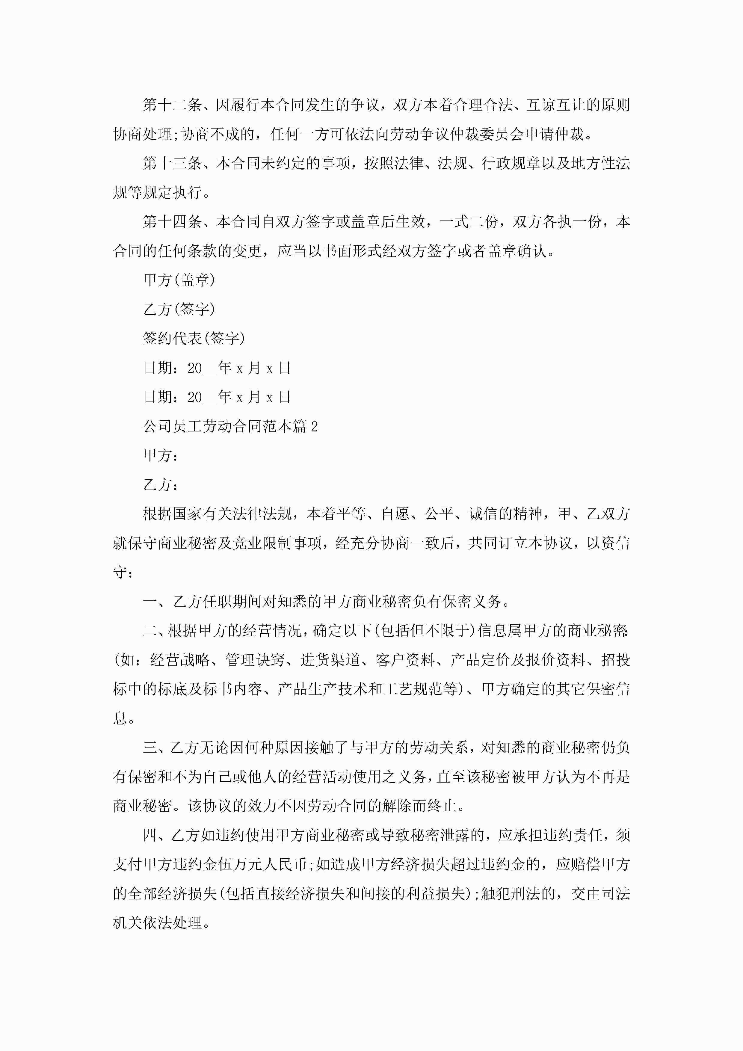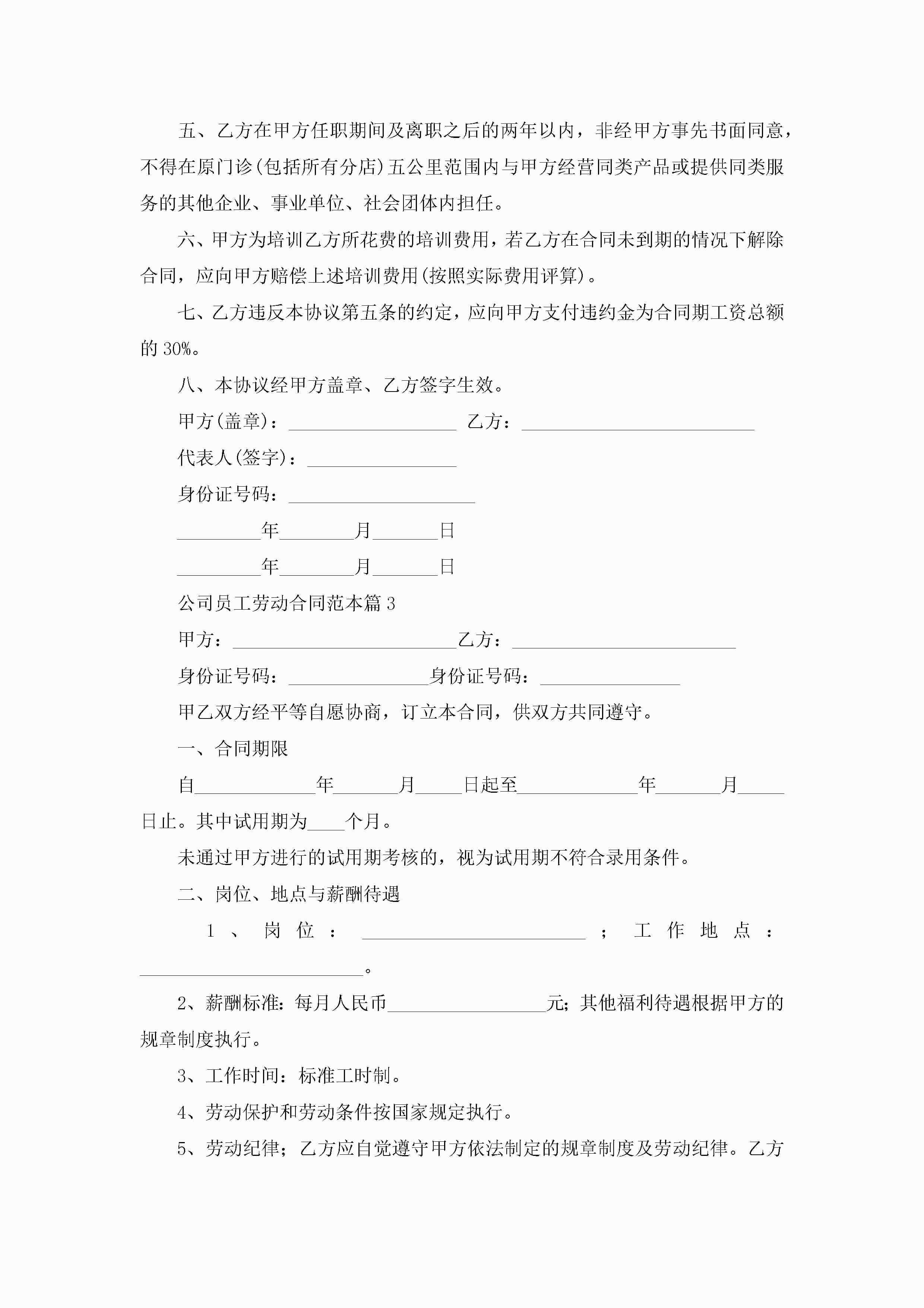 公司员工劳动合同范本5篇jugei3月23日 01:47发布关注220 公司员工劳动合同范本5篇此内容为付费资源,请付费后查看¥10.9 单篇文档限时特惠¥15个人会员开通企业会员开通立即下载无需登陆!可直接快捷下载单个模板付费资源© 版权声明THE ENDWord模板# 实用文档# 合同模板# 劳动合同# 公司员工劳动合同范本 如有问题,可点击最底部“联系我们”联系客服 分享QQ空间微博QQ好友海报分享复制链接收藏