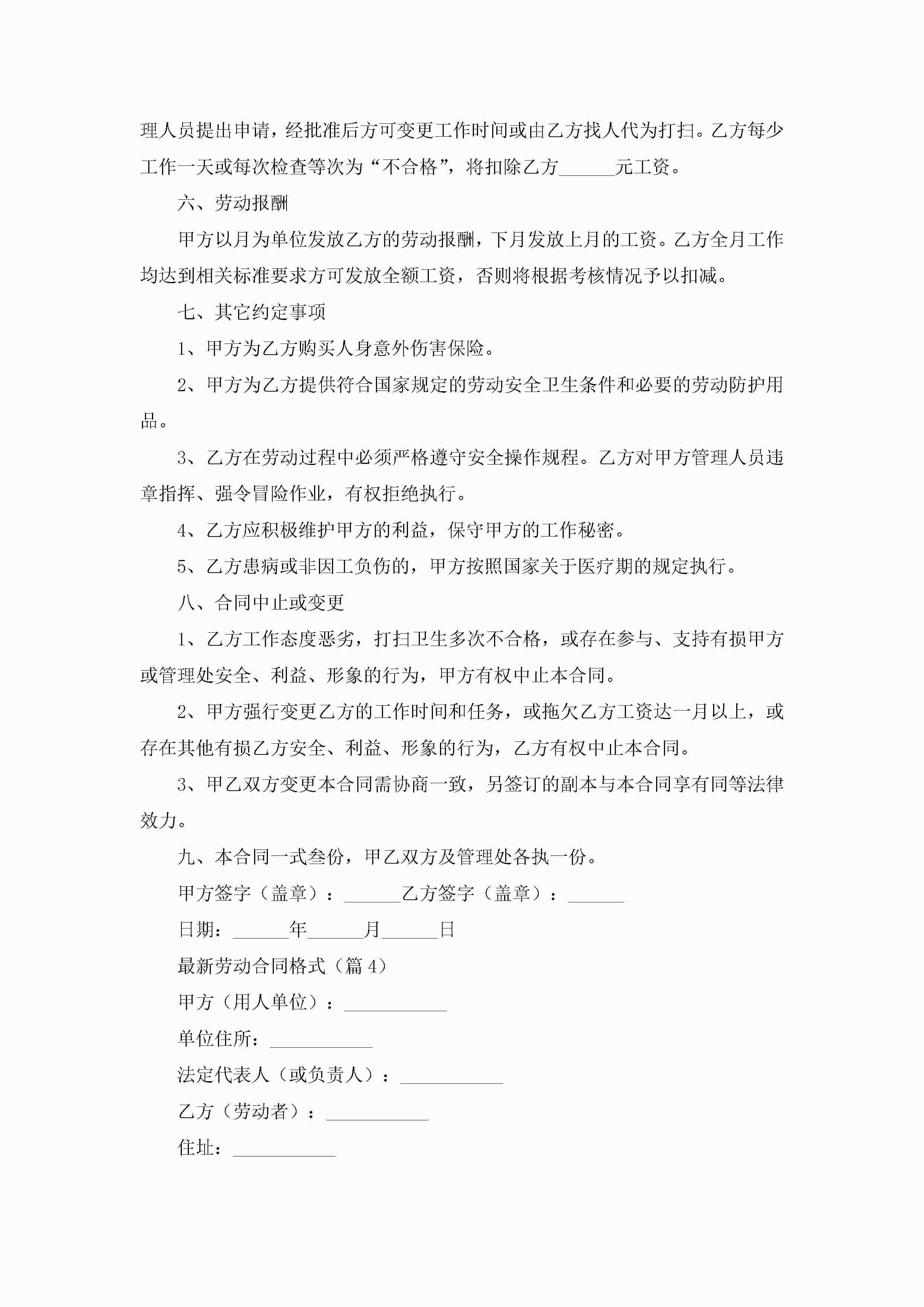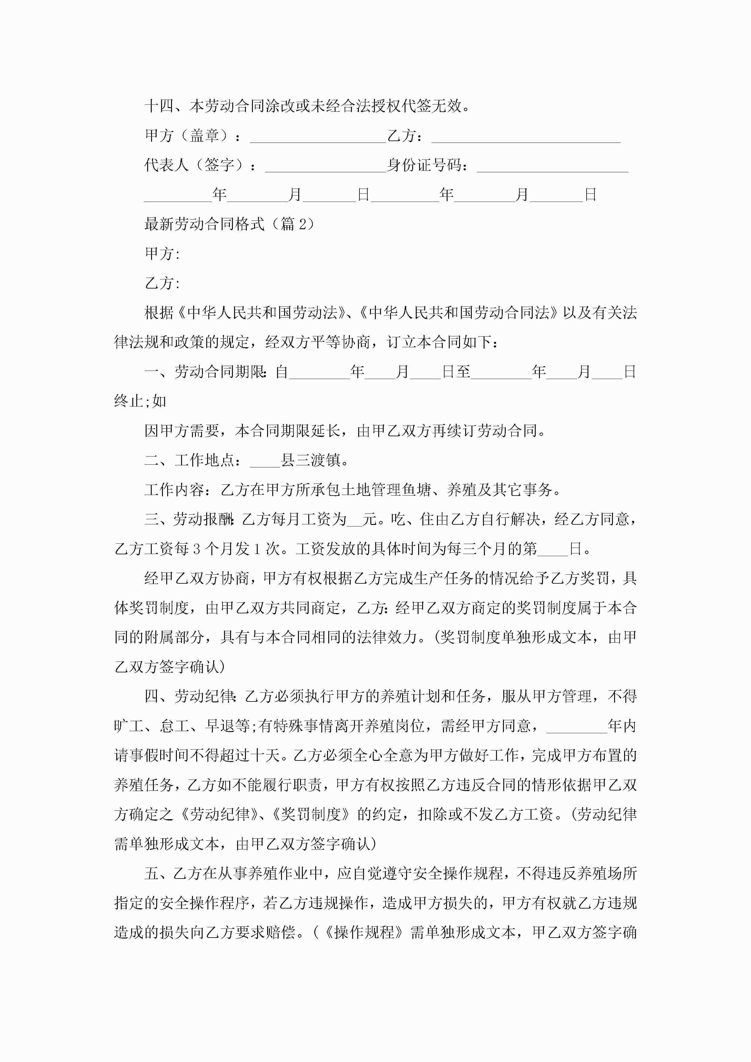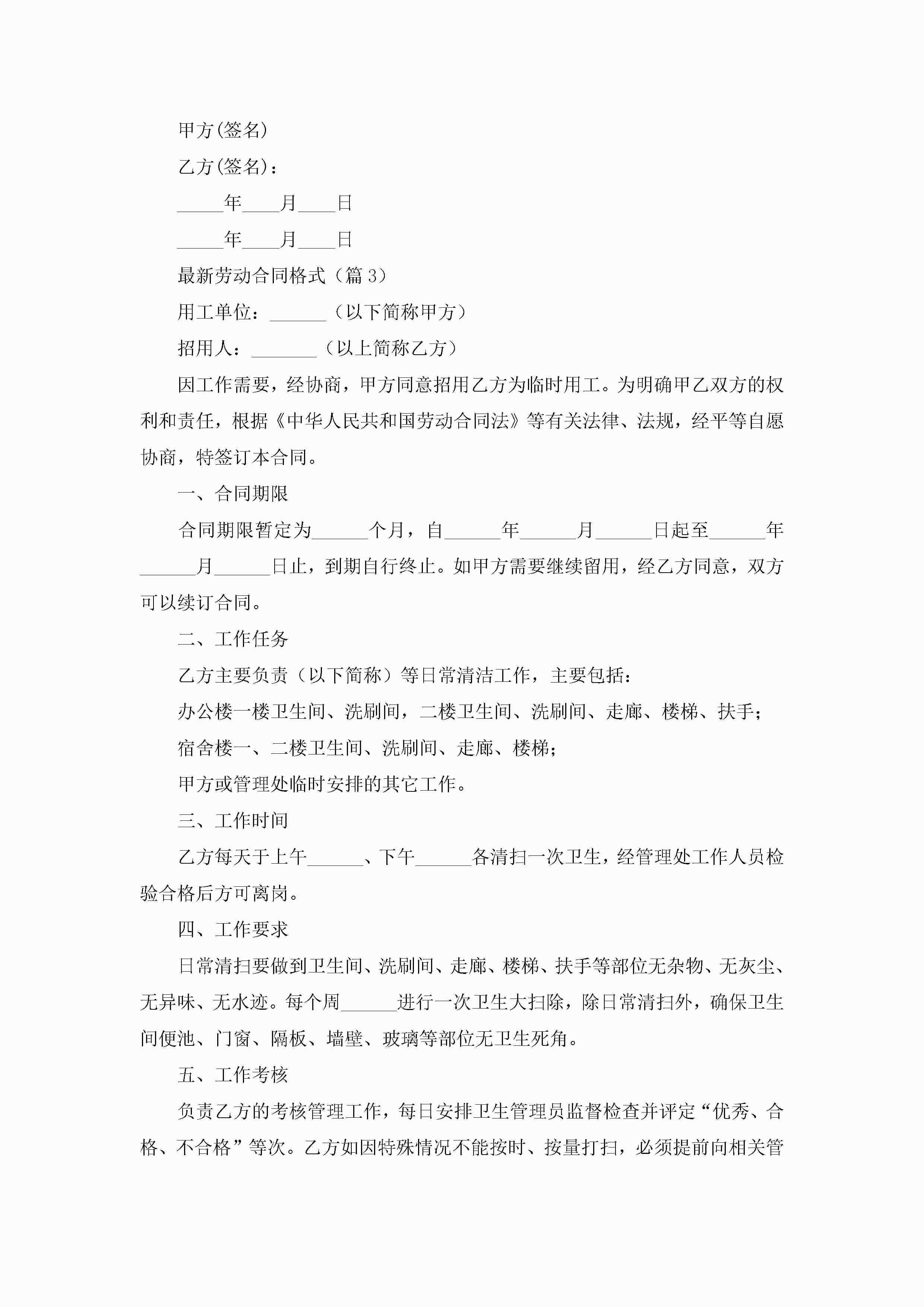 最新劳动合同格式范本通用jugei3月23日 01:47发布关注269 最新劳动合同格式范本通用此内容为付费资源,请付费后查看¥10.9 单篇文档限时特惠¥15个人会员开通企业会员开通立即下载无需登陆!可直接快捷下载单个模板付费资源© 版权声明THE ENDWord模板# 实用文档# 合同模板# 劳动合同# 最新劳动合同格式 如有问题,可点击最底部“联系我们”联系客服 分享QQ空间微博QQ好友海报分享复制链接收藏