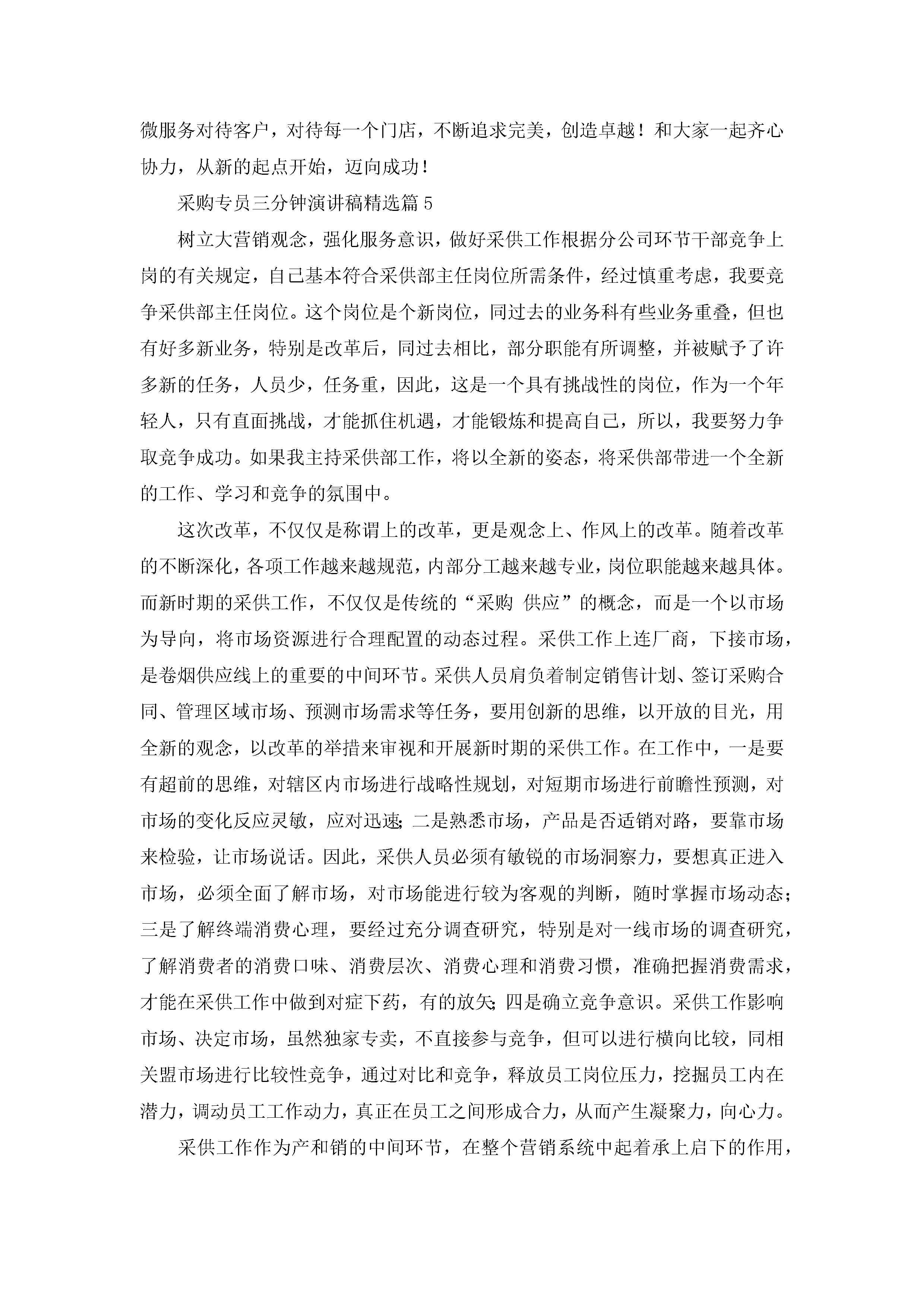 采购专员三分钟演讲稿5篇jugei3月23日 01:47发布关注213 采购专员三分钟演讲稿5篇此内容为付费资源,请付费后查看¥10.9 单篇文档限时特惠¥15个人会员开通企业会员开通立即下载无需登陆!可直接快捷下载单个模板付费资源© 版权声明THE ENDWord模板# 实用文档# 演讲稿# 经典演讲稿# 实用写作 如有问题,可点击最底部“联系我们”联系客服 分享QQ空间微博QQ好友海报分享复制链接收藏