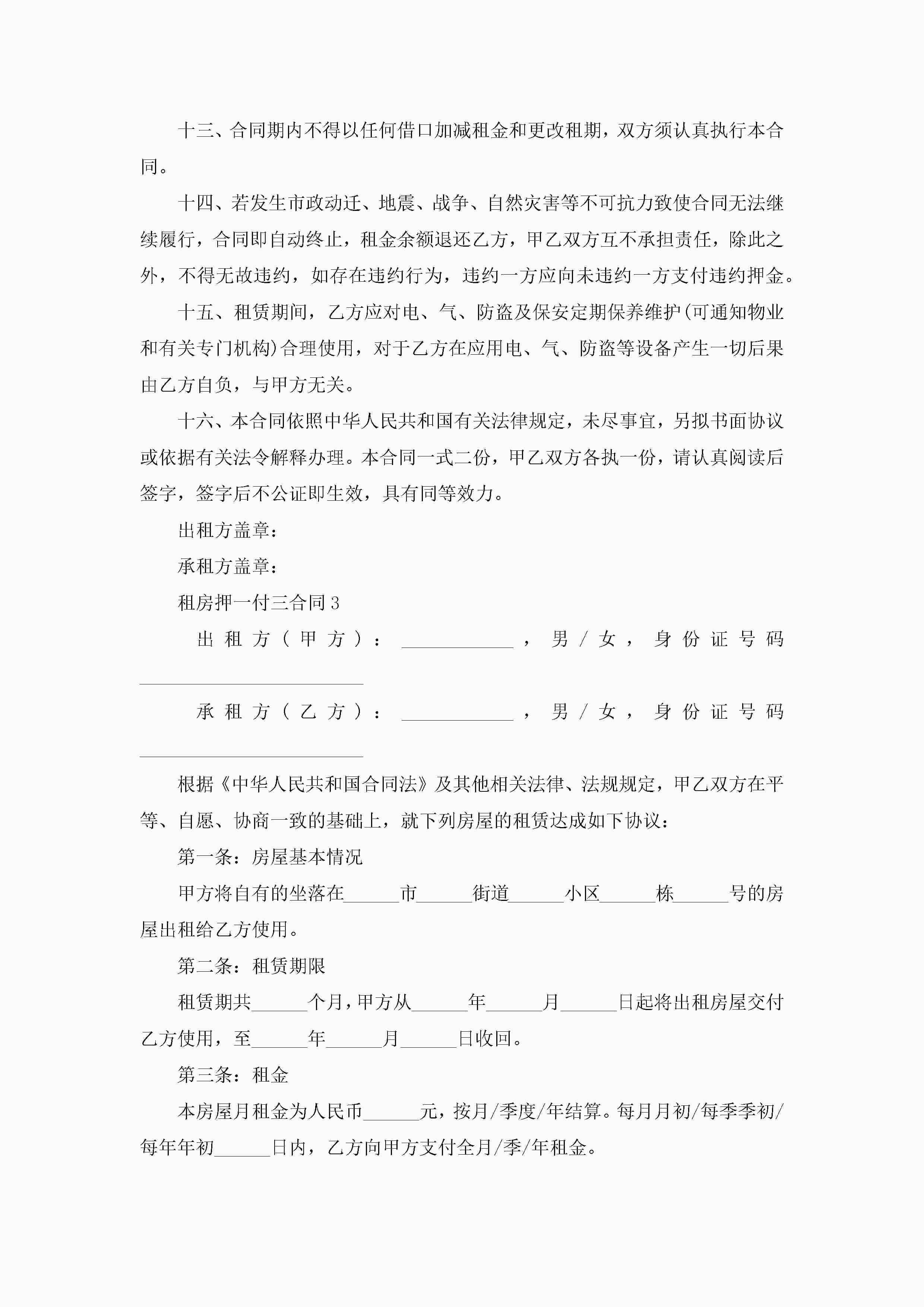 租房押一付三合同5篇jugei3月23日 01:47发布关注198 租房押一付三合同5篇此内容为付费资源,请付费后查看¥10.9 单篇文档限时特惠¥15个人会员开通企业会员开通立即下载无需登陆!可直接快捷下载单个模板付费资源© 版权声明THE ENDWord模板# 实用文档# 实用模板# 合同模板# 租房合同 如有问题,可点击最底部“联系我们”联系客服 分享QQ空间微博QQ好友海报分享复制链接收藏