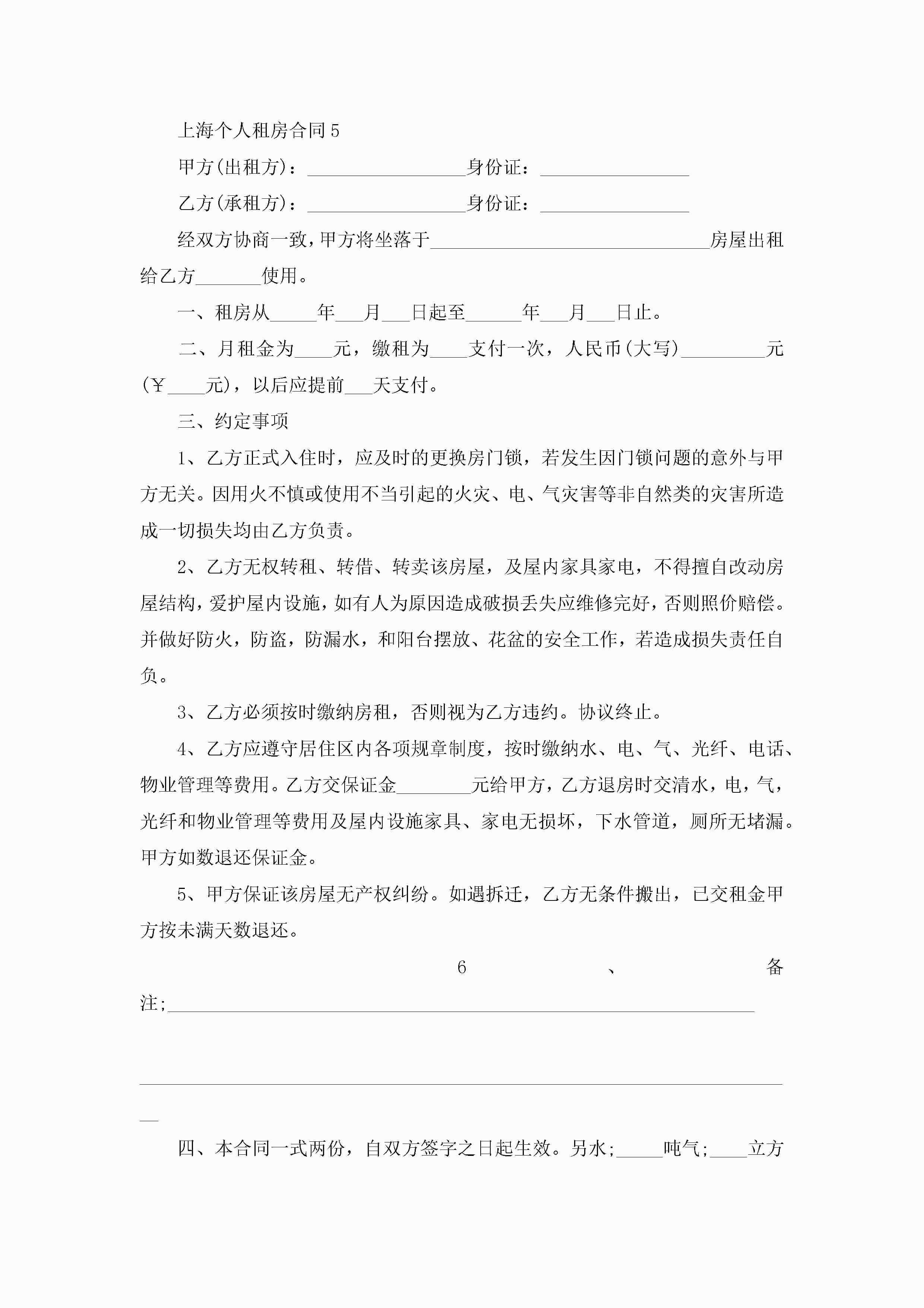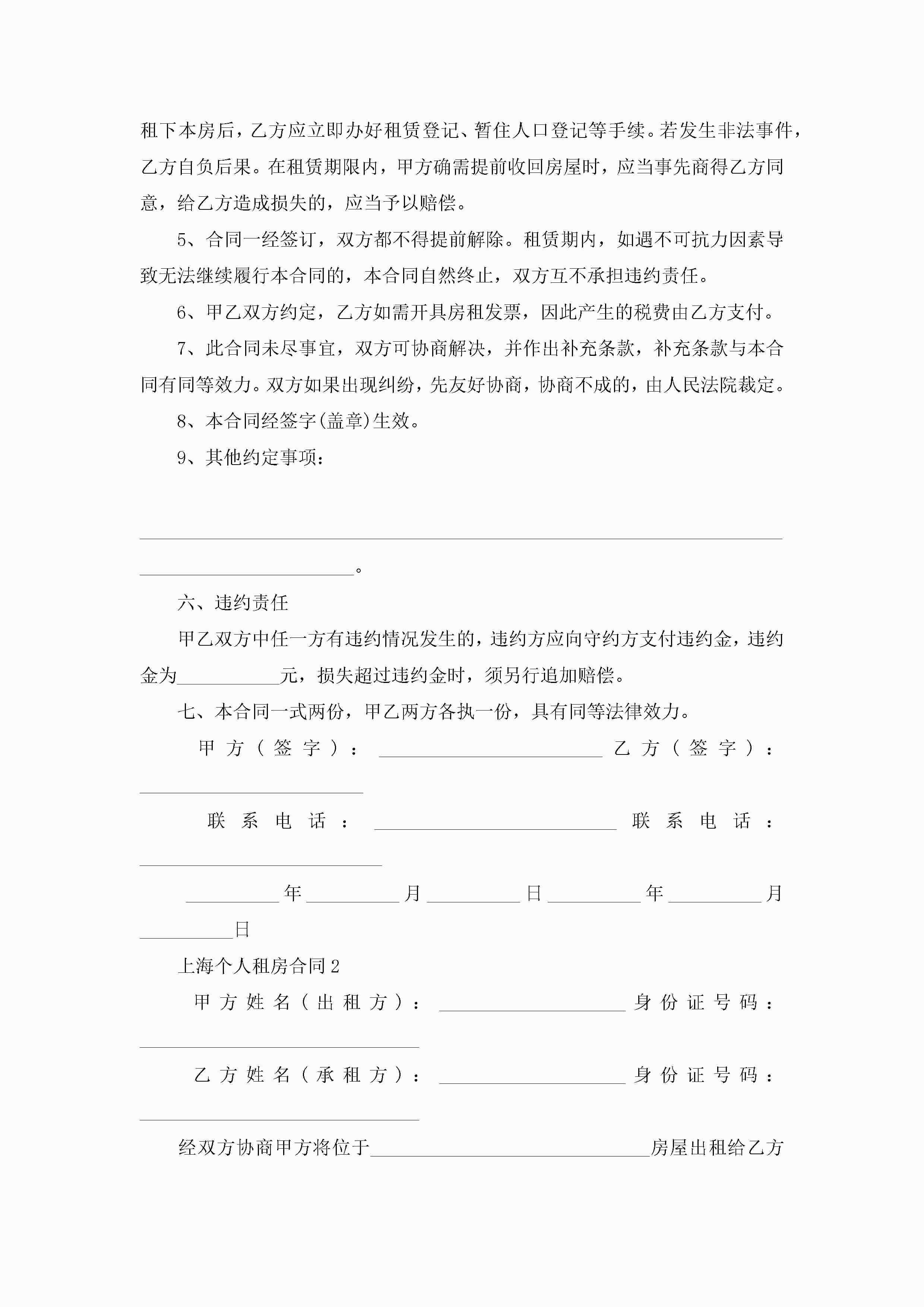 上海个人租房合同5篇jugei3月23日 01:47发布关注251 上海个人租房合同5篇此内容为付费资源,请付费后查看¥10.9 单篇文档限时特惠¥15个人会员开通企业会员开通立即下载无需登陆!可直接快捷下载单个模板付费资源© 版权声明THE ENDWord模板# 实用文档# 实用模板# 合同模板# 租房合同 如有问题,可点击最底部“联系我们”联系客服 分享QQ空间微博QQ好友海报分享复制链接收藏